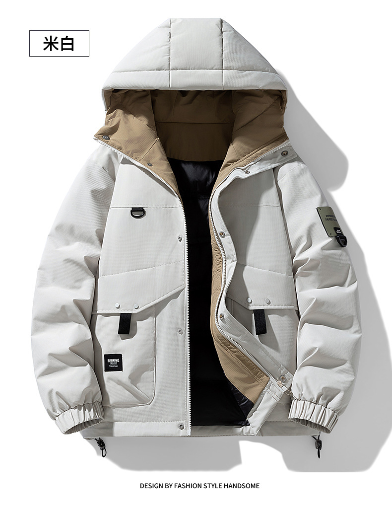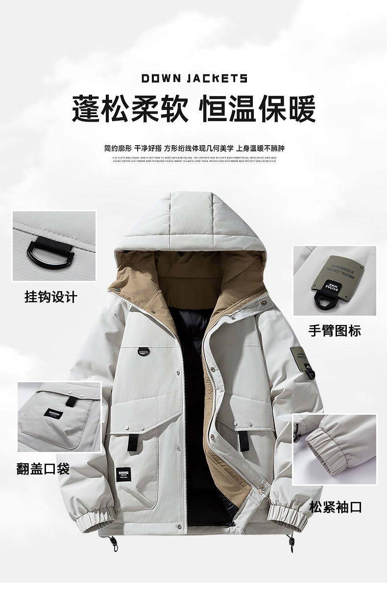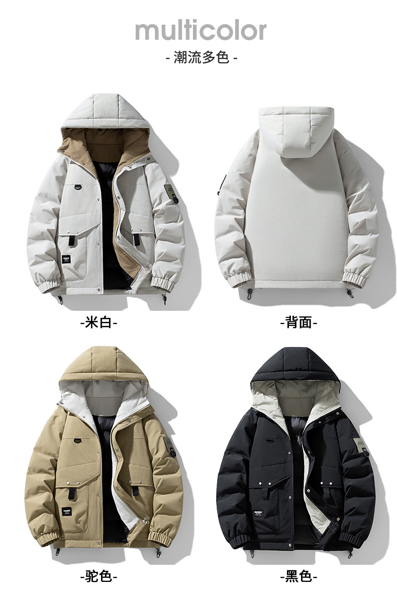겨울 새로운 다운 재킷 남자 오버홀 멀티 포켓 야외 등산 세트 남성용 콜드 뉴 GB 후드 재킷