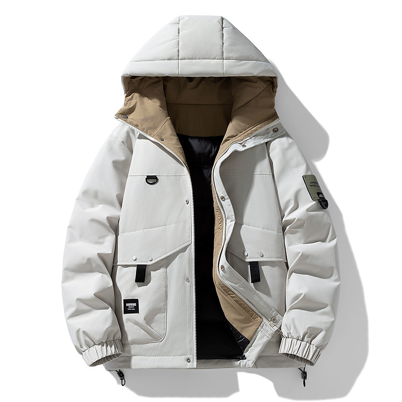 겨울 새로운 다운 재킷 남자 오버홀 멀티 포켓 야외 등산 세트 남성용 콜드 뉴 GB 후드 재킷스토어 가기