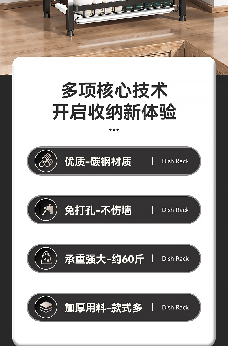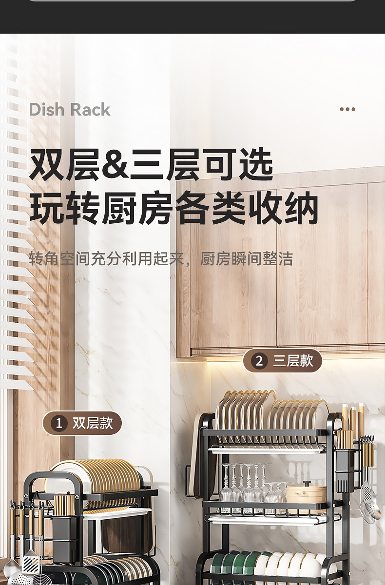 국경 간 주방 선반, 접시 보관함, 조리대 배수구, 젓가락 및 칼 홀더, 다기능 캐비닛, 상업용스토어 가기