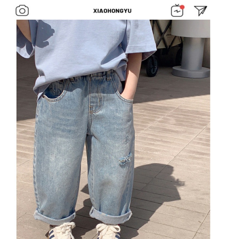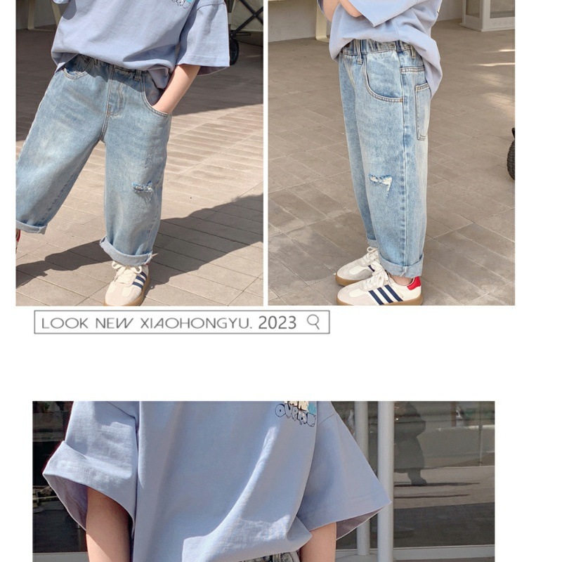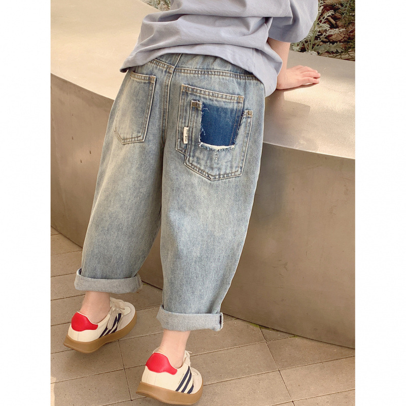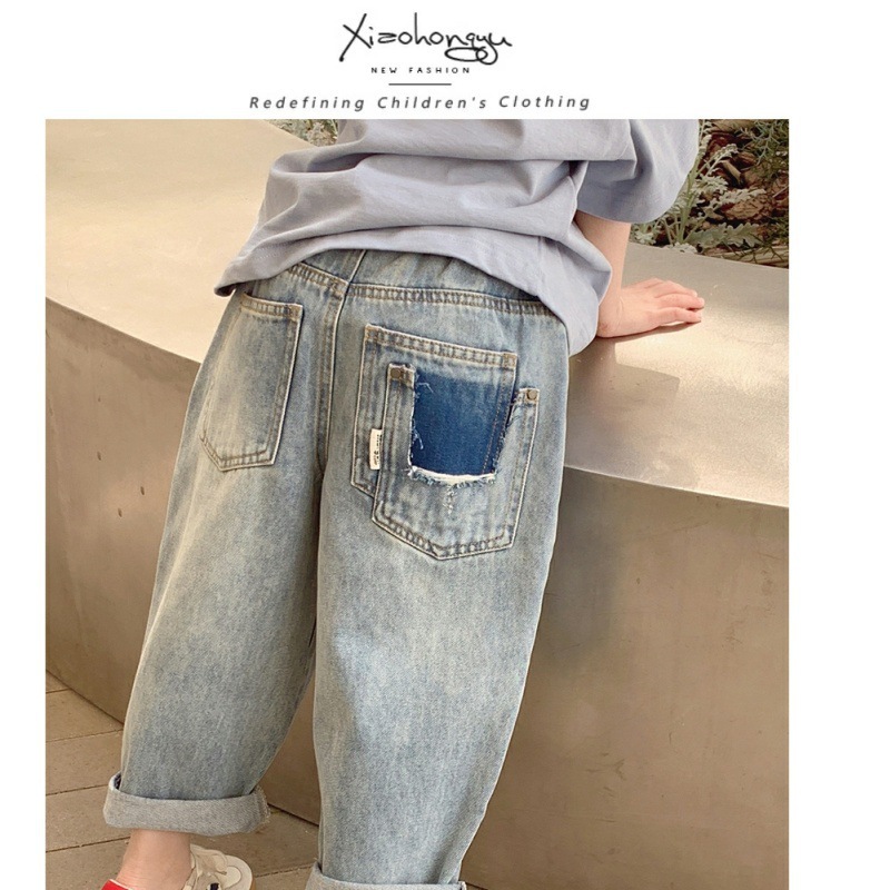소녀 청바지 봄 2023 새로운 어린이 아기의 봄과 가을 찢어진 바지 서양식 캐주얼 하렘 트렌디 바지스토어 가기