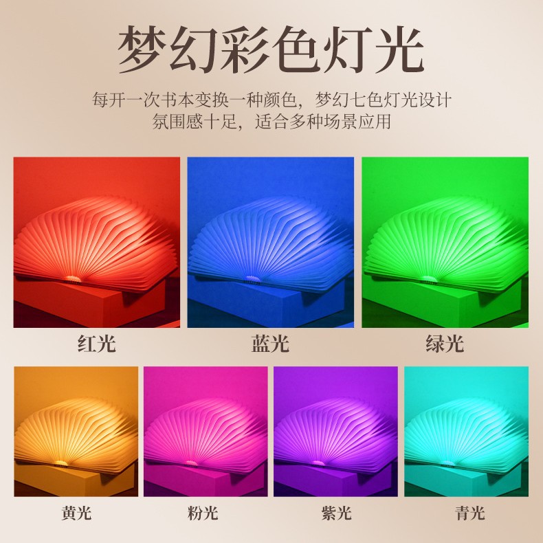 LED 나무 7 색 접이식 책 램프 침실 따뜻한 창조적 인 야간 생일 선물 축하 기념품