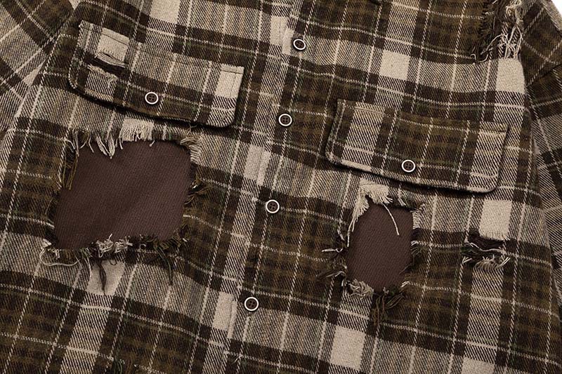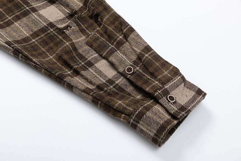 국경 간 체크 무늬 긴팔 셔츠 가을 새로운 국가 패션 레트로 스트리트 구멍 체크 무늬 긴팔 셔츠 패션 브랜드 느슨한