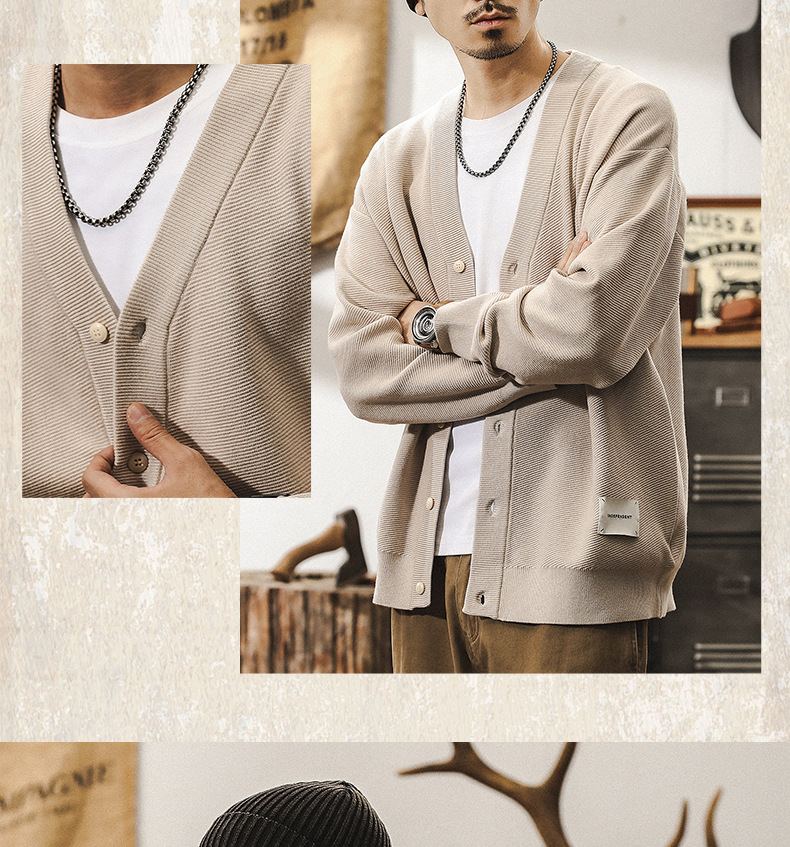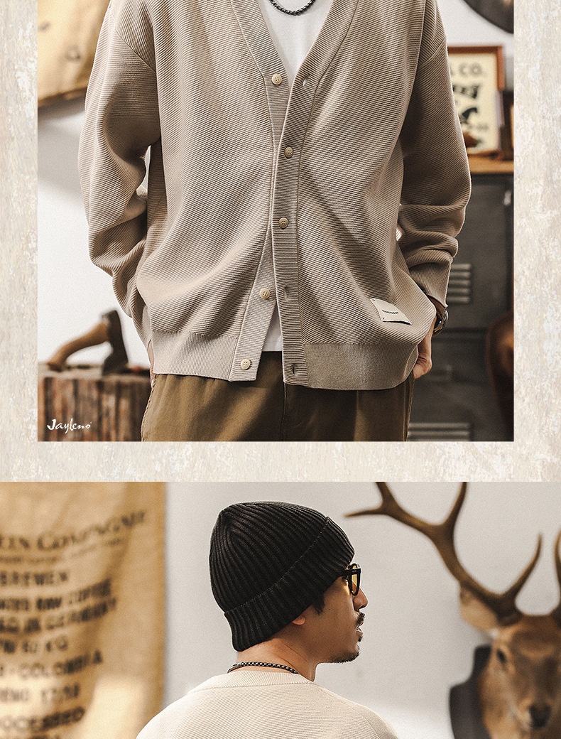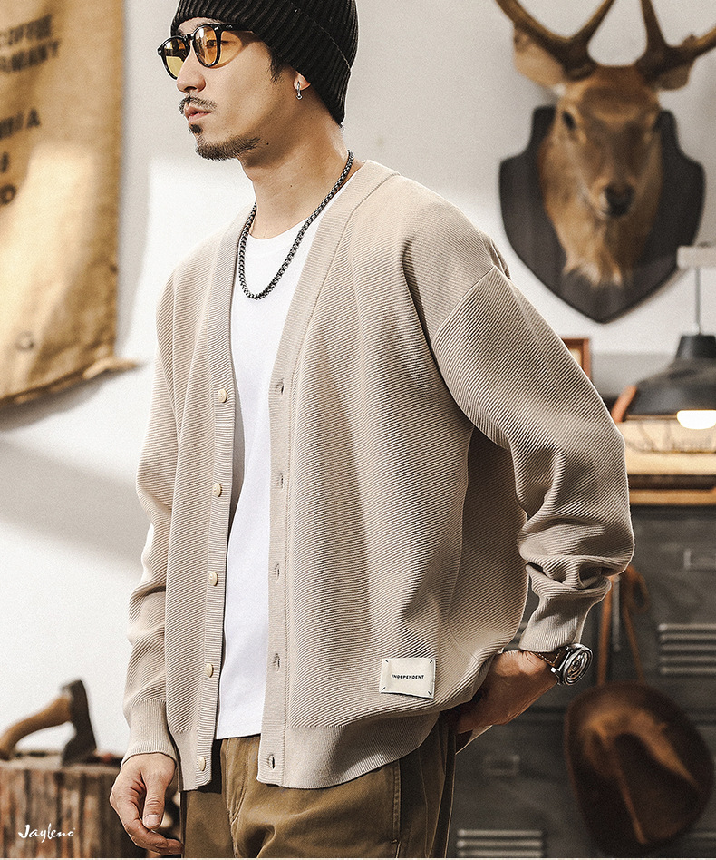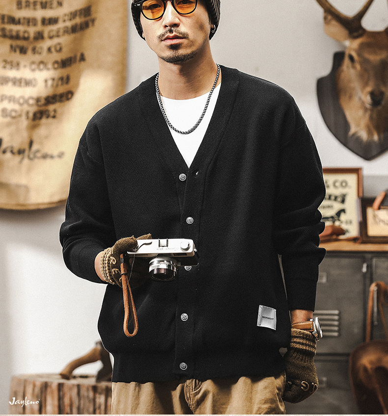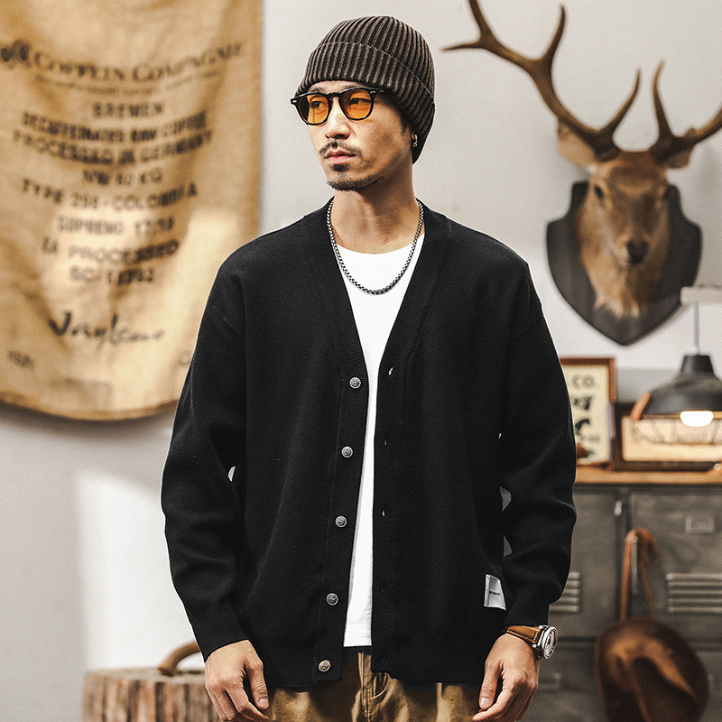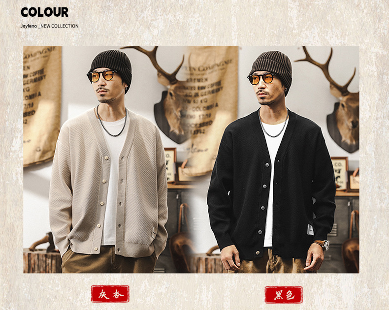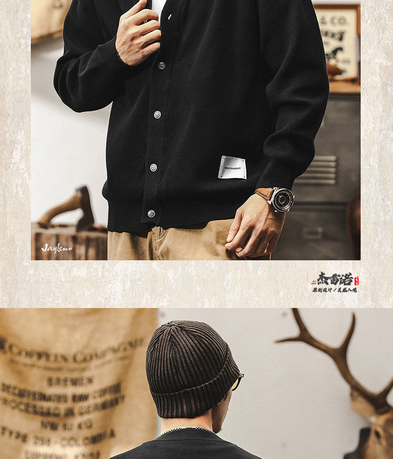 아메리칸 레트로 헤비 카디건 스웨터 남성용 가을과 겨울 트렌디 브랜드 루즈 하이 엔드 간단한 터피 핸섬 니트 스웨터 재킷스토어 가기