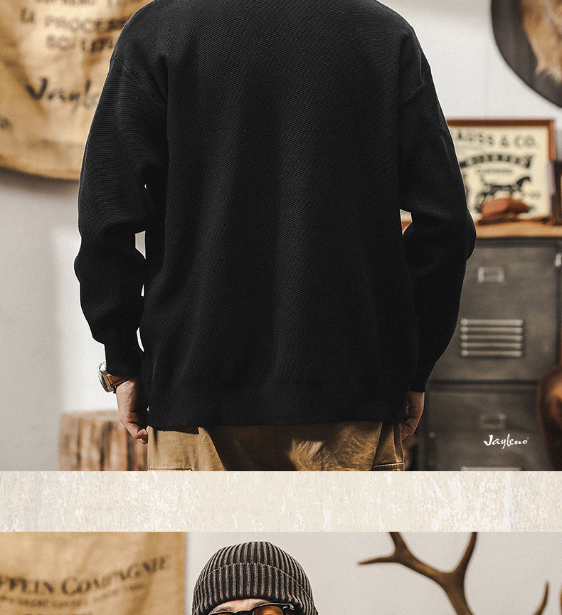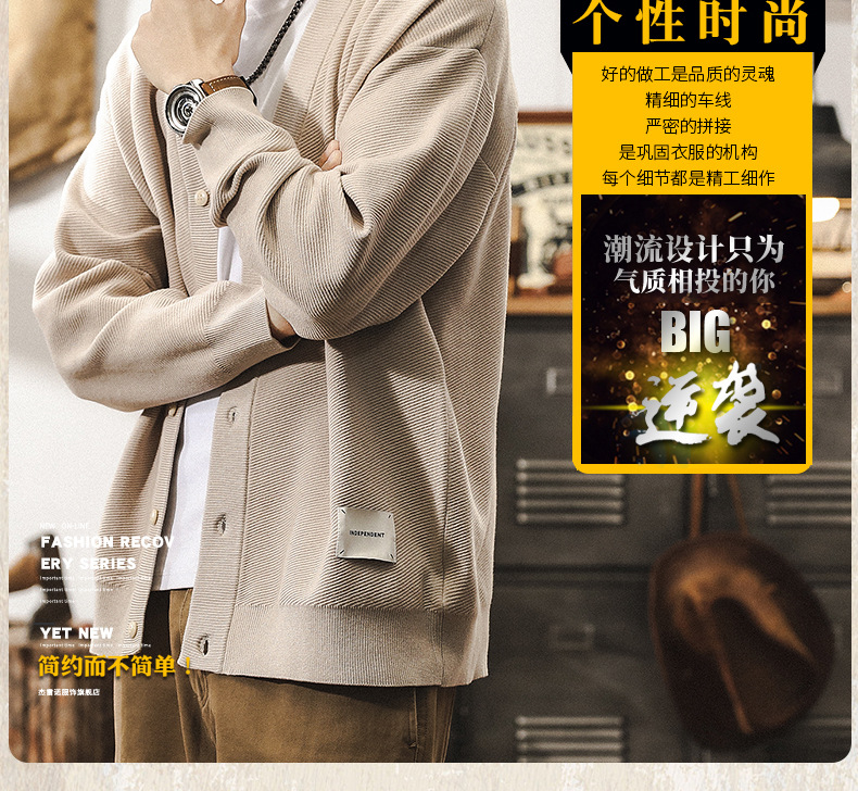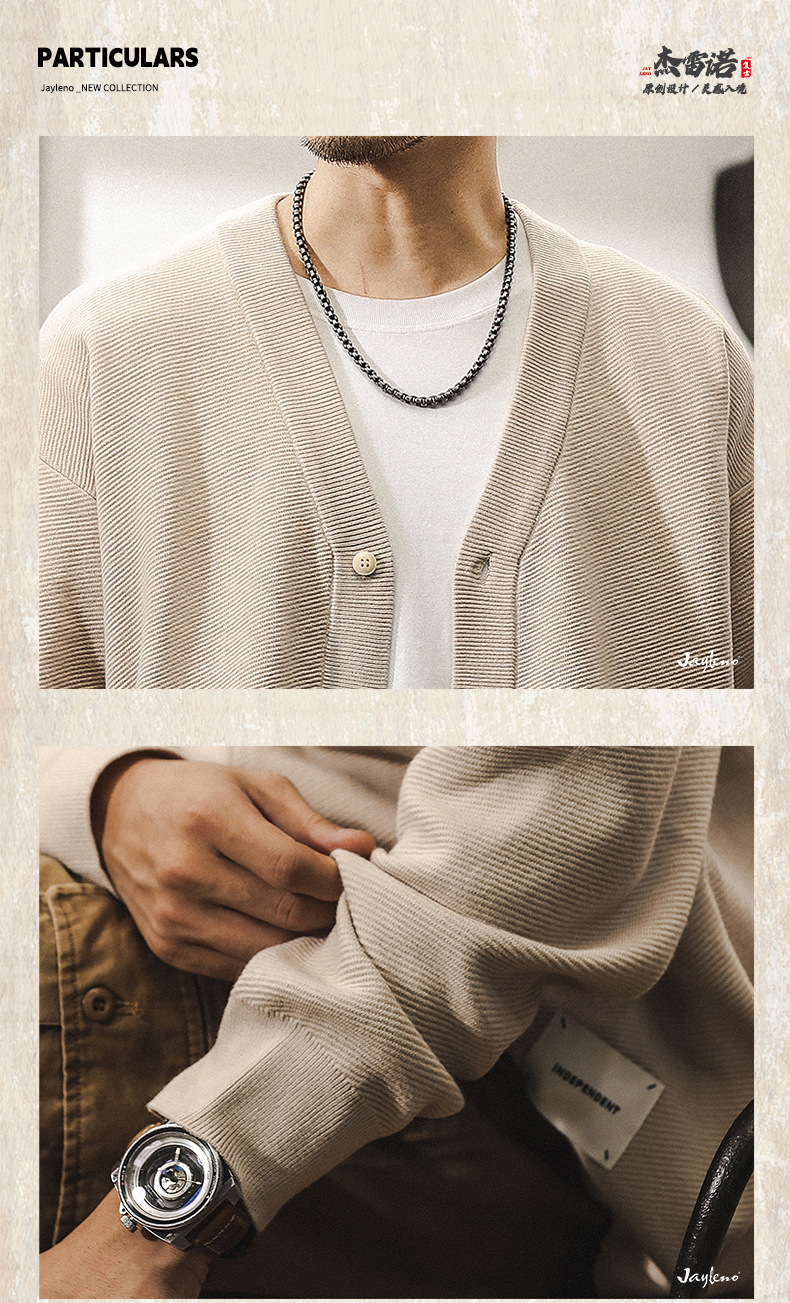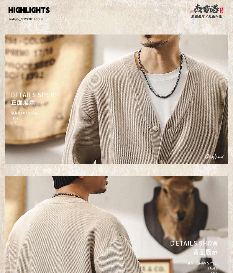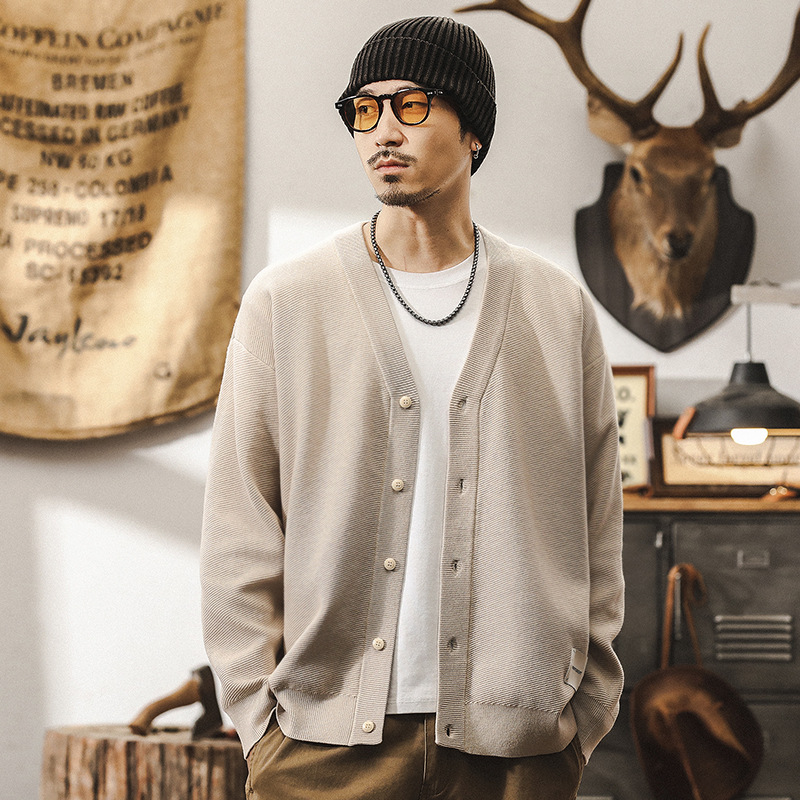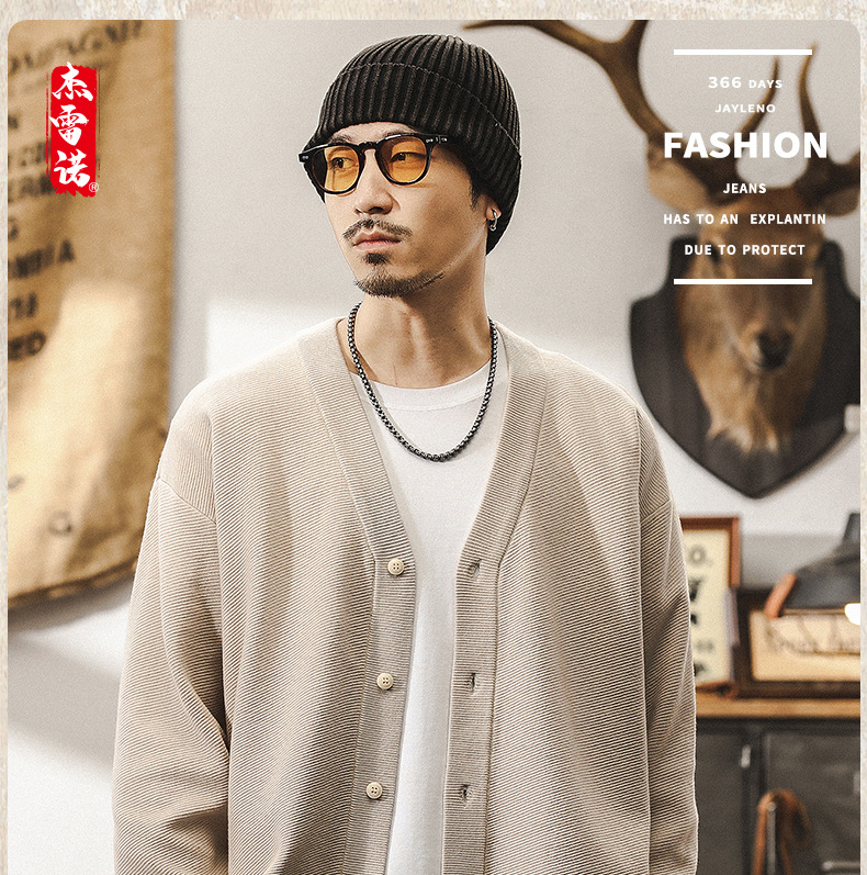 아메리칸 레트로 헤비 카디건 스웨터 남성용 가을과 겨울 트렌디 브랜드 루즈 하이 엔드 간단한 터피 핸섬 니트 스웨터 재킷스토어 가기