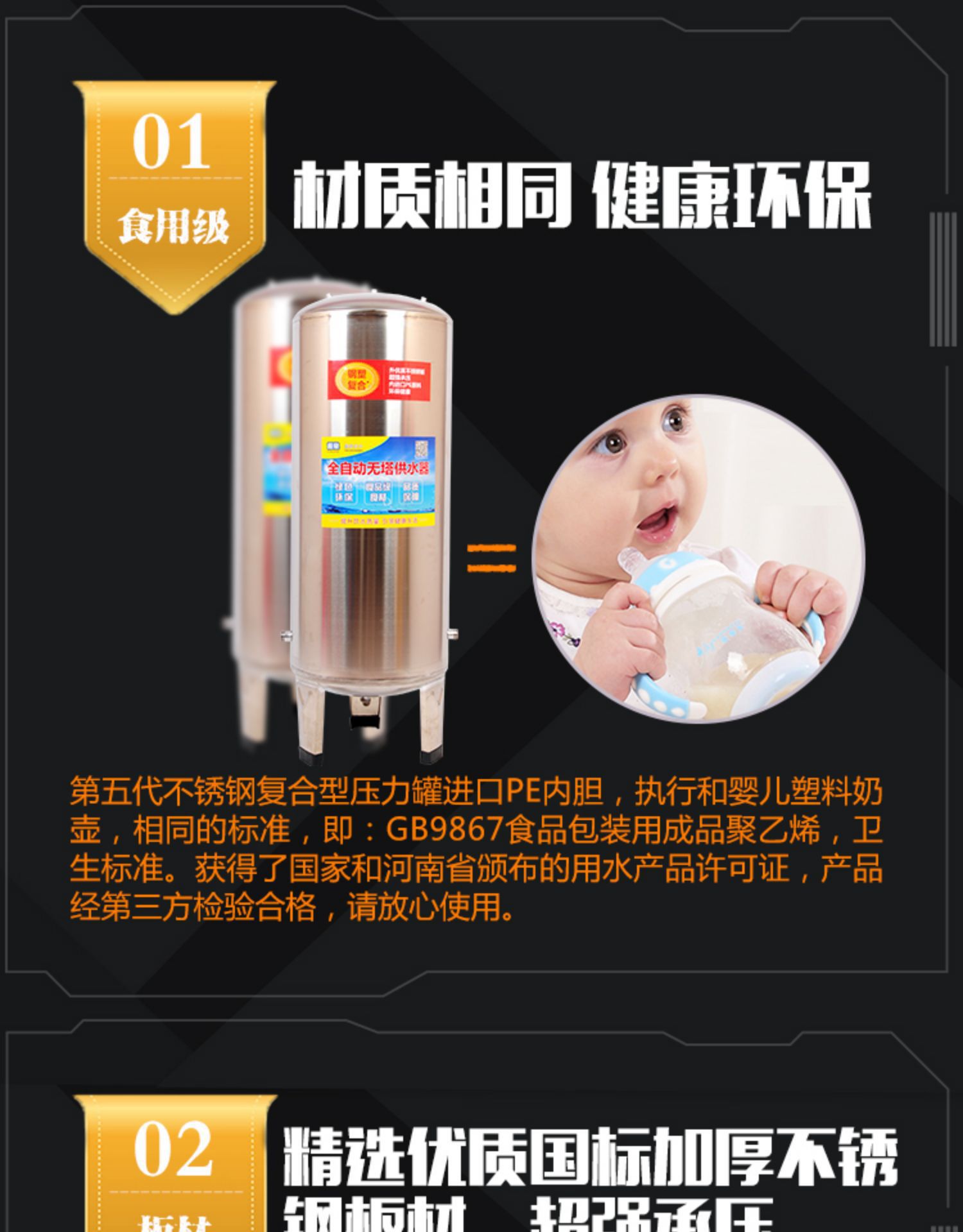스테인레스 스틸 PE 복합 자동 타워가없는 물 공급 가정용 자동 스테인레스 스틸 압력 탱크 부스터 펌프 워터 타워