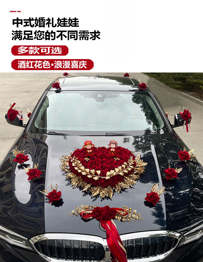 주요 웨딩 카 장식 세트 플로트 장식 팀 웨딩 용품 전체 세트 자동차 헤드 꽃 쌍 웨딩 카 꽃 장식 장젠