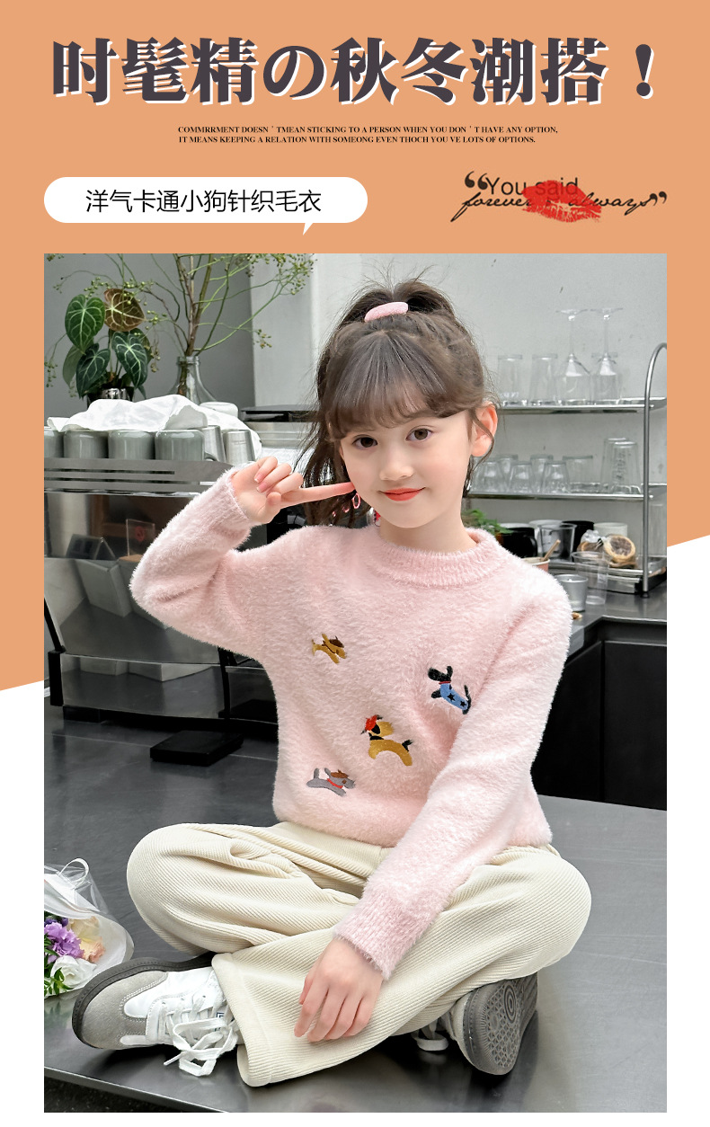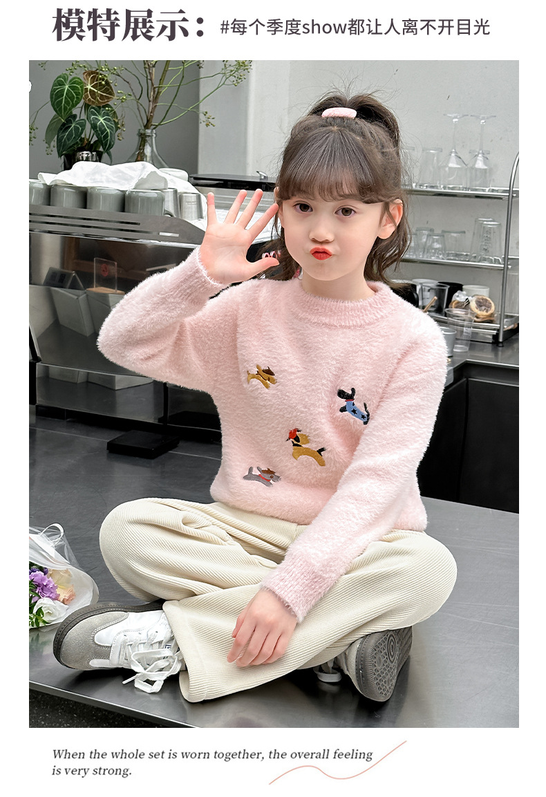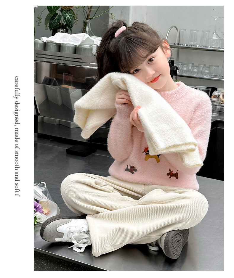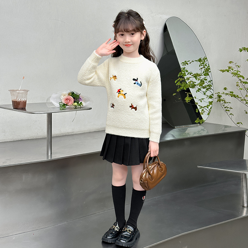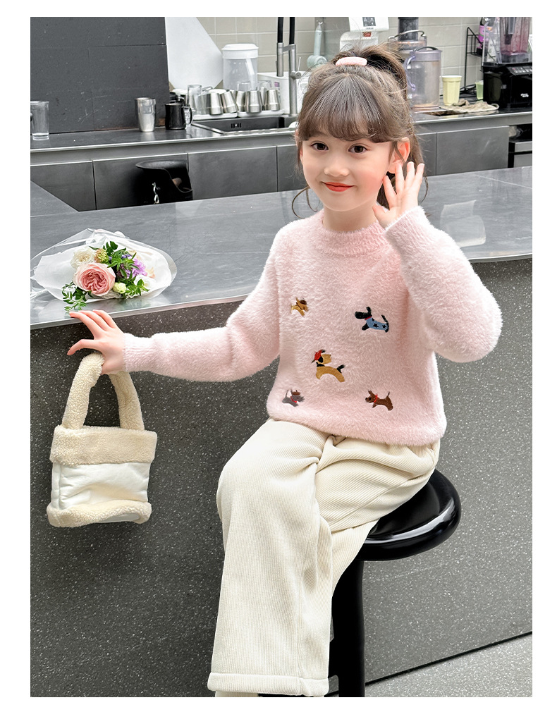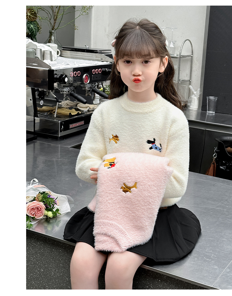 소녀 스웨터 2024 새로운 가을과 겨울 니트 두꺼운 소녀 세련된 자수 만화 모방 밍크 캐시미어 풀오버스토어 가기