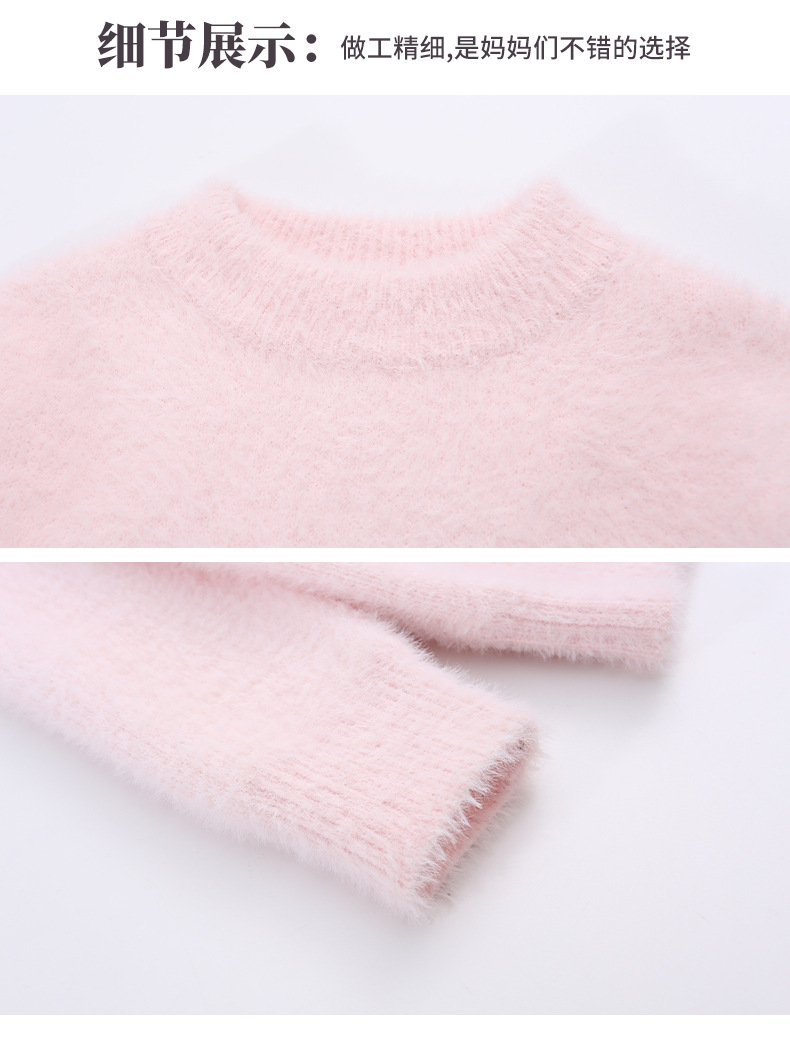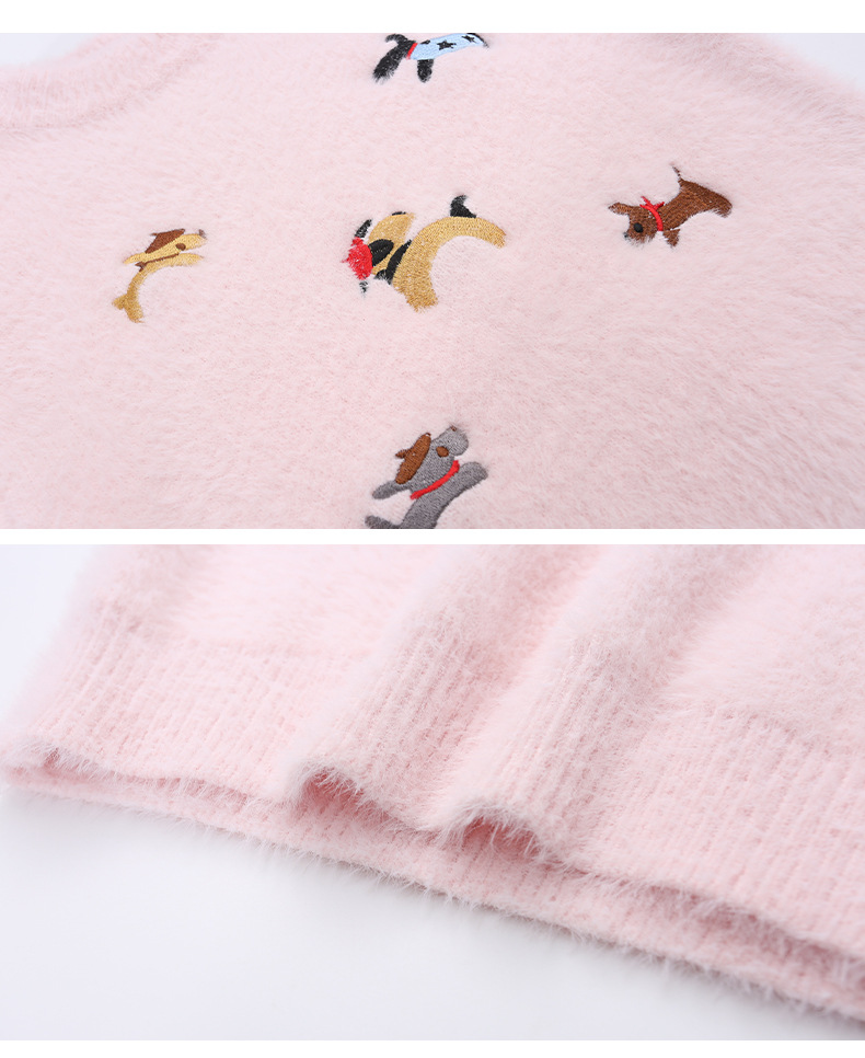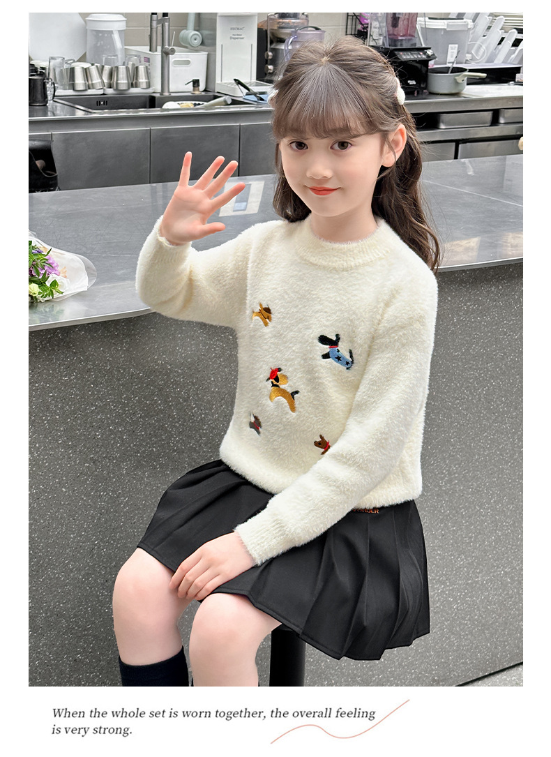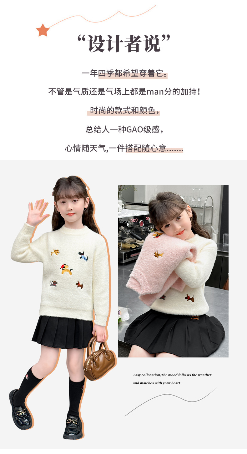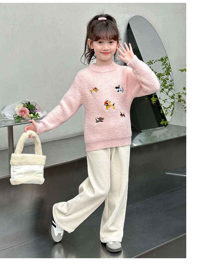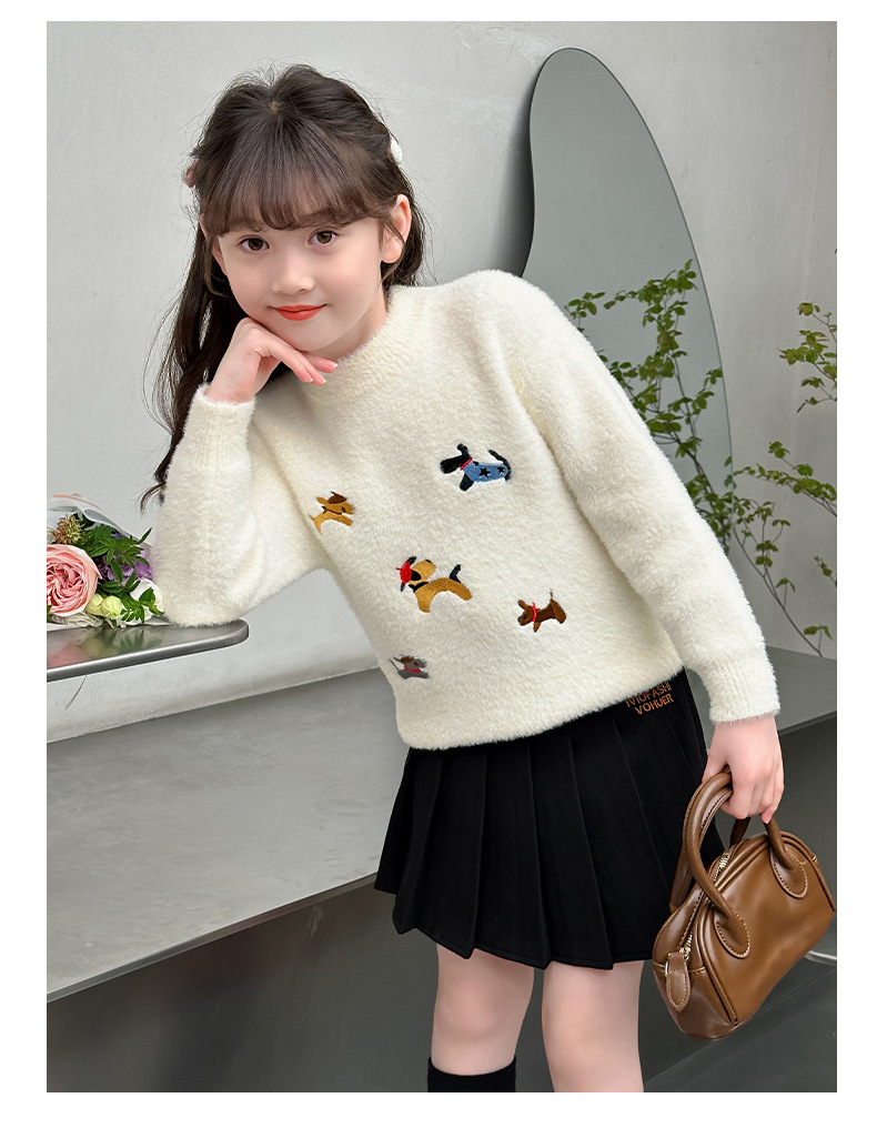 소녀 스웨터 2024 새로운 가을과 겨울 니트 두꺼운 소녀 세련된 자수 만화 모방 밍크 캐시미어 풀오버스토어 가기
