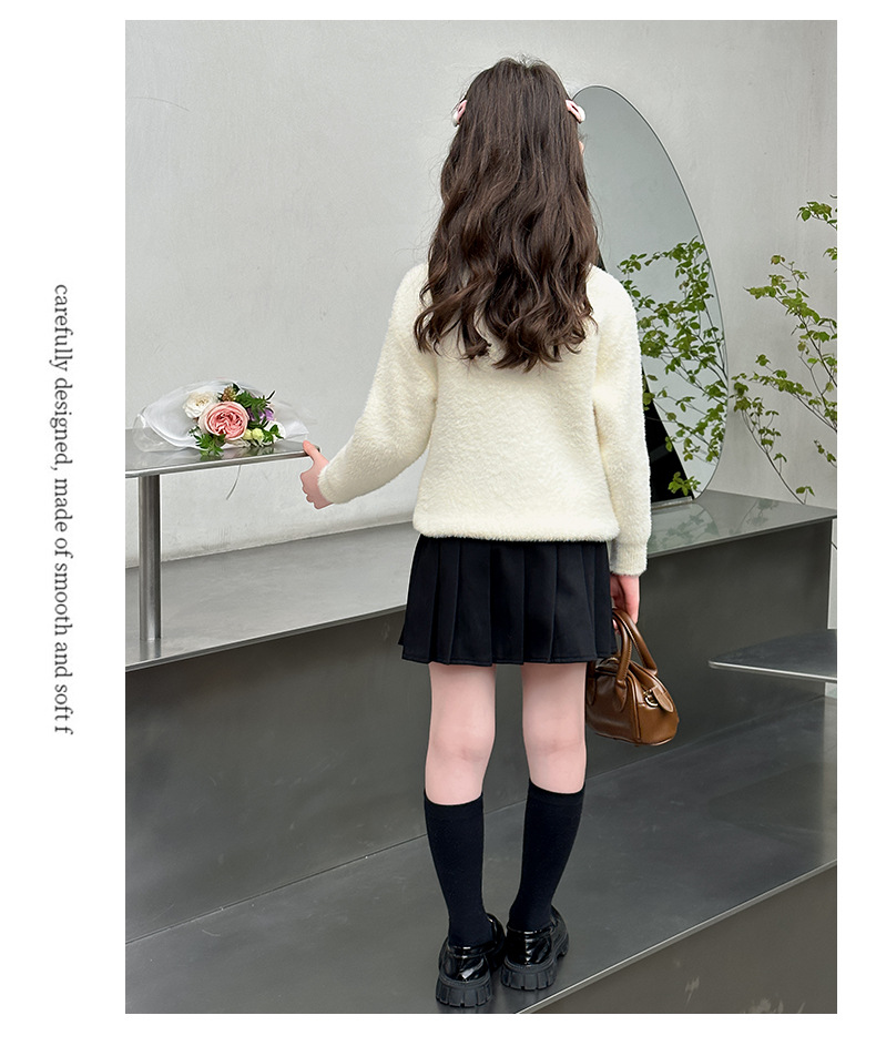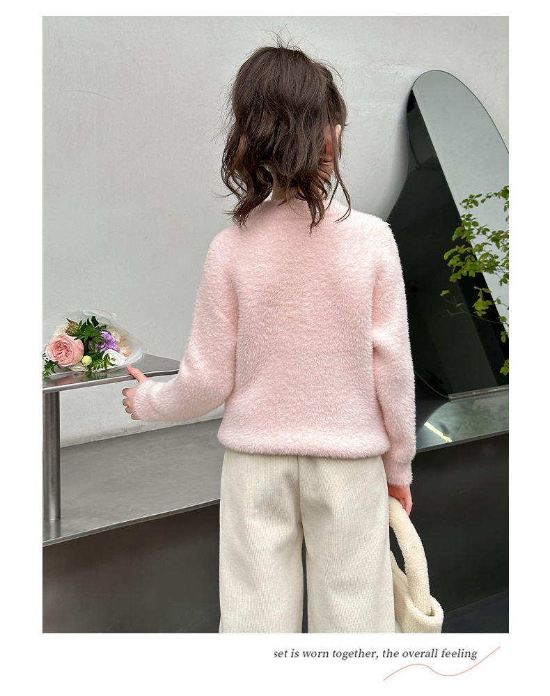 소녀 스웨터 2024 새로운 가을과 겨울 니트 두꺼운 소녀 세련된 자수 만화 모방 밍크 캐시미어 풀오버