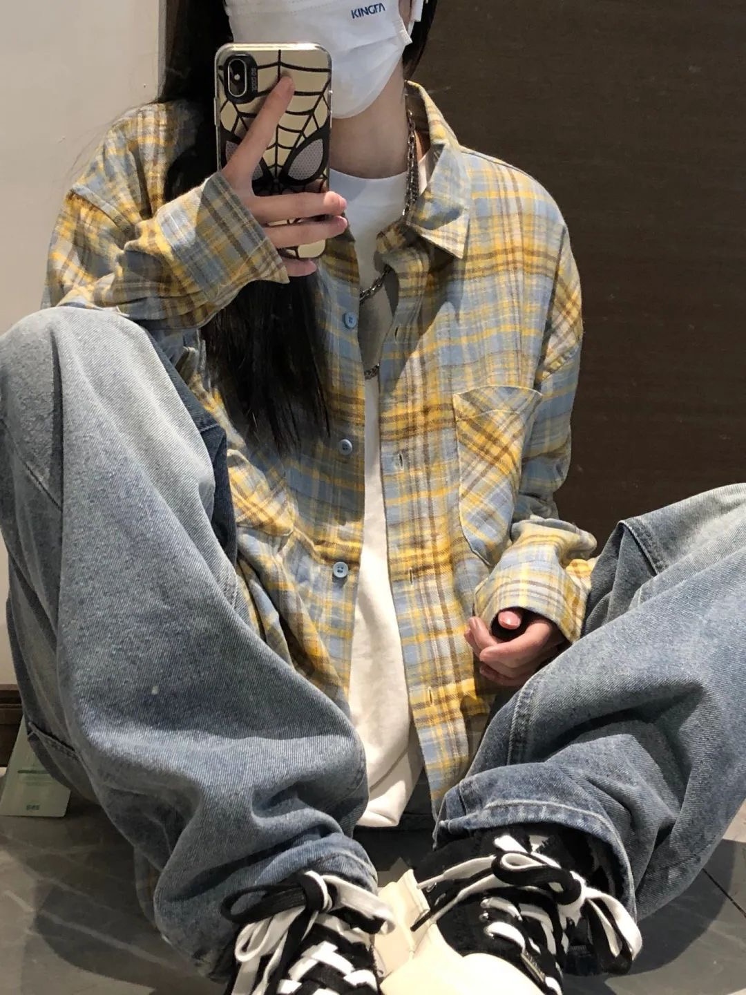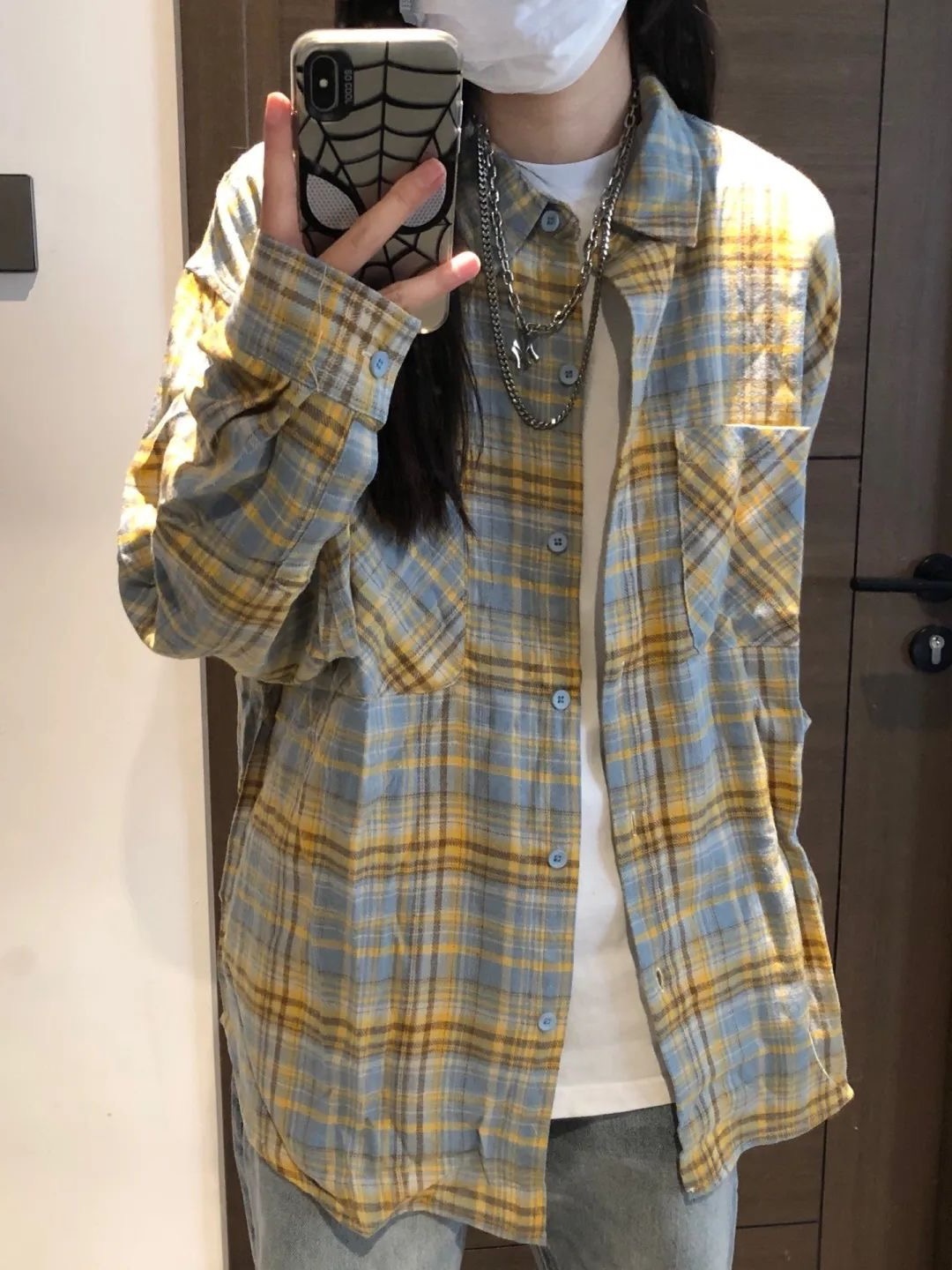 아메리칸 레트로 콘트라스트 플레이드 긴팔 셔츠 재킷 2024 가을 새로운 느슨한 캐주얼 올 매치 옷깃 셔츠스토어 가기