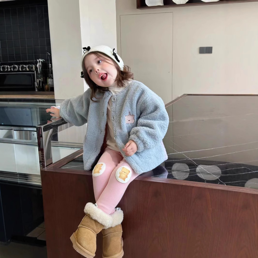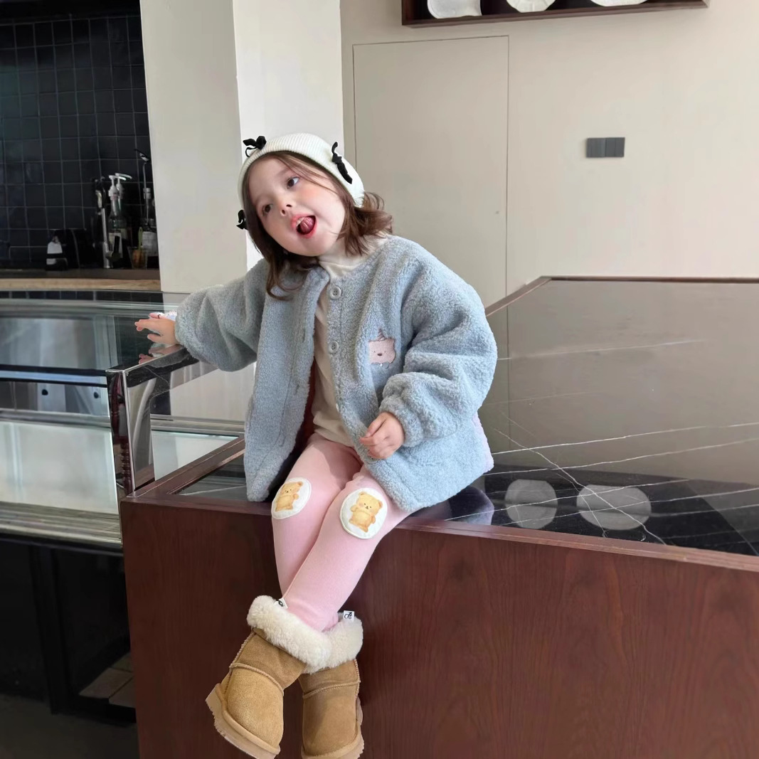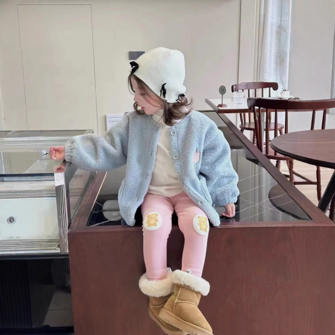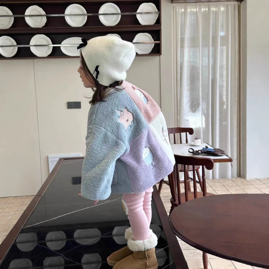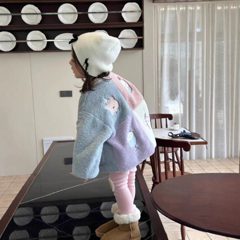 한국 아동복 소녀 코트 가을과 겨울 2024 새로운 어린이 서양식 기모 따뜻한 양모 컬러 매칭 탑스토어 가기