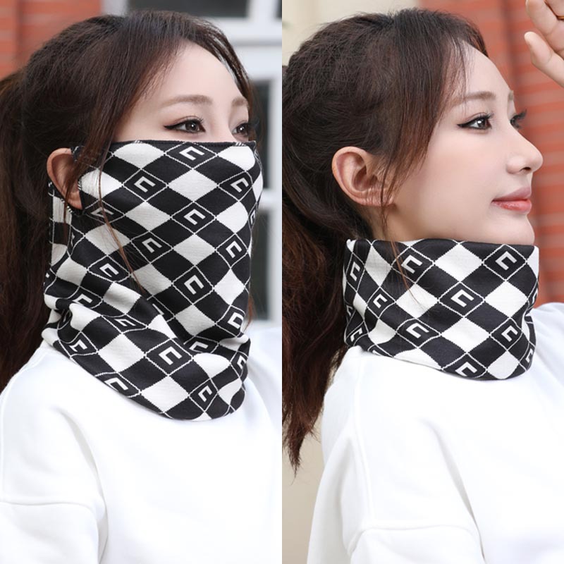 가을 겨울용 여성용 플란넬 스카프, 격자무늬 귀걸이형 방한 보온 마스크, 자전거용 방풍 넥워머, 남성용 스카프, 트렌디하고 다용도스토어 가기