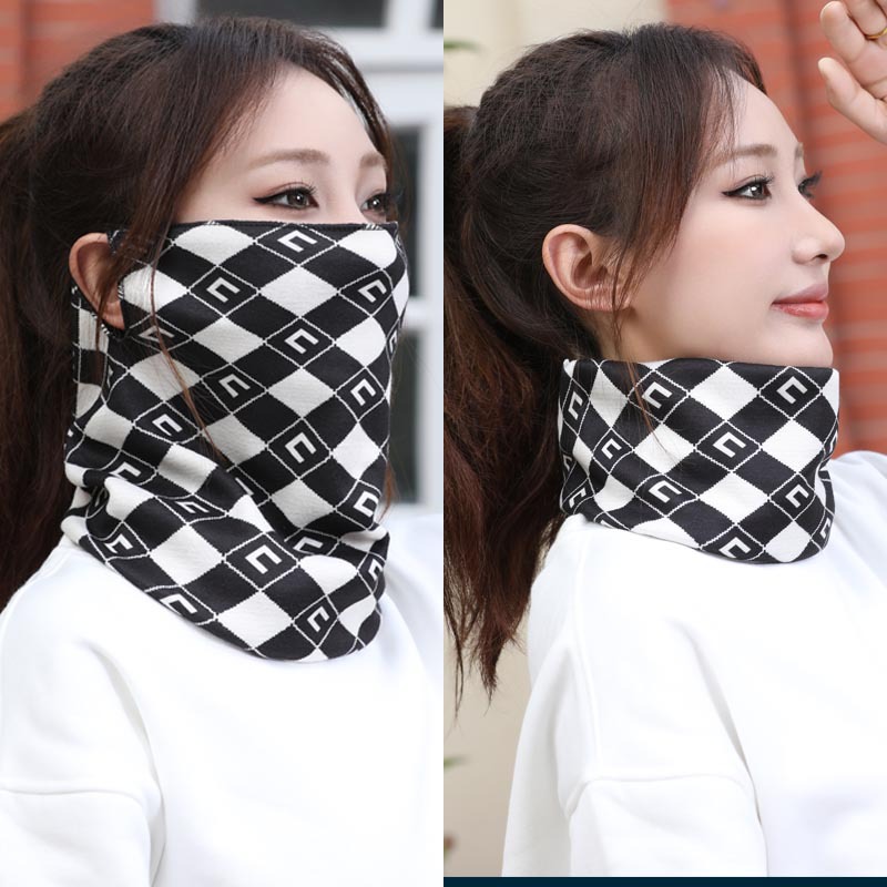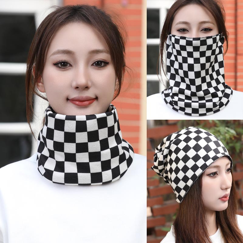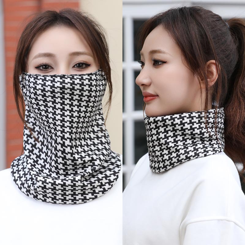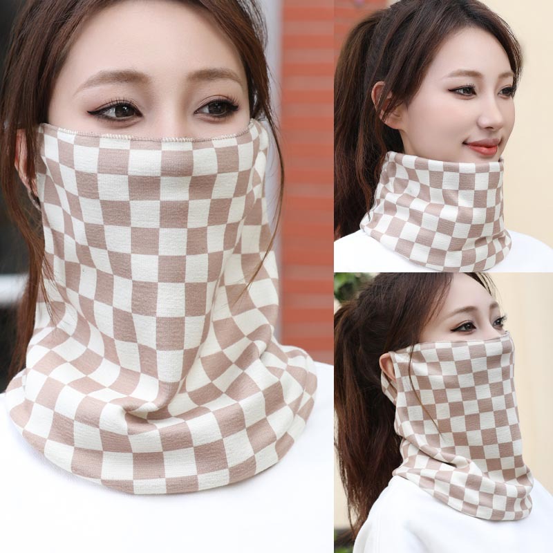 가을 겨울용 여성용 플란넬 스카프, 격자무늬 귀걸이형 방한 보온 마스크, 자전거용 방풍 넥워머, 남성용 스카프, 트렌디하고 다용도