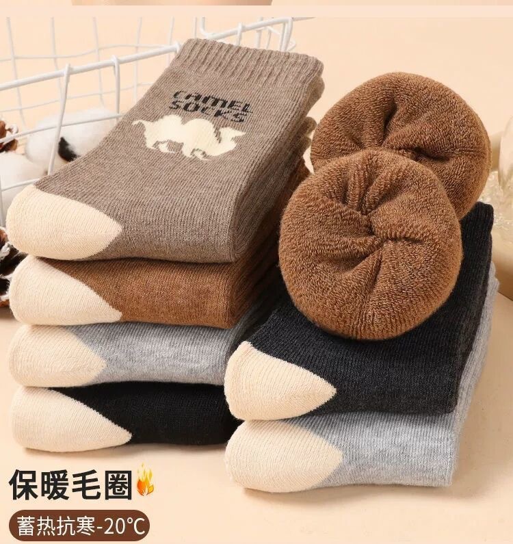 가을과 겨울 카멜 기모 양말 남성용 따뜻한 테리 양말 카멜 남성용 두꺼운 겨울 양말 가을과 겨울 남성 양말