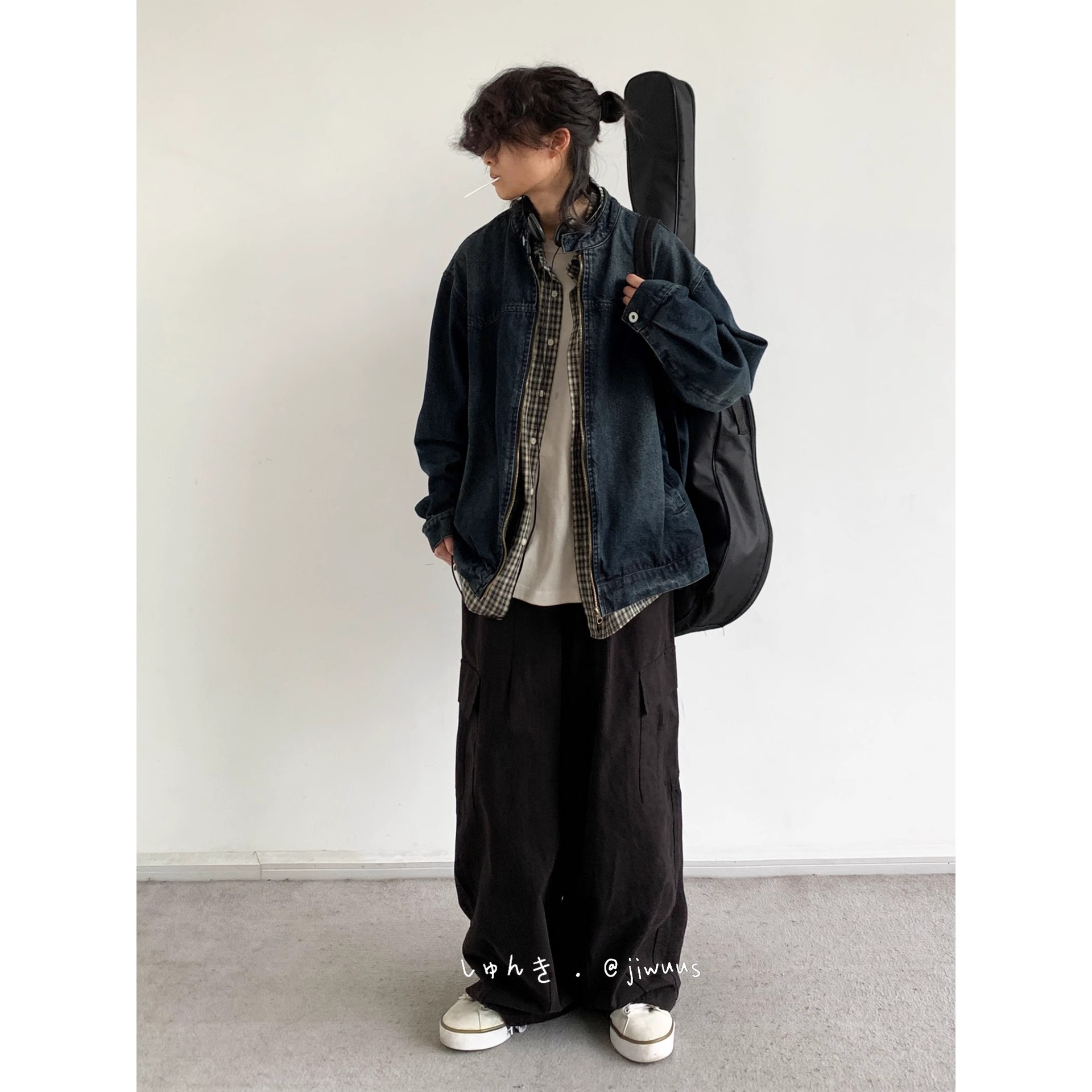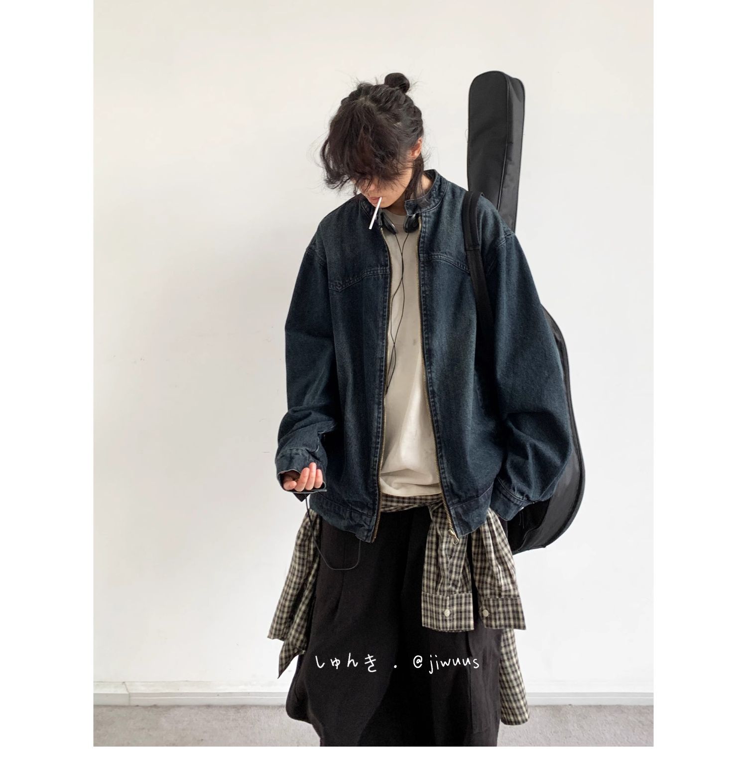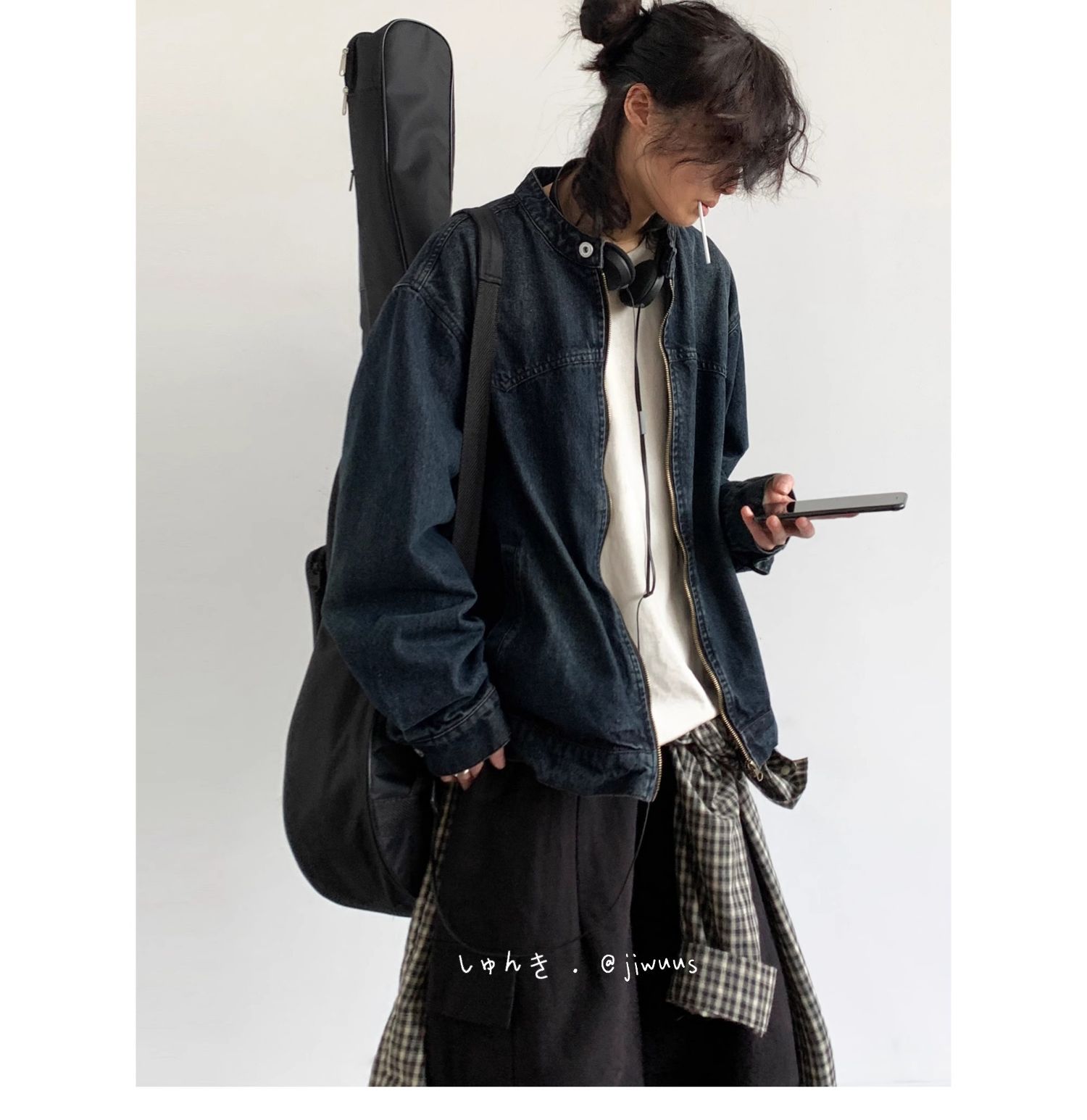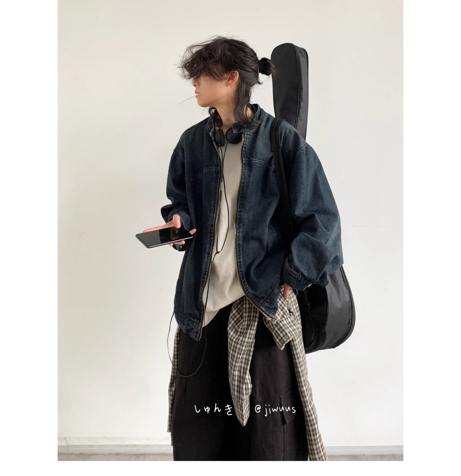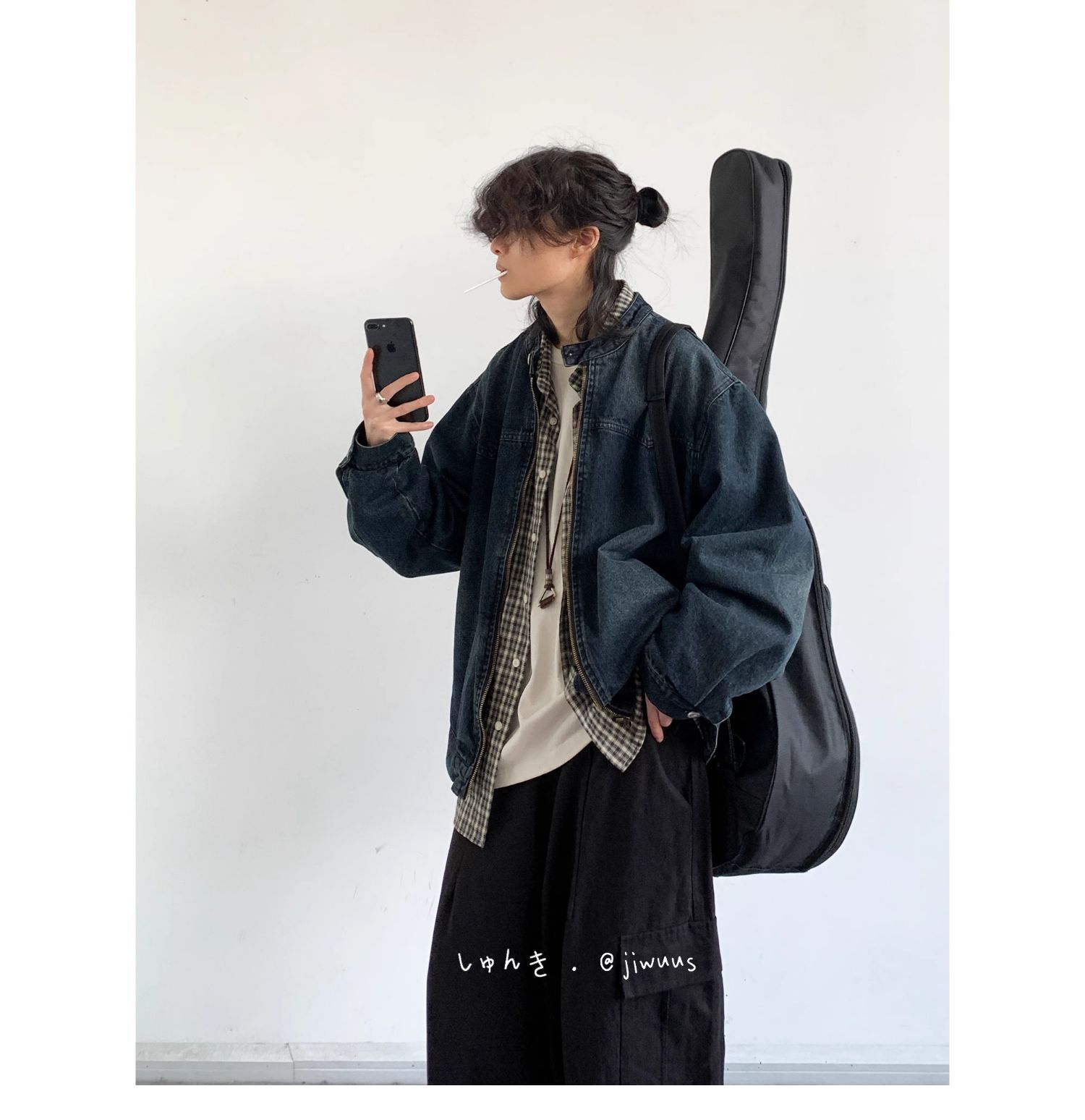 일본 빈티지 도시 소년 세탁 오래 된 데님 재킷 남성 봄과 가을 간단한 느슨한 캐주얼 재킷스토어 가기