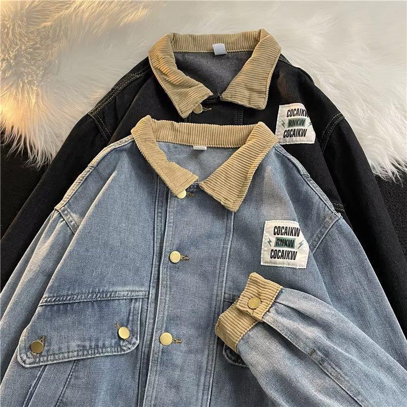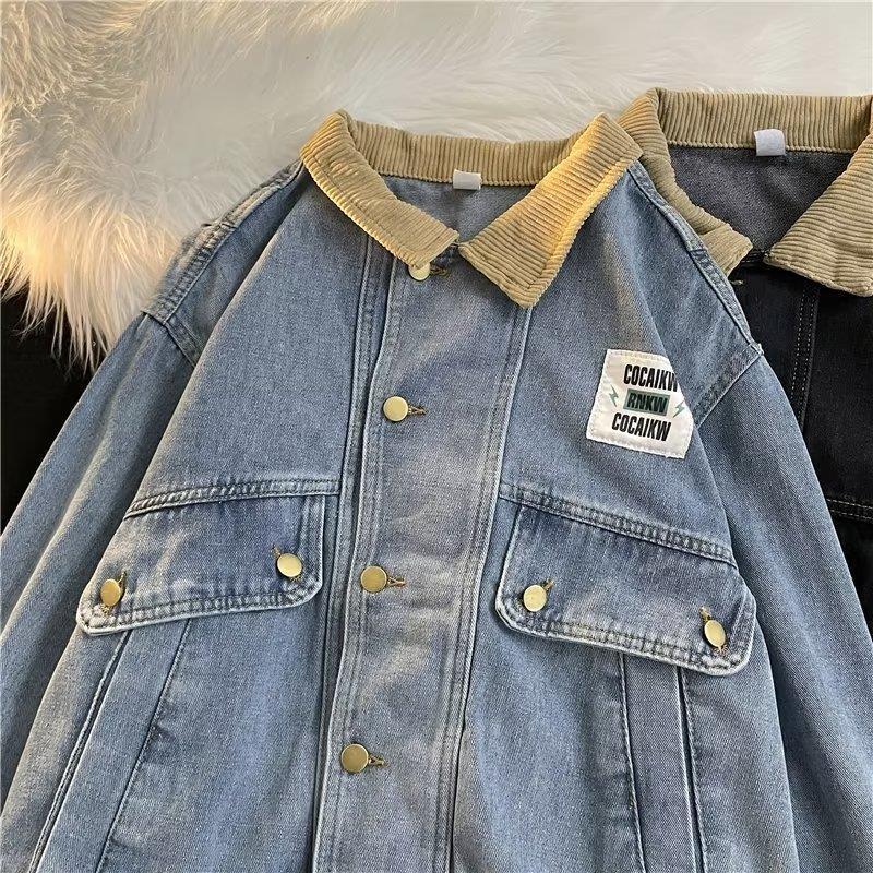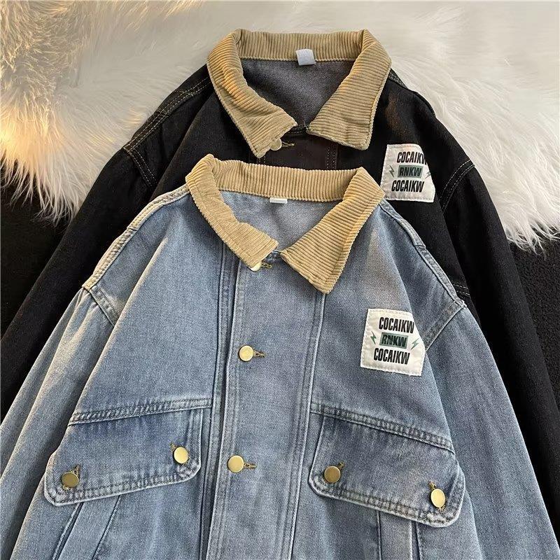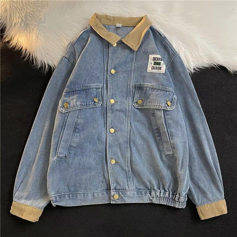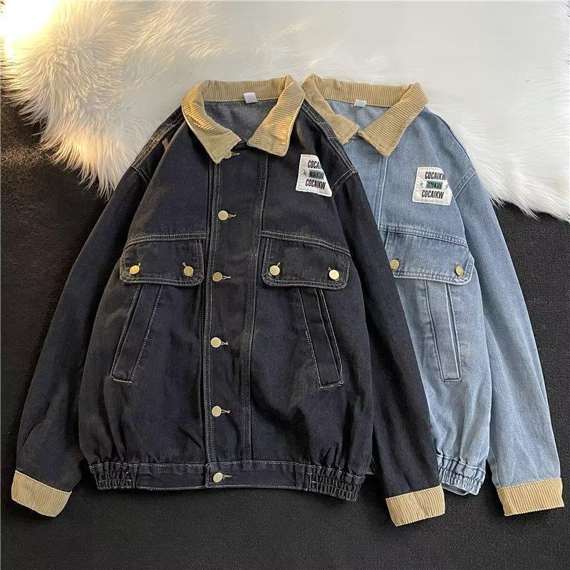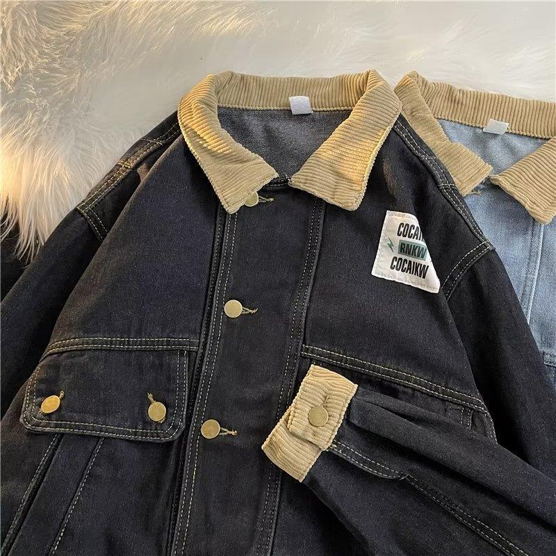 국경 간 트렌디 브랜드 느슨한 올 매치 솔리드 컬러 작업 재킷 코트 캐주얼 탑 데님 재킷 남성 봄과 가을 홍콩 스타일스토어 가기