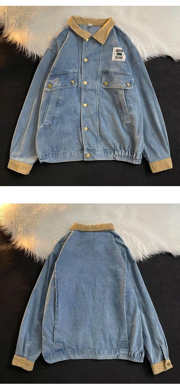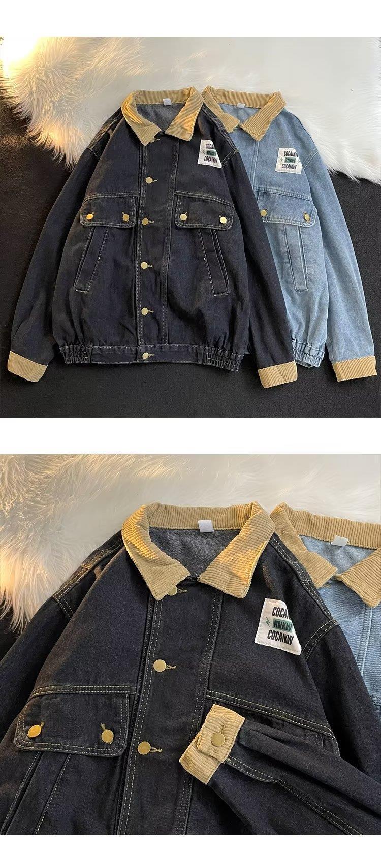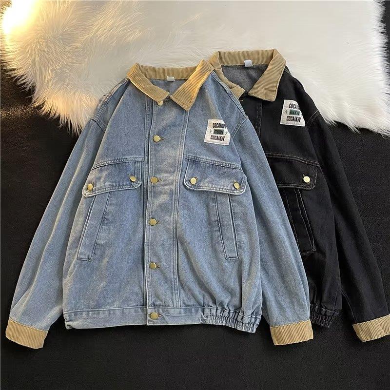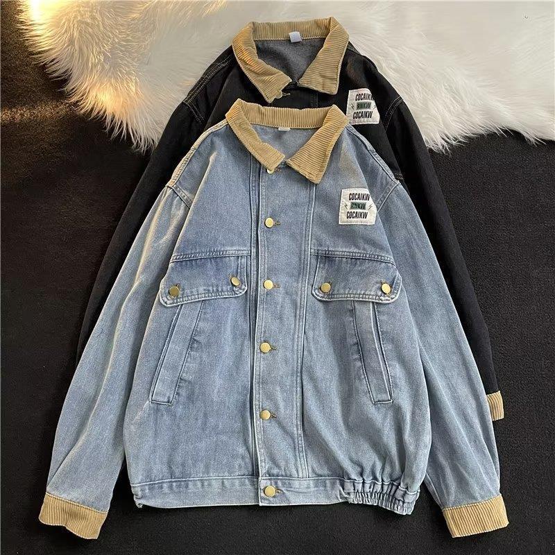 국경 간 트렌디 브랜드 느슨한 올 매치 솔리드 컬러 작업 재킷 코트 캐주얼 탑 데님 재킷 남성 봄과 가을 홍콩 스타일스토어 가기