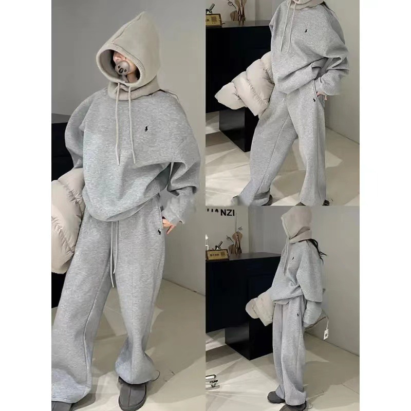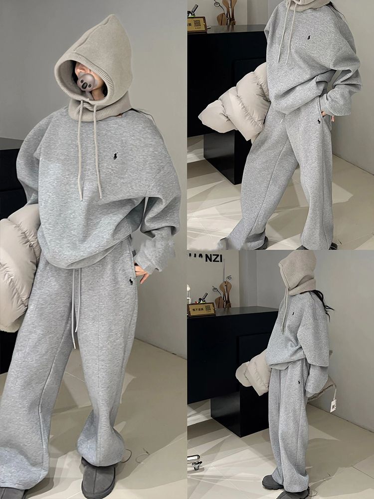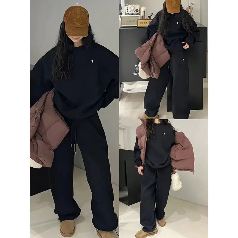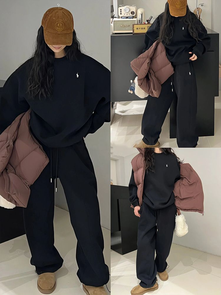 통통녀 오버 사이즈 220 진 한국 동대문 레저 스포츠 세트 가을/겨울 크루 넥 운동복 투피스 세트스토어 가기