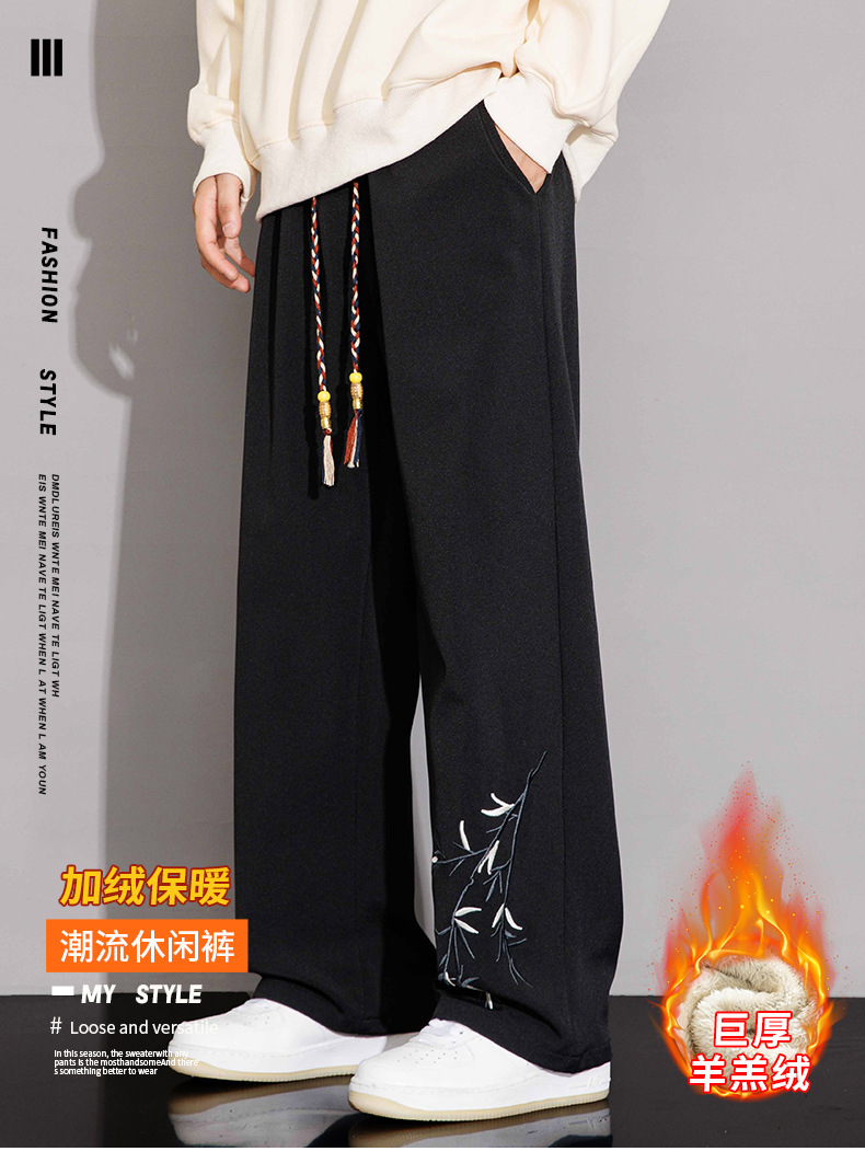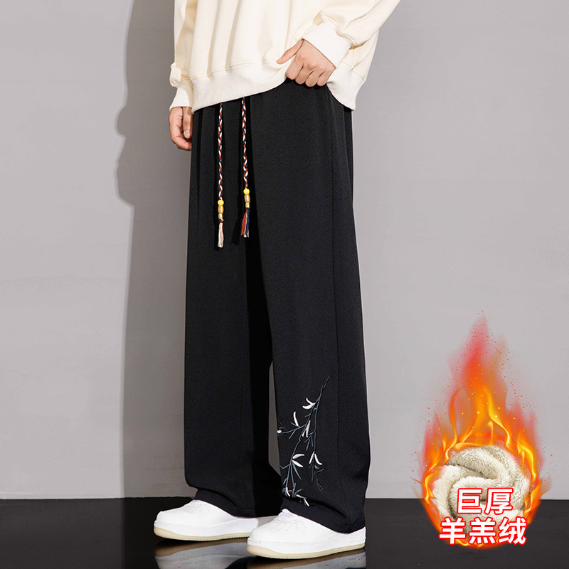 NASA 새로운 중국 스타일 바지 남자의 봄과 가을 새로운 Dagging 국가 스타일 자수 기모 느슨한 스트레이트 캐주얼 바지