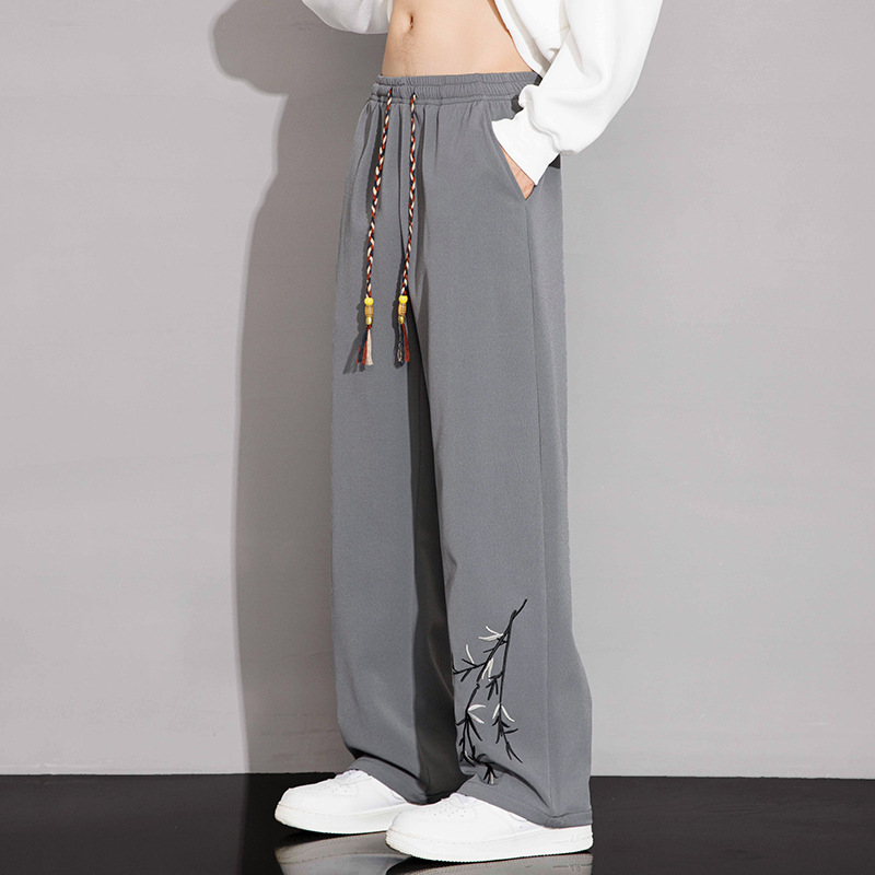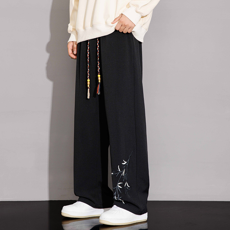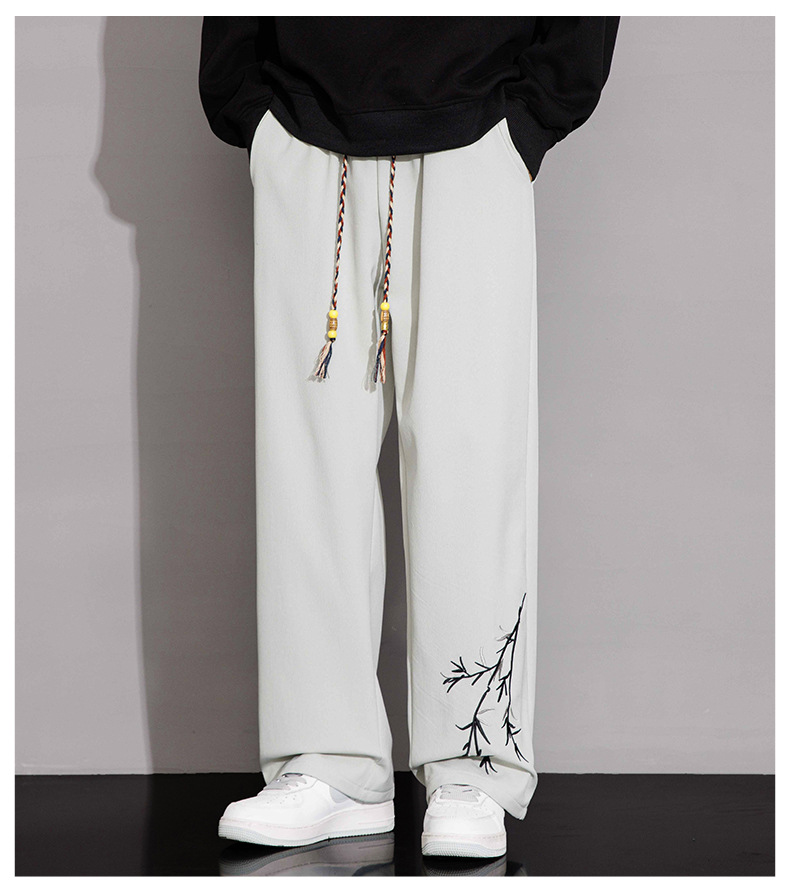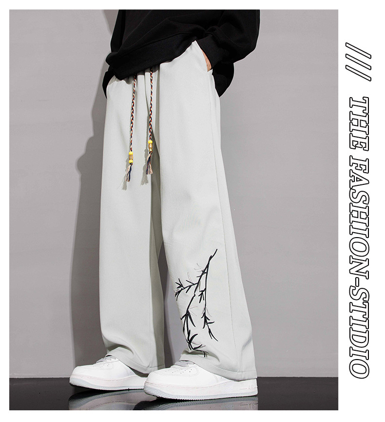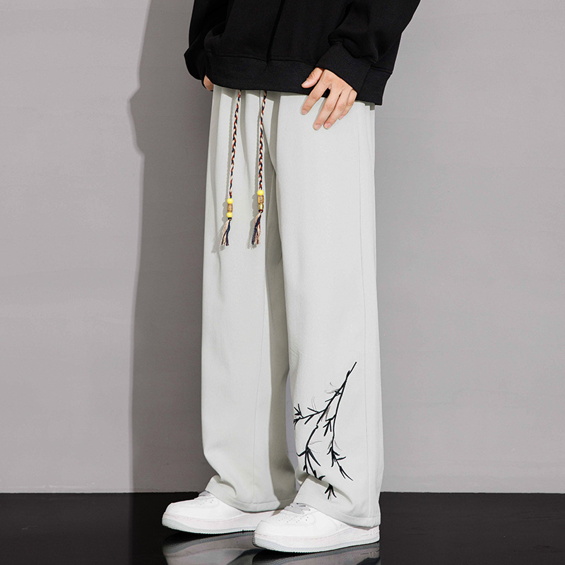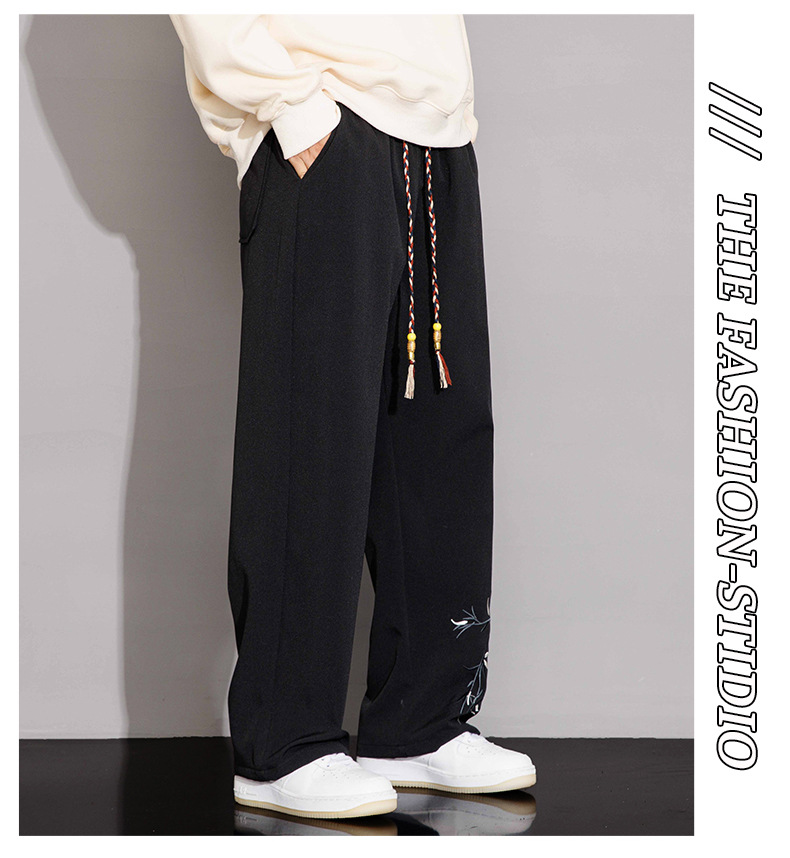 NASA 새로운 중국 스타일 바지 남자의 봄과 가을 새로운 Dagging 국가 스타일 자수 기모 느슨한 스트레이트 캐주얼 바지스토어 가기