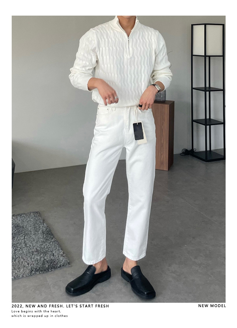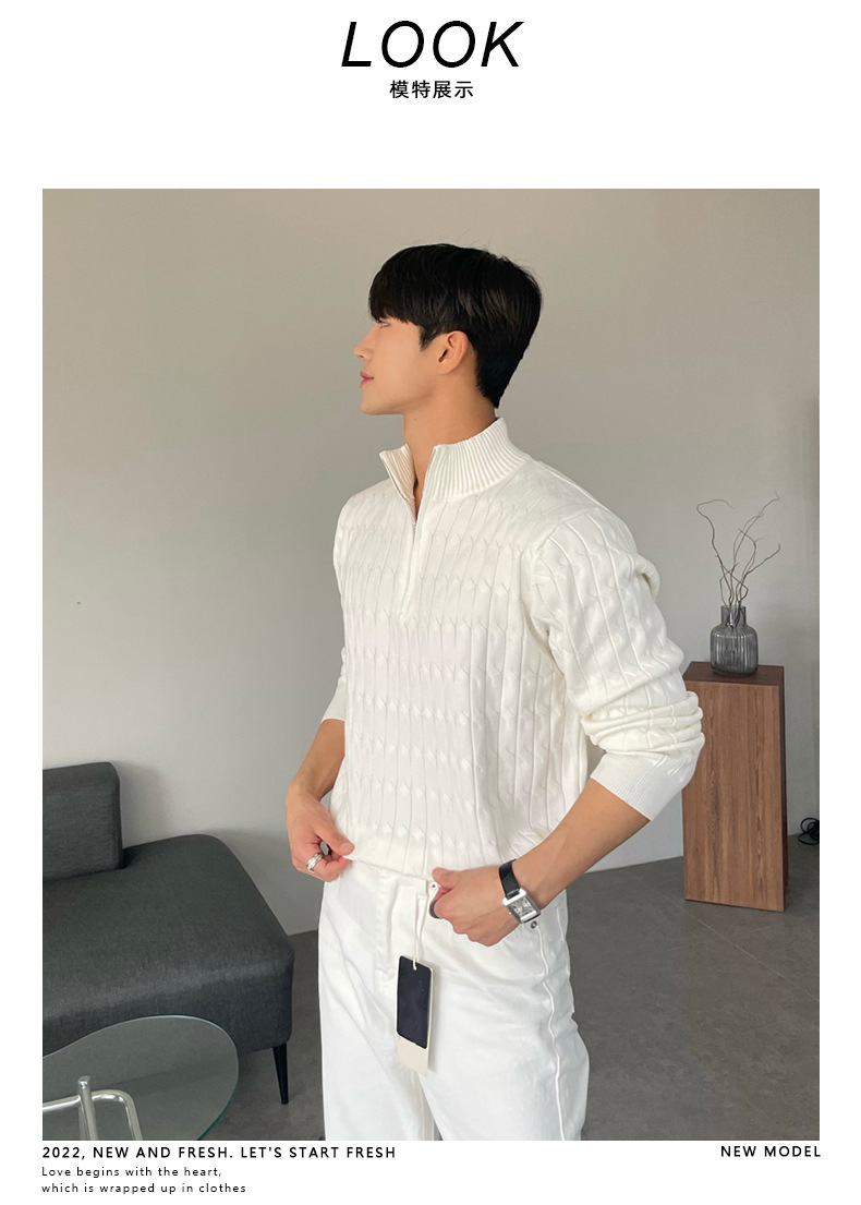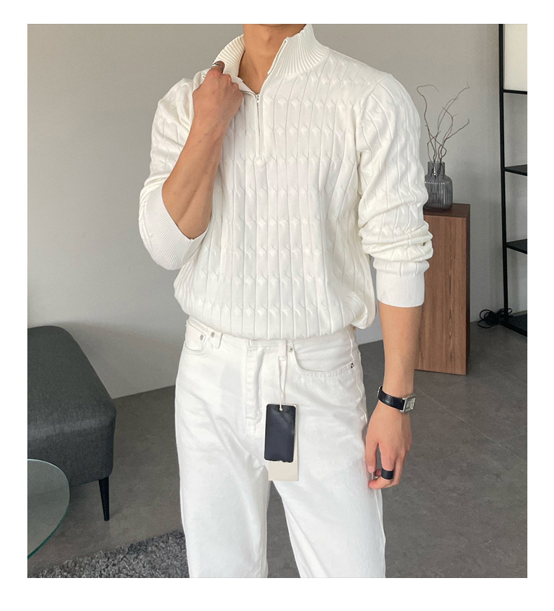국경 간 고급 게으른 풀오버 긴팔 니트웨어 패션 올매치 화이트 재킷 하프 터틀넥 지퍼 스웨터 남성용스토어 가기