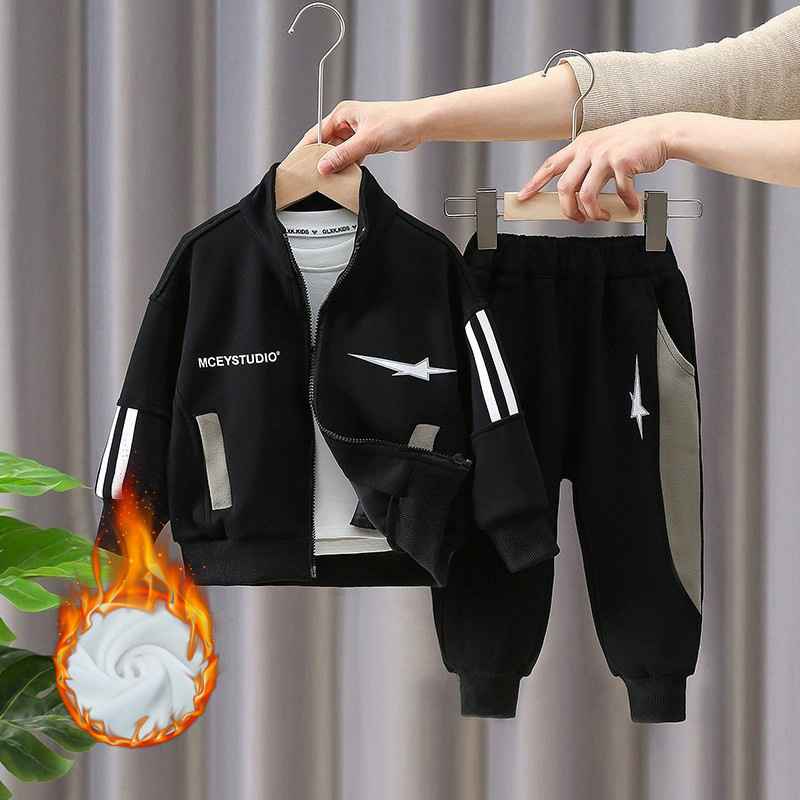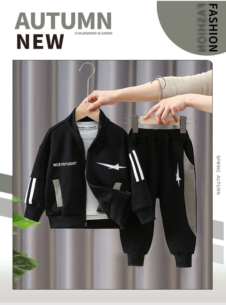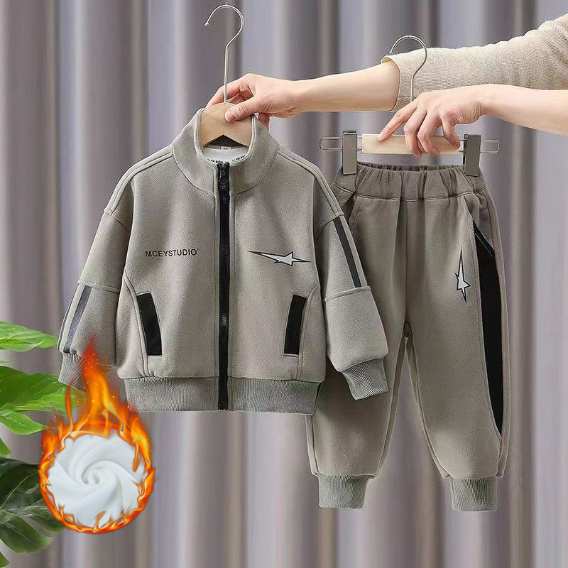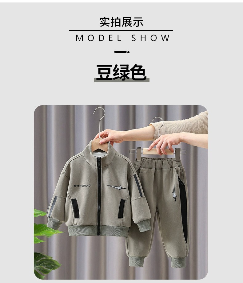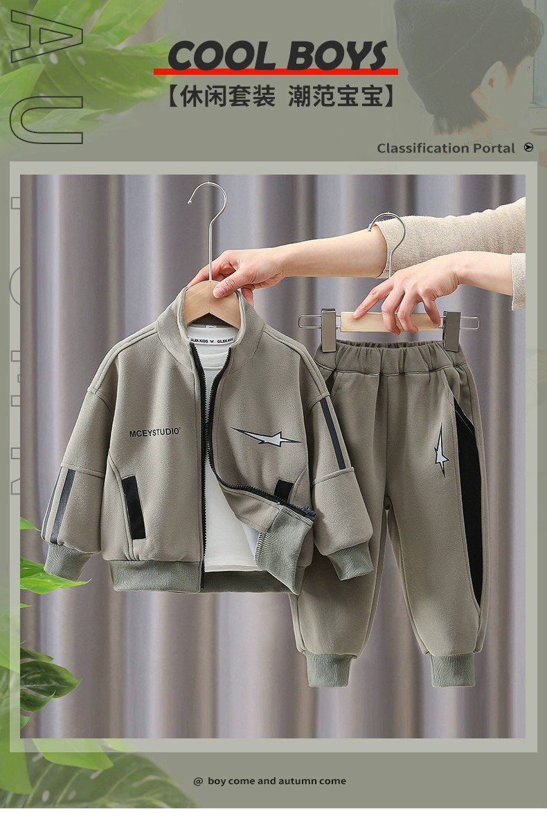 소년의 봄 옷 2024 새로운 세트 아기의 봄과 가을 기모 두 조각 어린이 캐주얼 스포츠 의류 유행스토어 가기