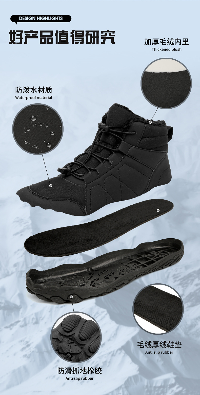재고 스노우 부츠 남성과 여성의 기모 두꺼운 부츠 남성의면 신발 두꺼운 밑창 겨울 따뜻한 신발 야외 신발 국경 도매스토어 가기