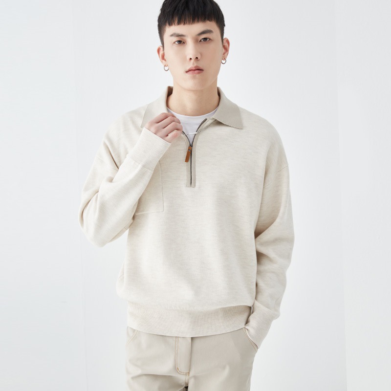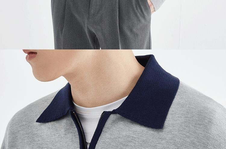 남성용 라이트 성숙한 고급 센스 스웨터 대비 니트 폴로 셔츠 남자 하프 오픈 라펠 스웨터 긴팔 탑 크로스스토어 가기