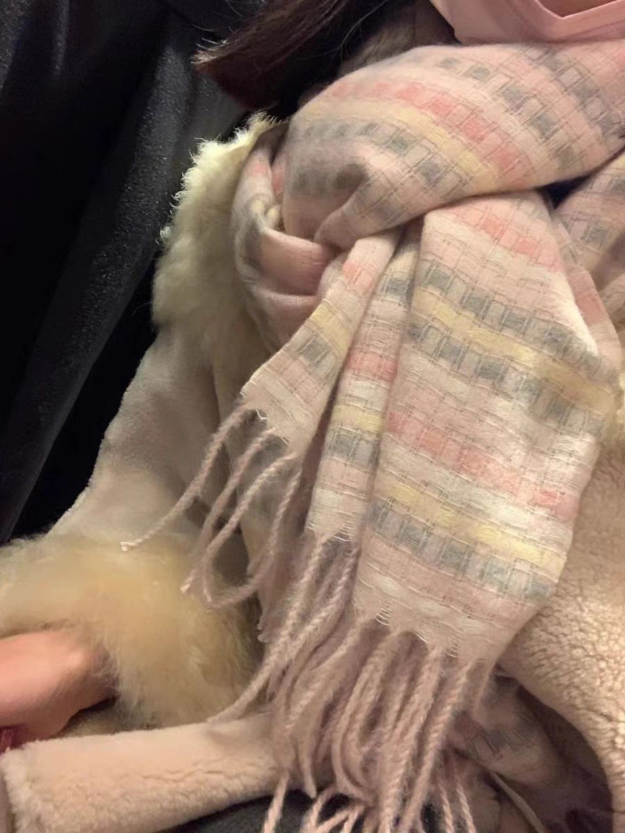 딸기 케이크 크림 달콤한 소녀 체크 무늬 스카프 소녀 겨울 따뜻한 겨울 부드러운 분위기 두꺼운 스카프