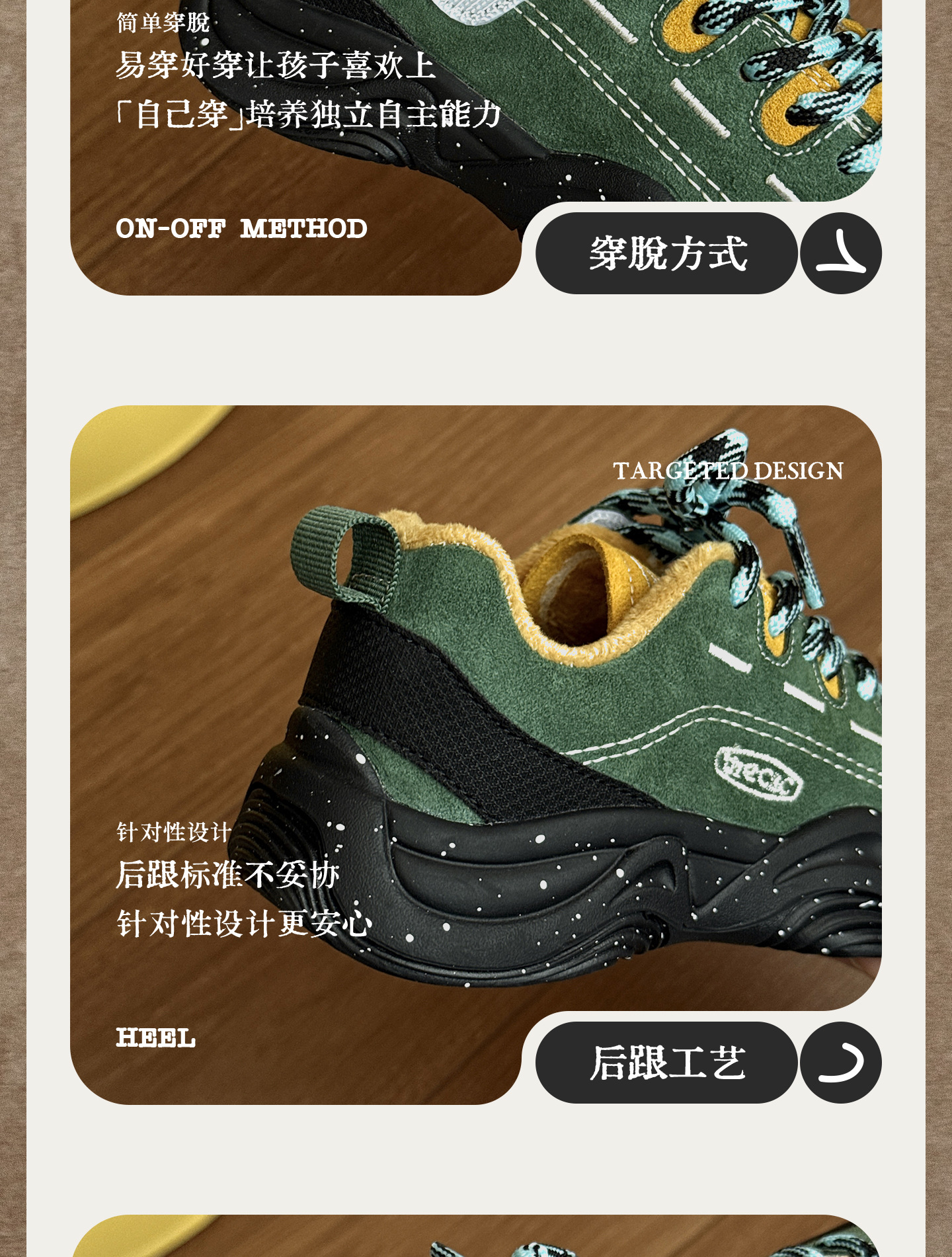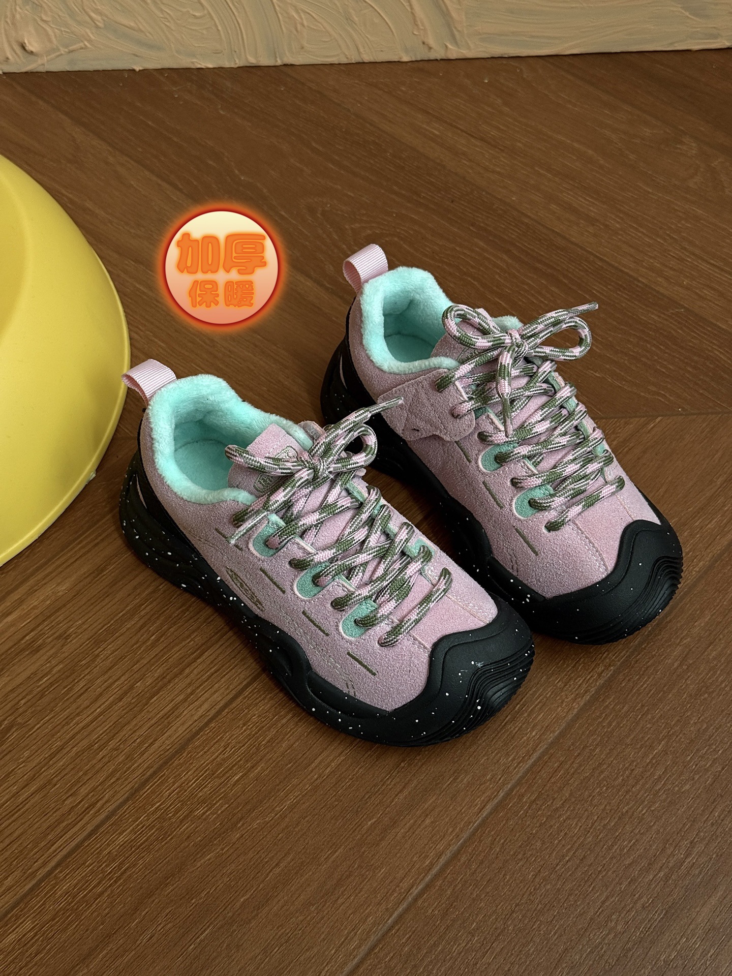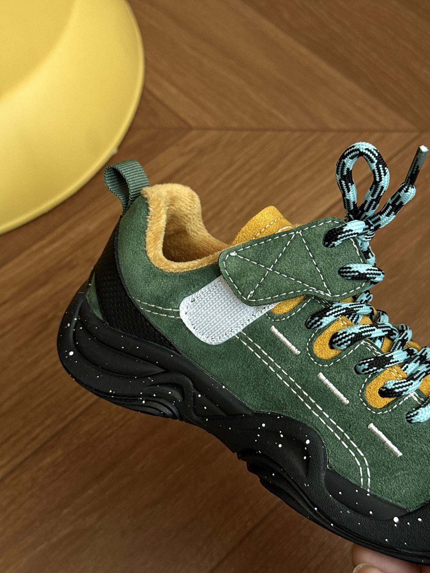 XSHX 기능성 야외 활동|남녀 아동 가을/겨울 산악 스타일 아웃도어 신발, 1층 소가죽 벨벳, 벨크로, 경량, 미끄럼 방지 고무