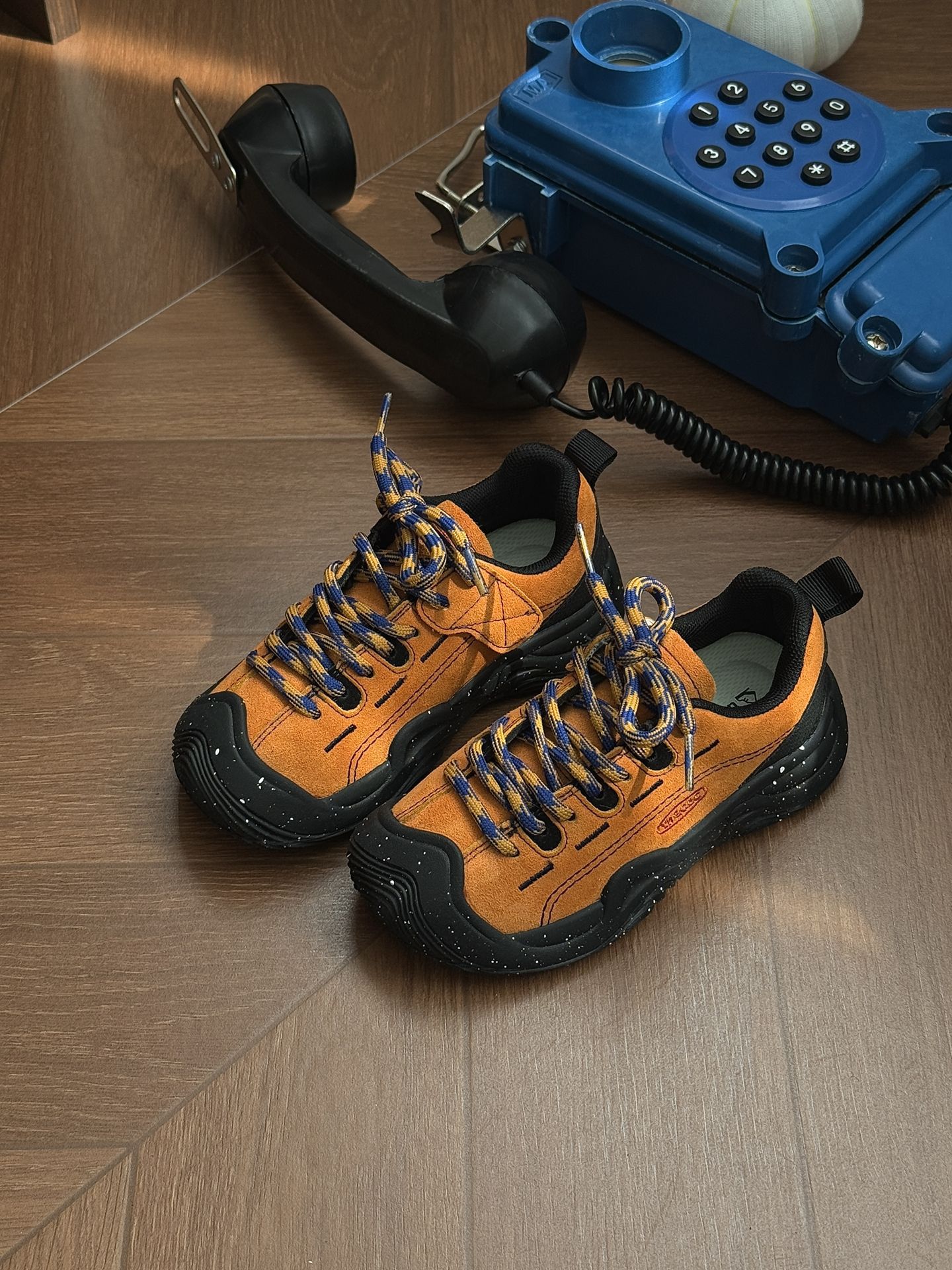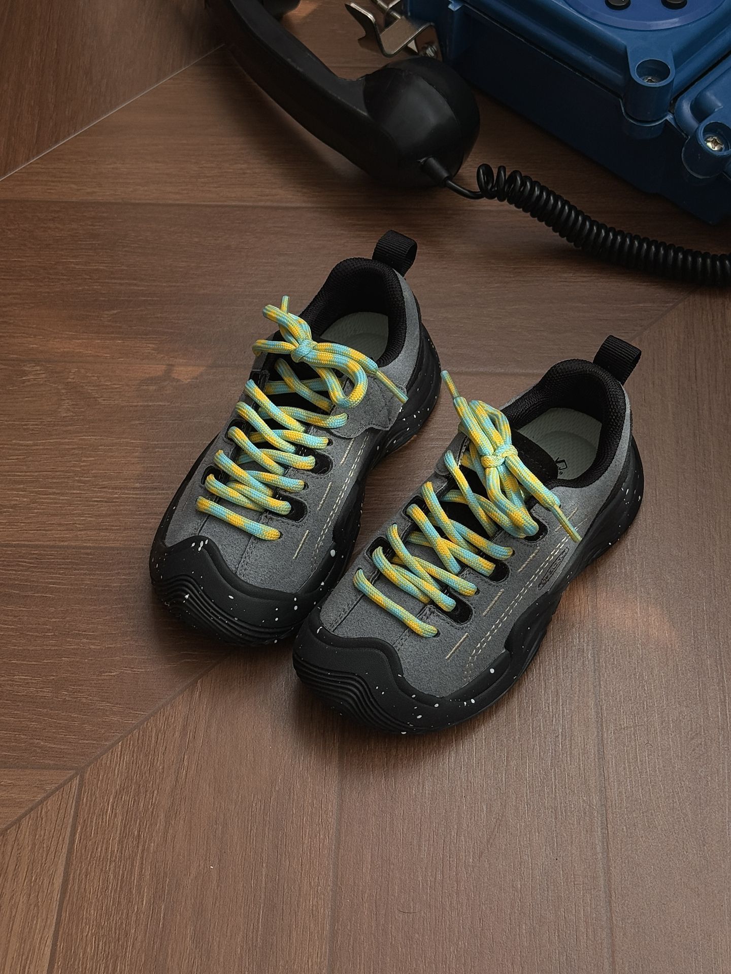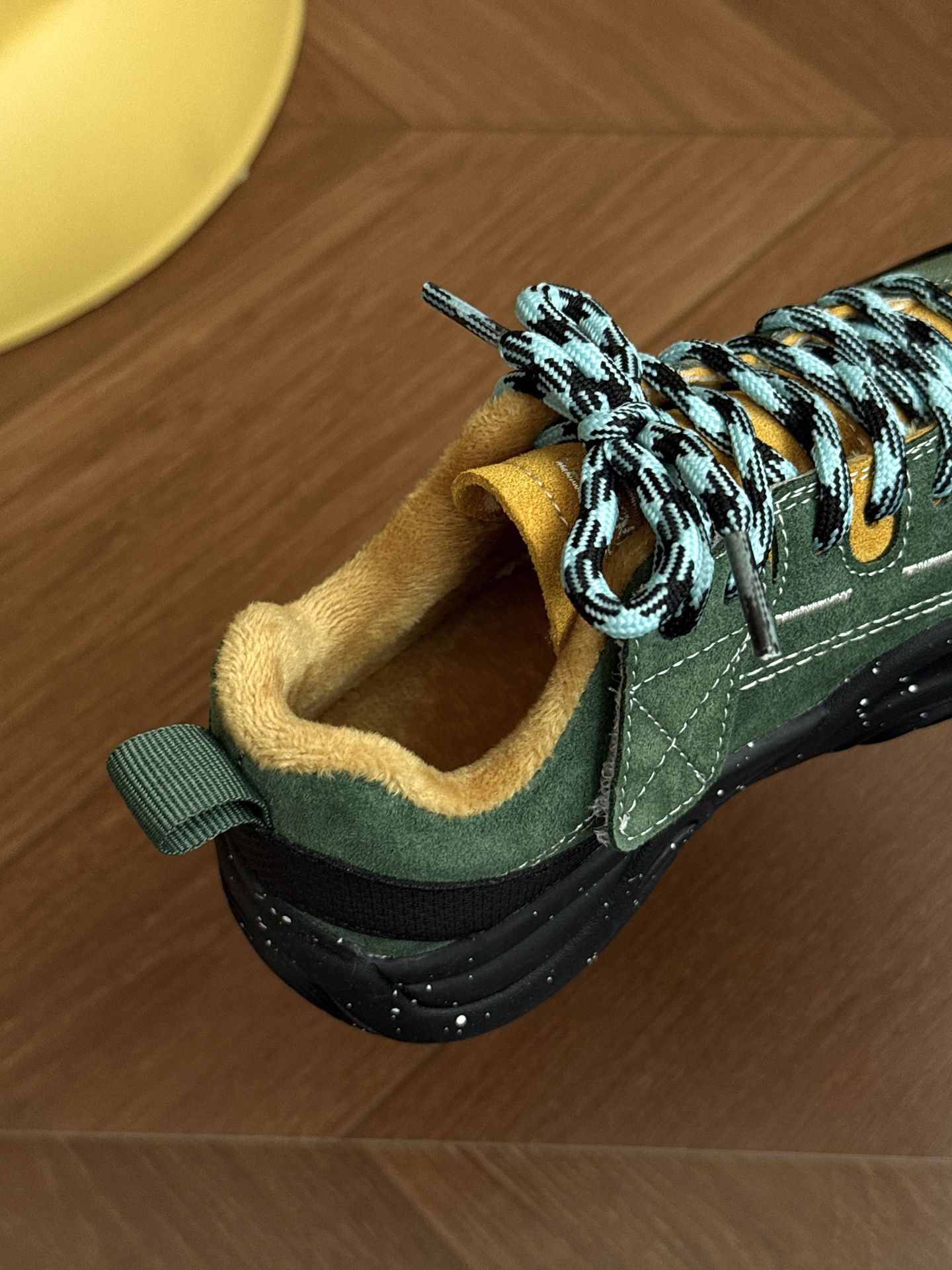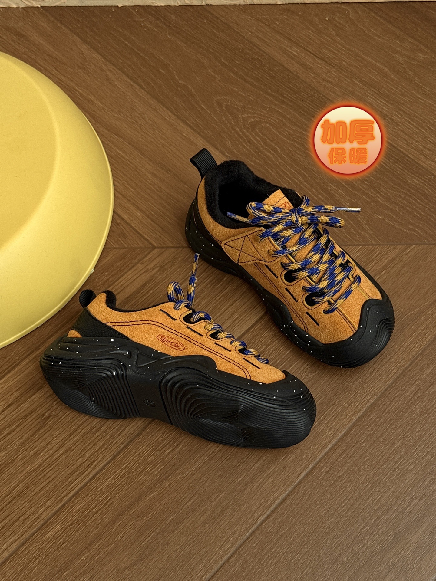 XSHX 기능성 야외 활동|남녀 아동 가을/겨울 산악 스타일 아웃도어 신발, 1층 소가죽 벨벳, 벨크로, 경량, 미끄럼 방지 고무