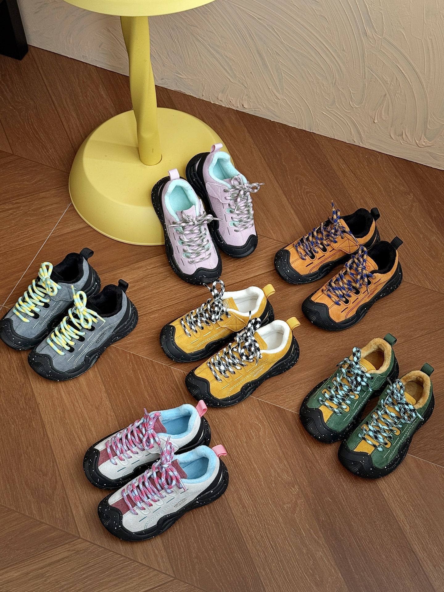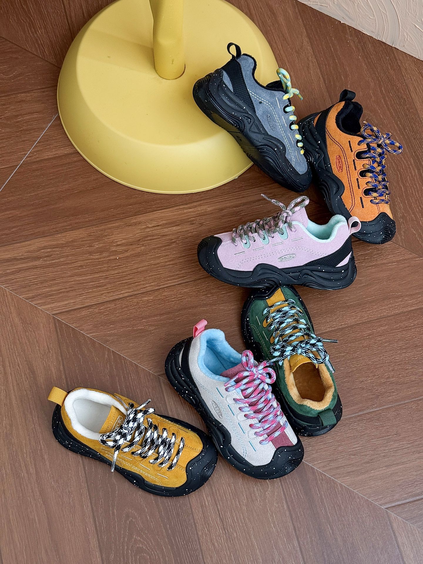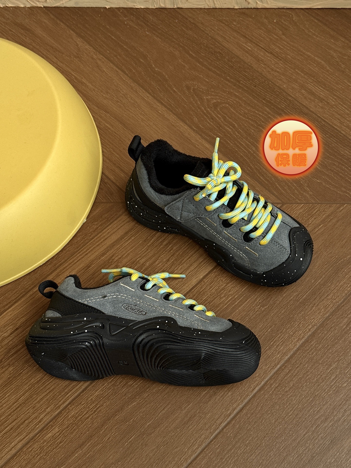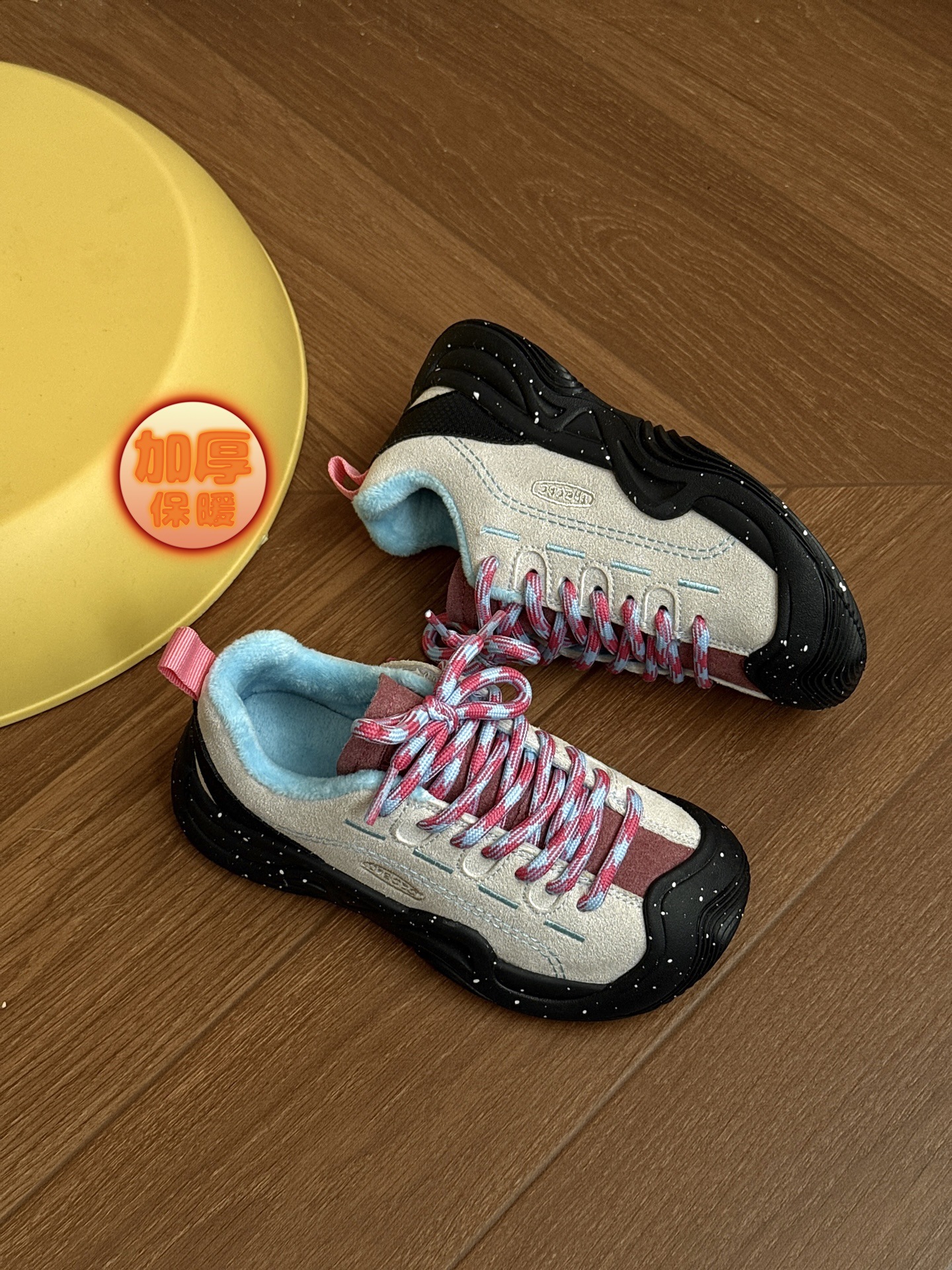 XSHX 기능성 야외 활동|남녀 아동 가을/겨울 산악 스타일 아웃도어 신발, 1층 소가죽 벨벳, 벨크로, 경량, 미끄럼 방지 고무스토어 가기