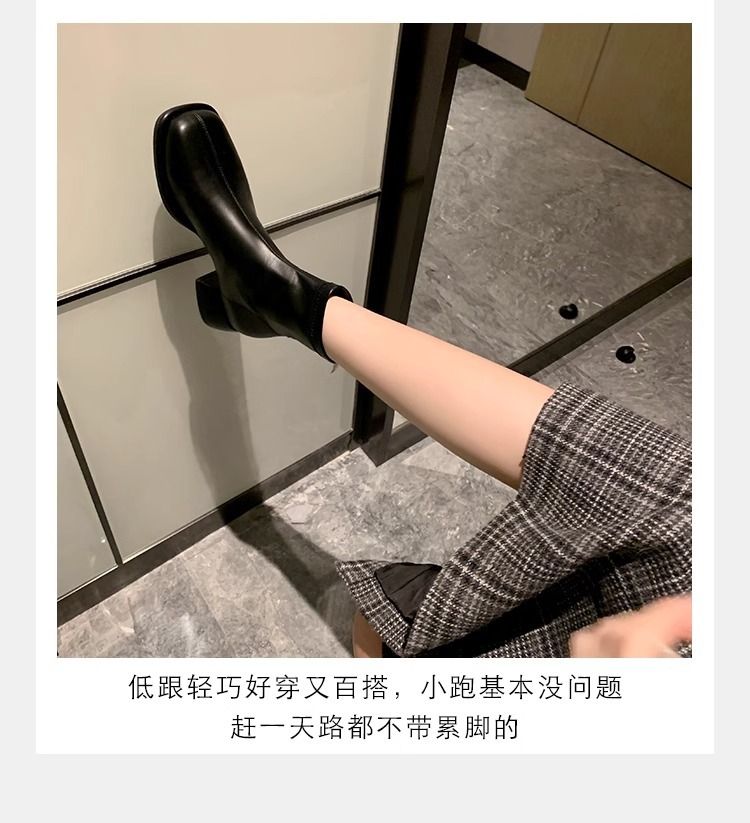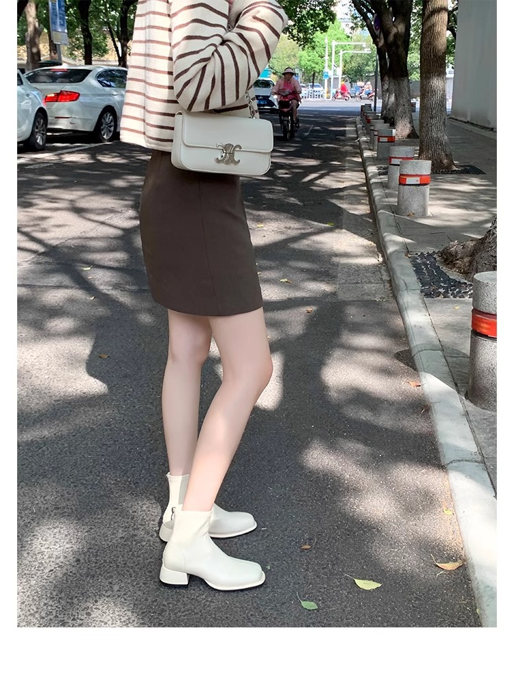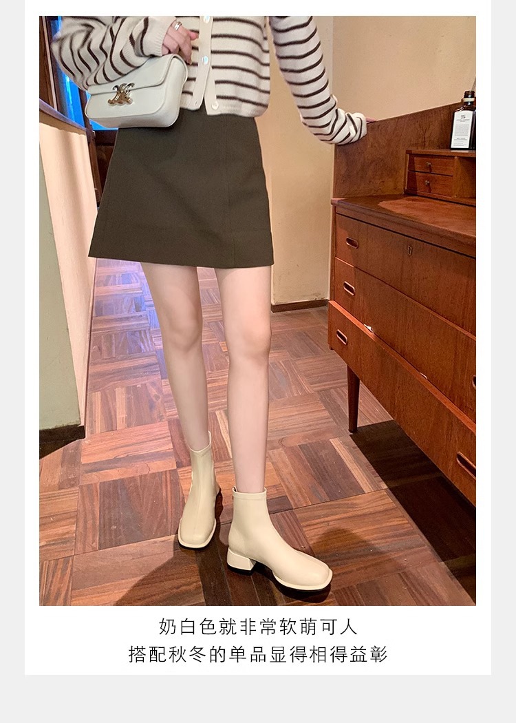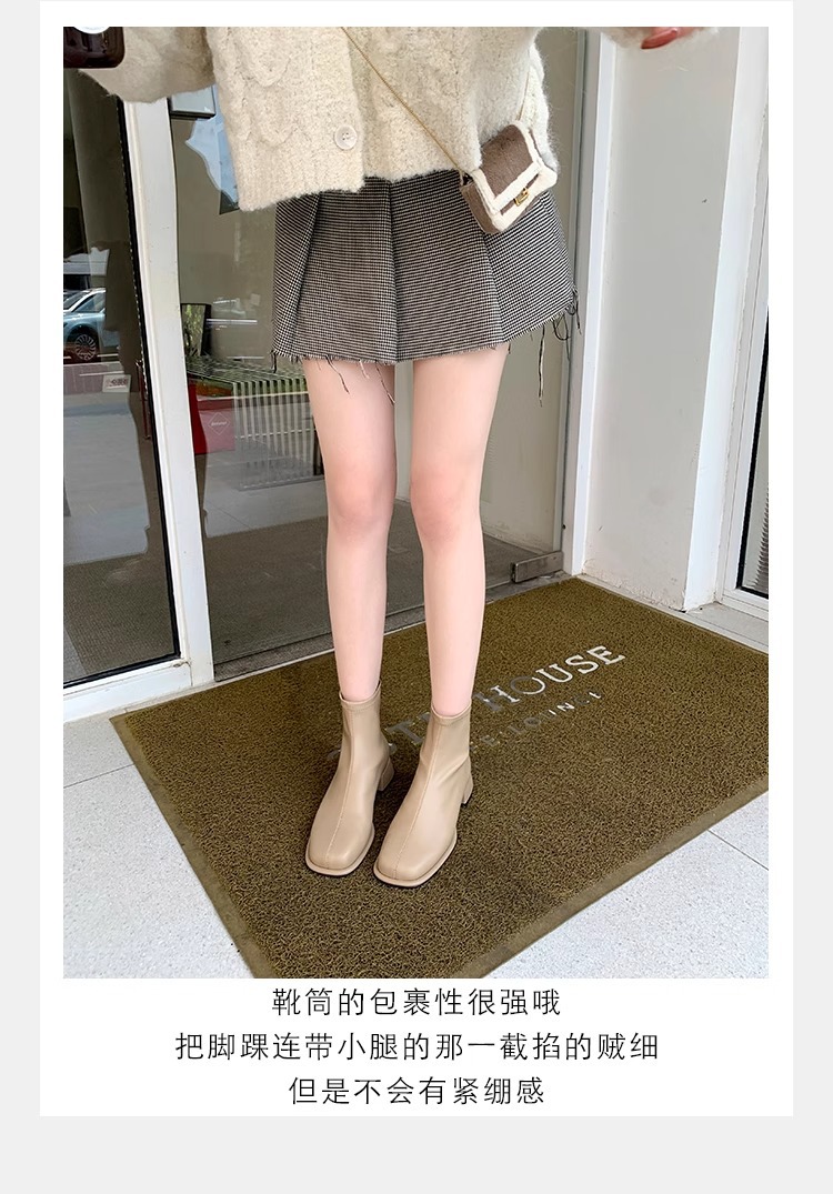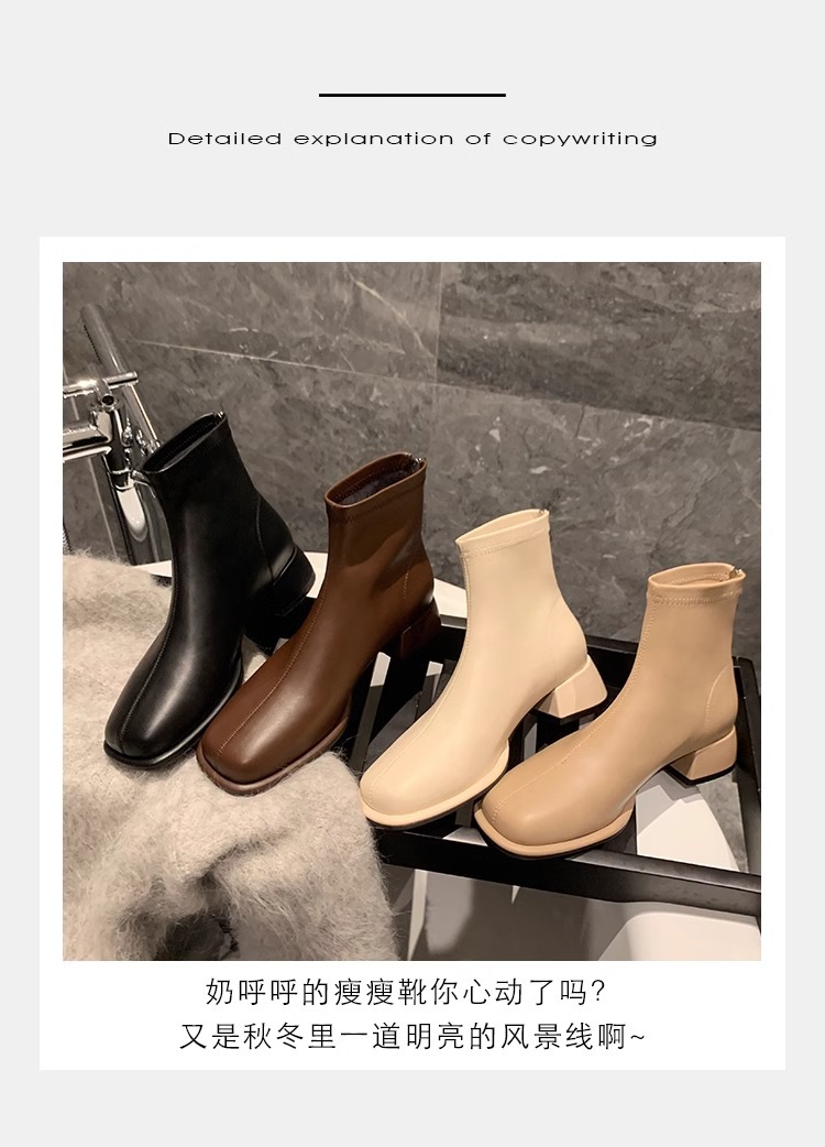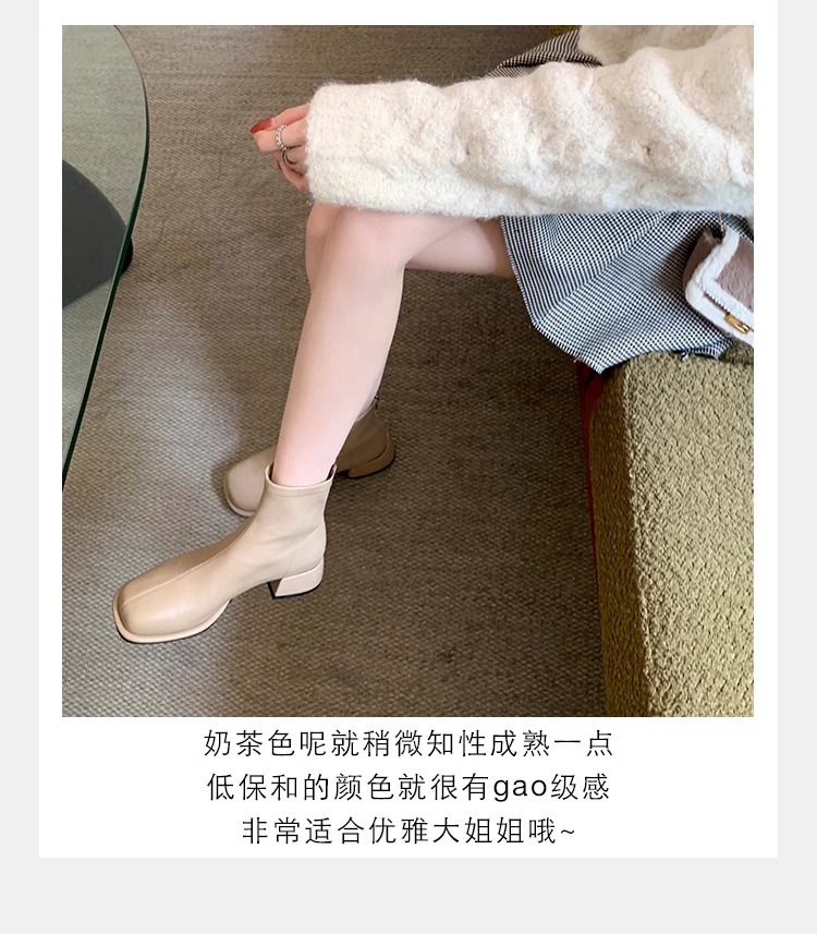 Cowhide Edition ~ 포도 엄마 같은 스타일 프렌치 스퀘어 헤드 두꺼운 힐 쇼트 부츠 여성용 리어 지퍼 얇은 부츠 가죽 마틴 부츠스토어 가기
