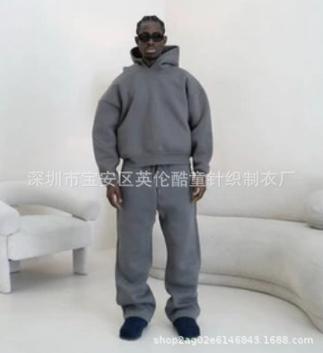 2024 유럽과 미국 국경 캐주얼 간단한 커플 패션 후드 스웨터 단색 느슨한 스웨터 바지 도매스토어 가기