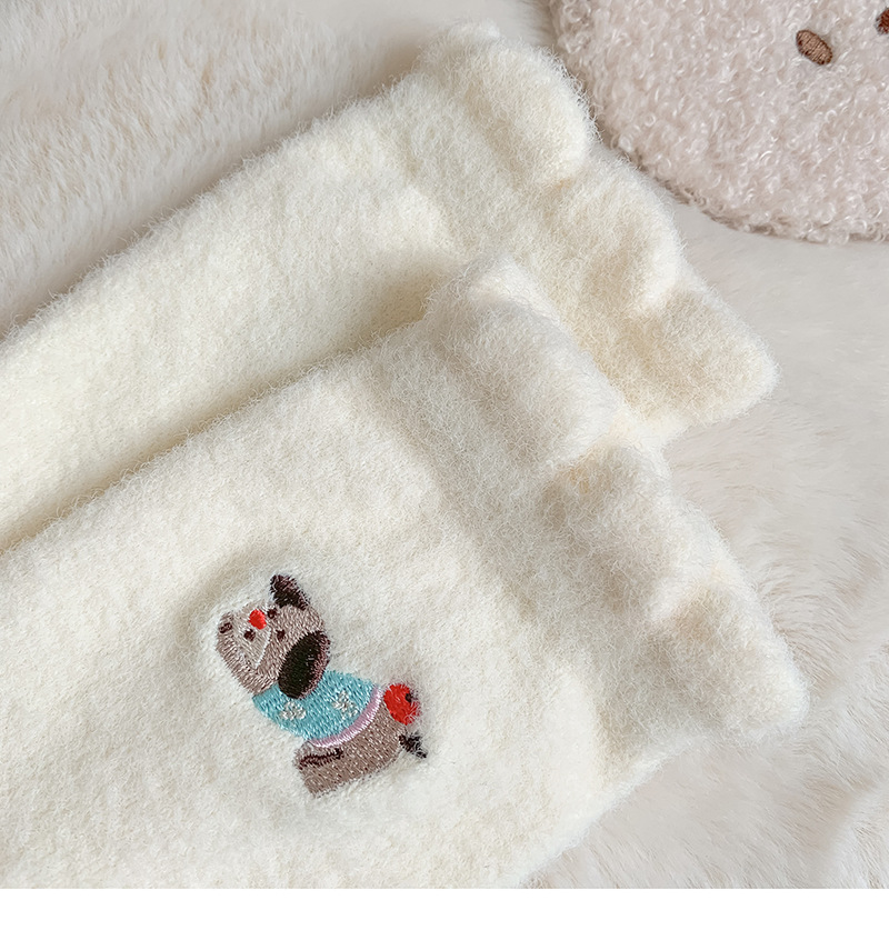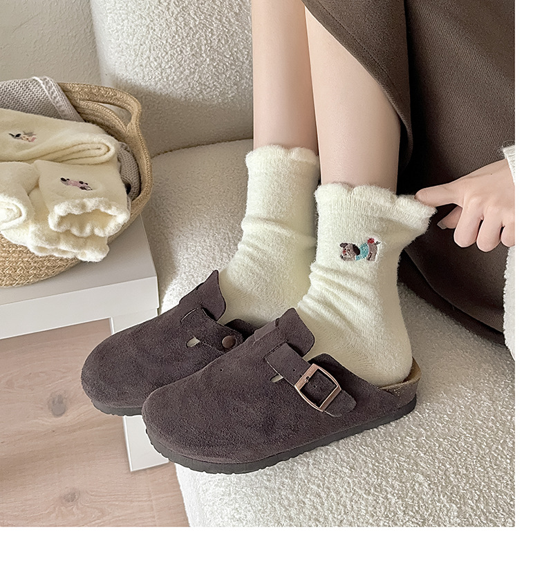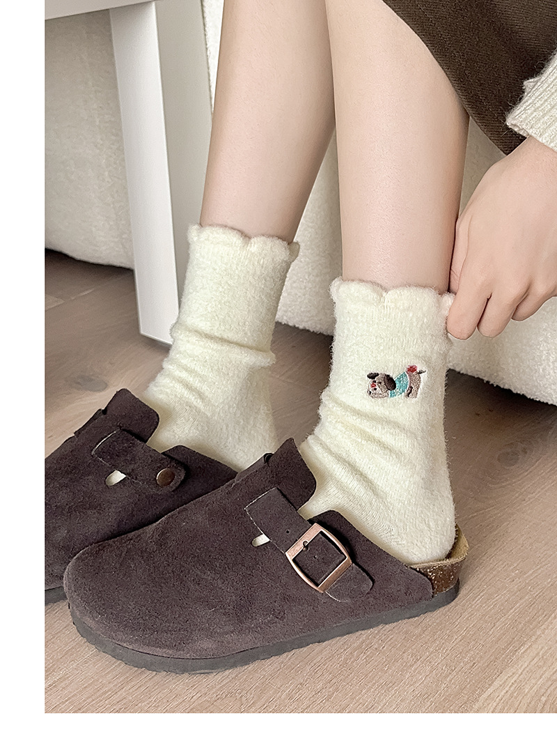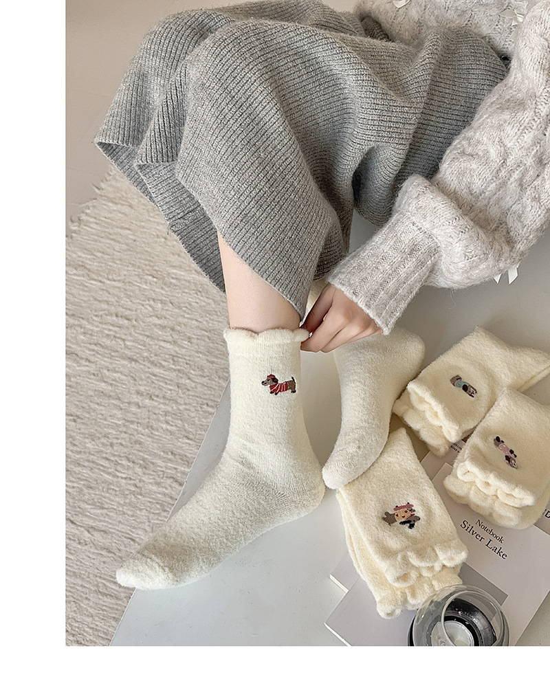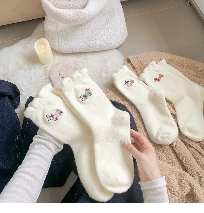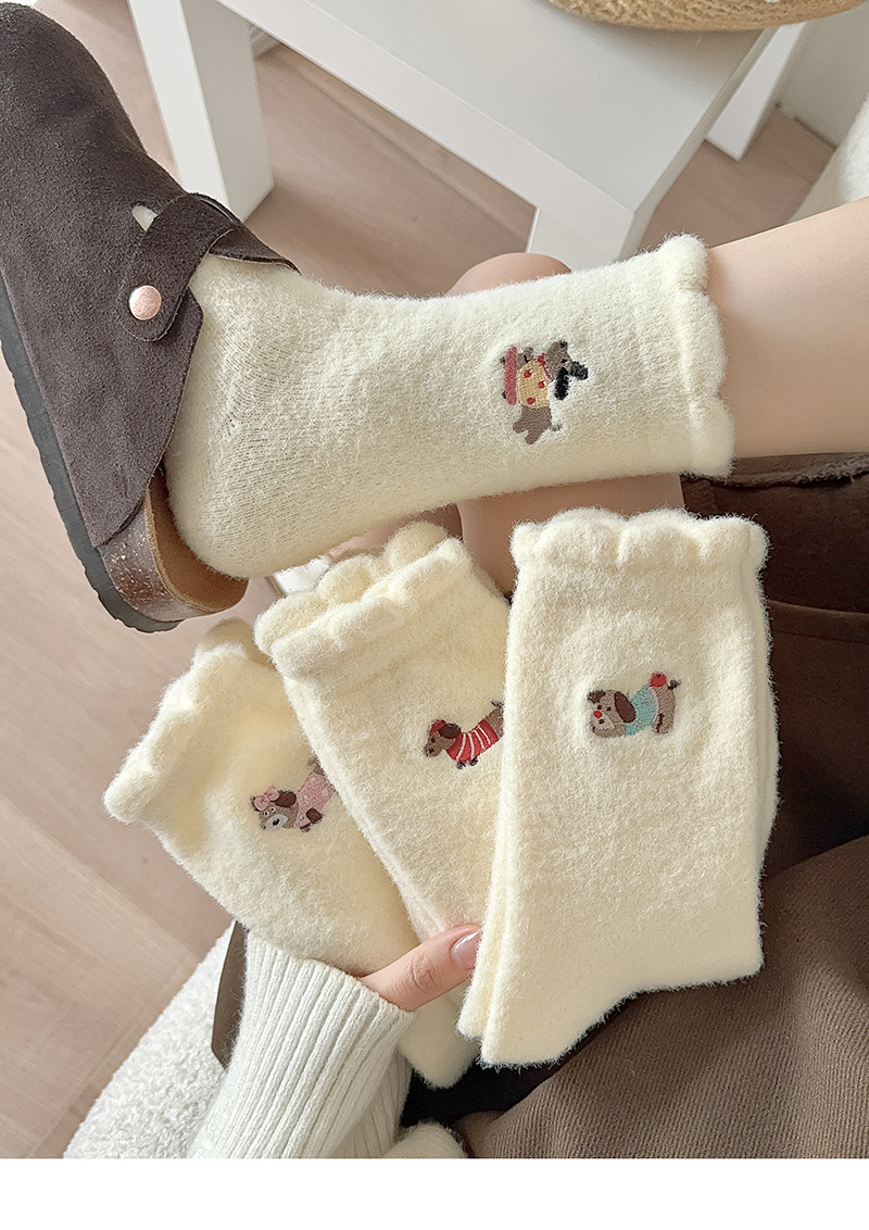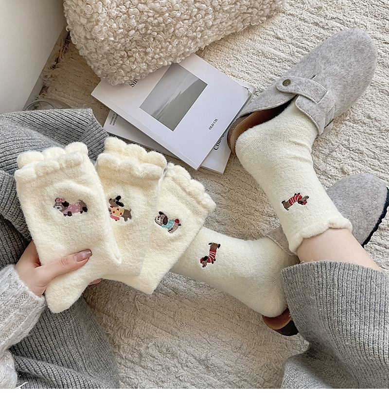 호주 벨벳 흰색 양말 여성 튜브 양말 귀여운 만화 강아지 가을과 겨울 따뜻한 두꺼운 보풀이없는 눈 양말