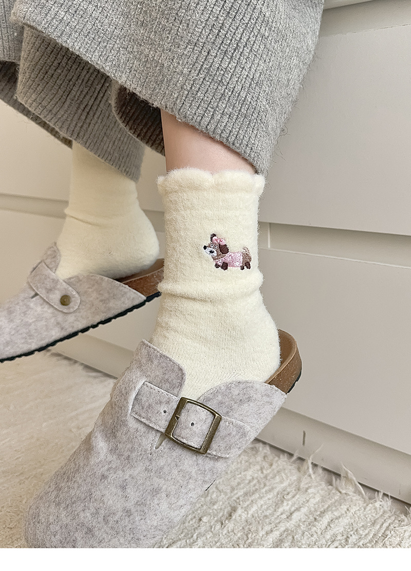 호주 벨벳 흰색 양말 여성 튜브 양말 귀여운 만화 강아지 가을과 겨울 따뜻한 두꺼운 보풀이없는 눈 양말스토어 가기