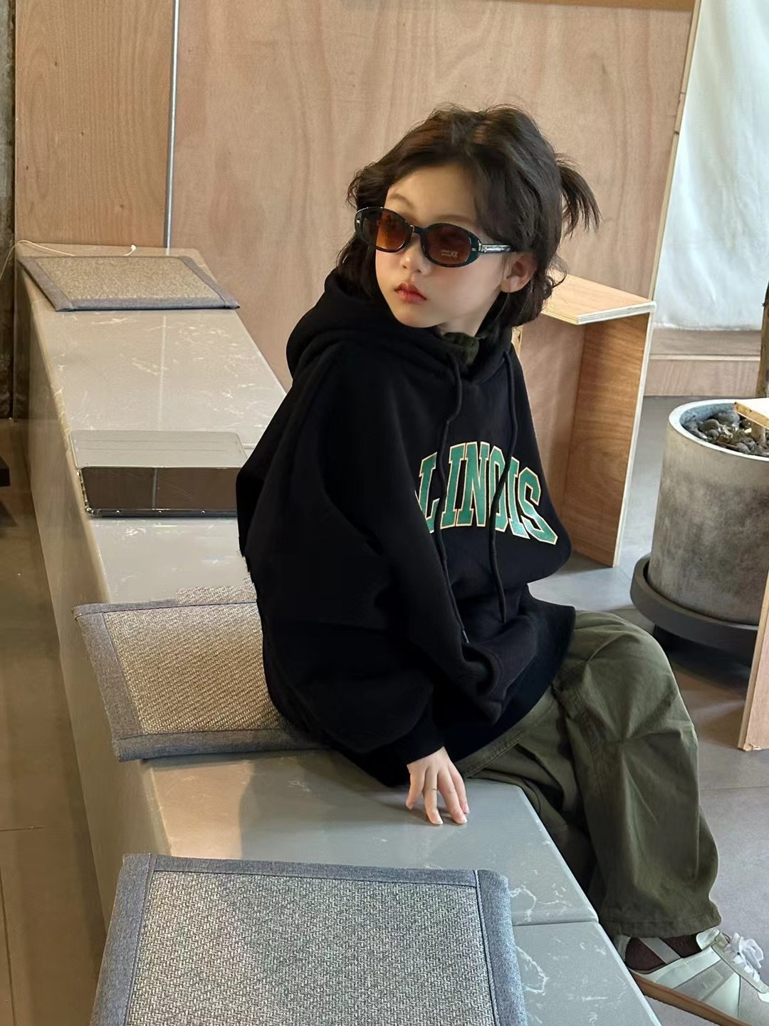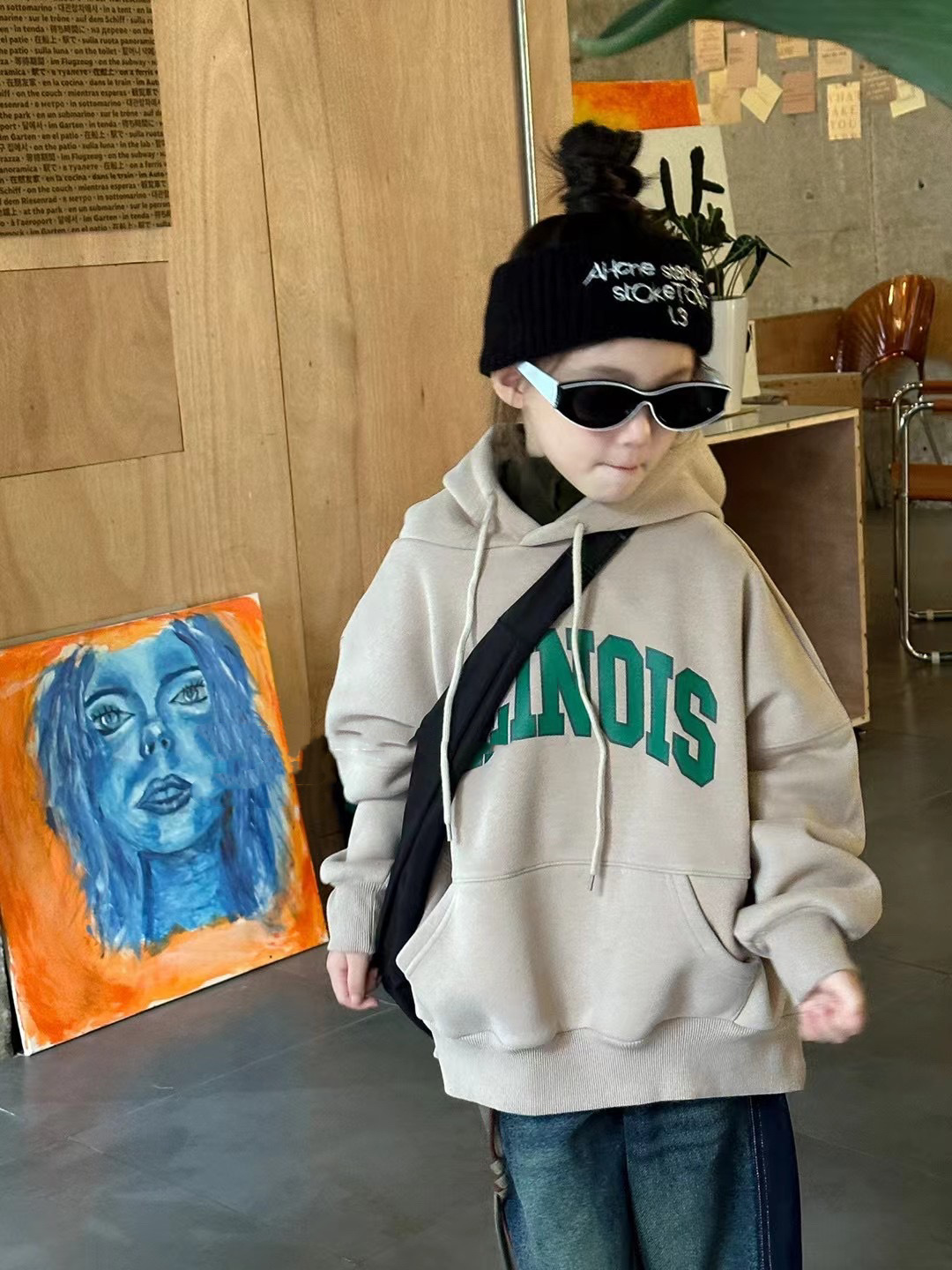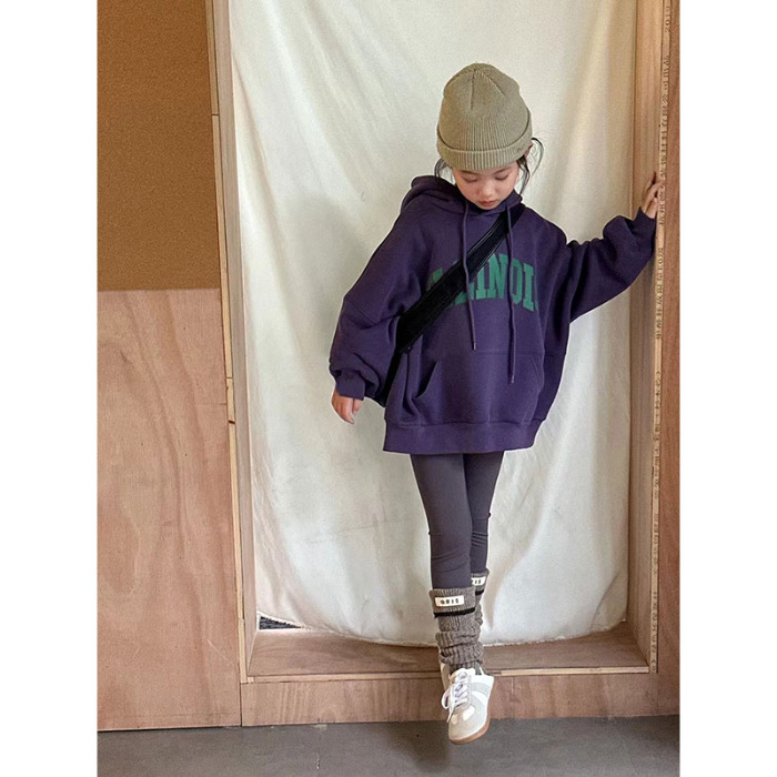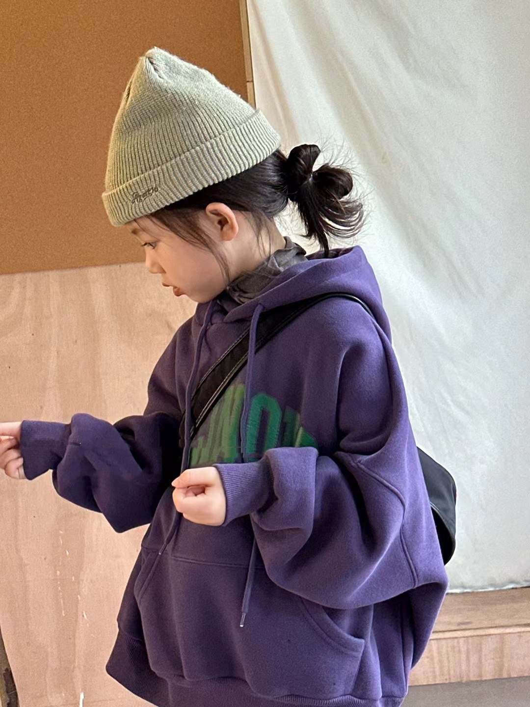 한국 아동복 소녀 편지 후드 기모 땀 2024 겨울 두꺼운 최고 유행 소녀 성격 착용스토어 가기