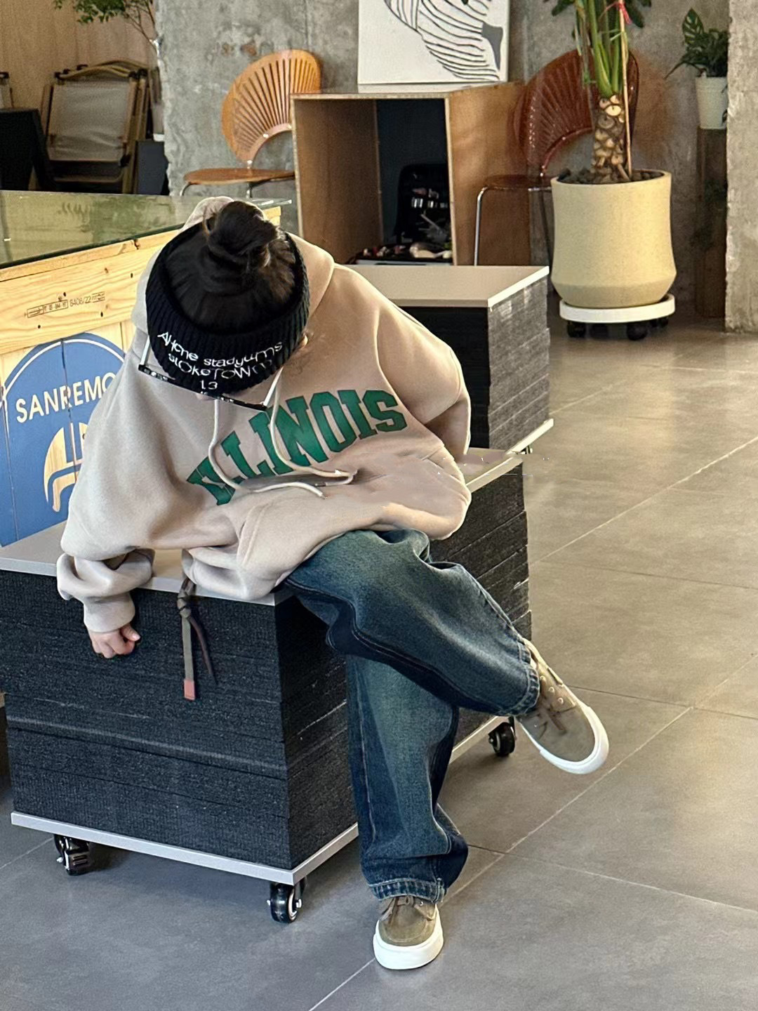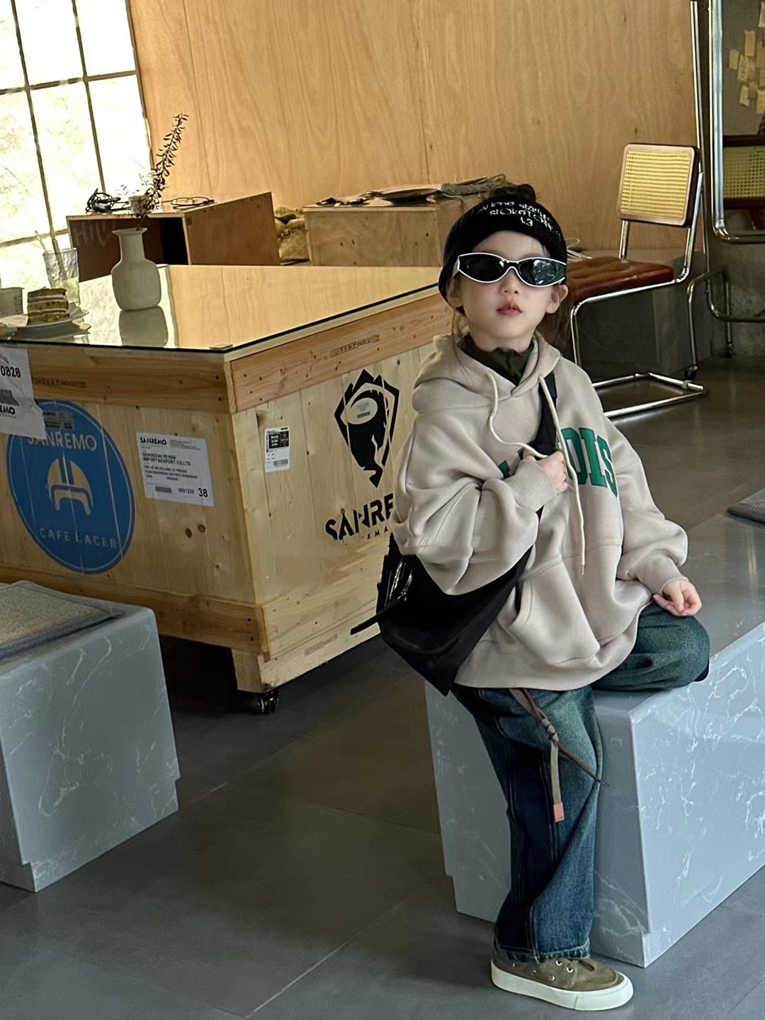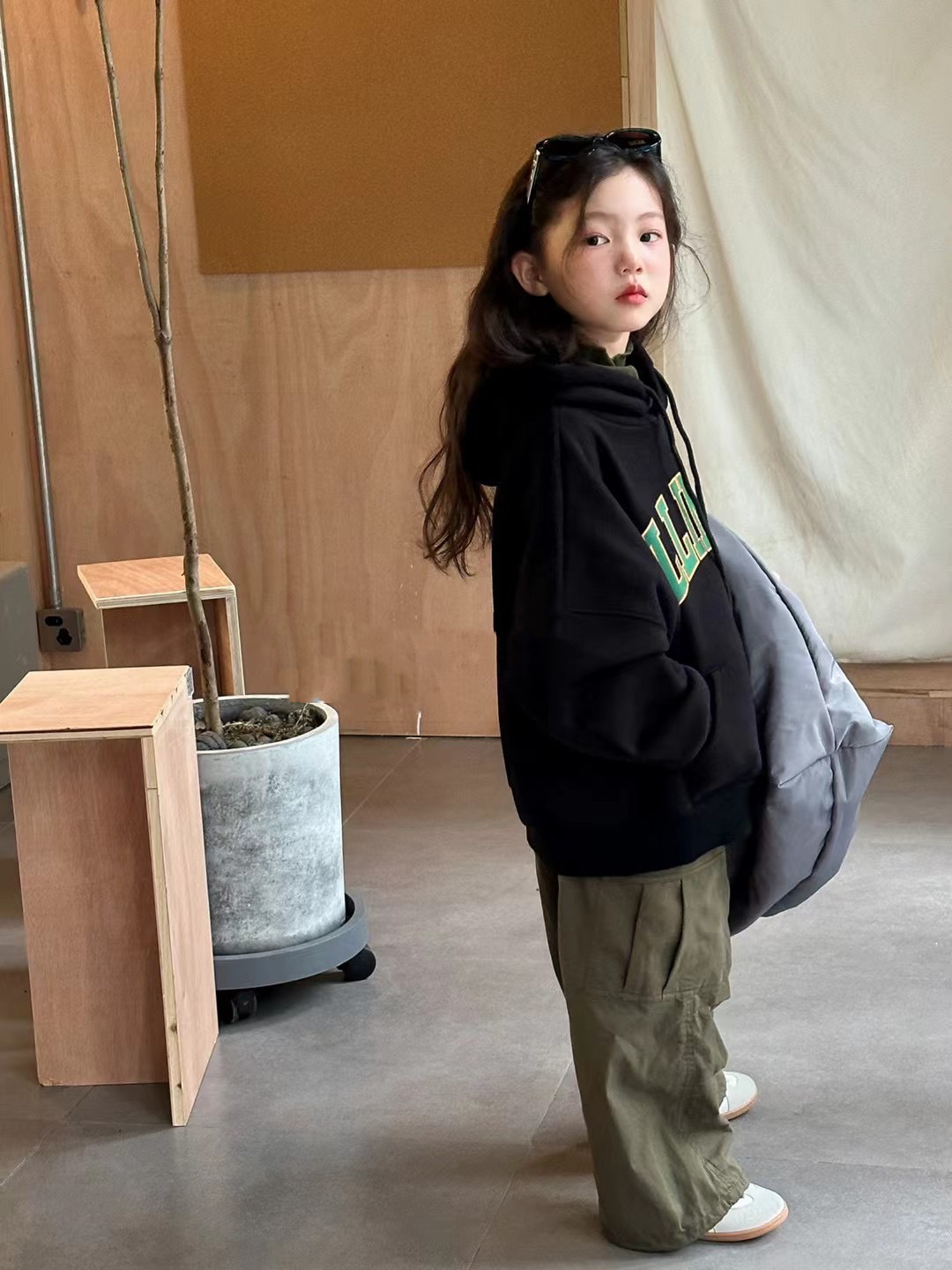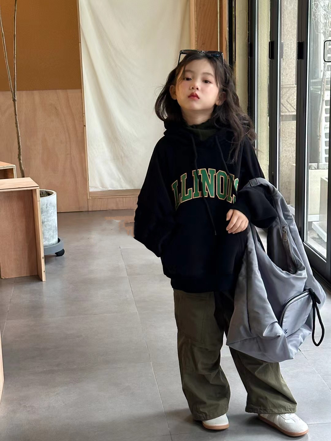 한국 아동복 소녀 편지 후드 기모 땀 2024 겨울 두꺼운 최고 유행 소녀 성격 착용스토어 가기