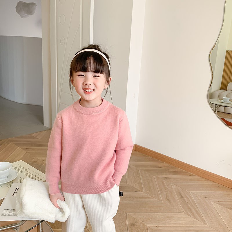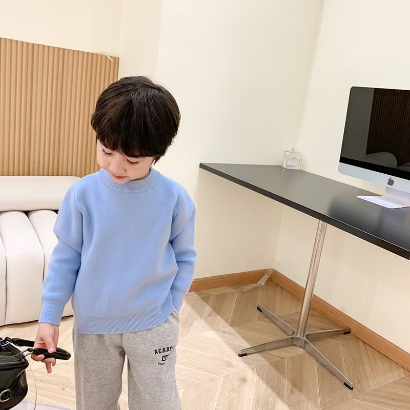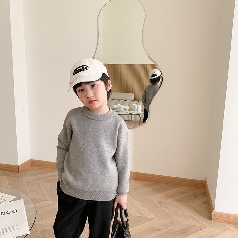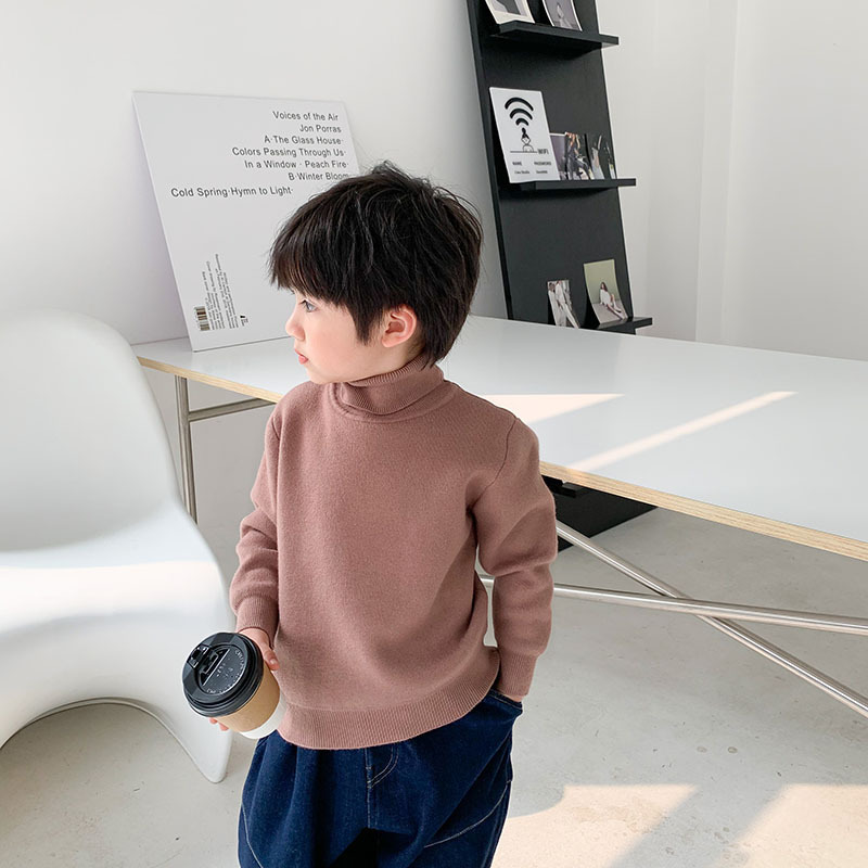 1673 어린이 스웨터 유행 올 매치 보이즈 가을 겨울 스웨터 중간 크기의 어린이 하프 하이 넥 두꺼운 단색 풀오버 내부스토어 가기