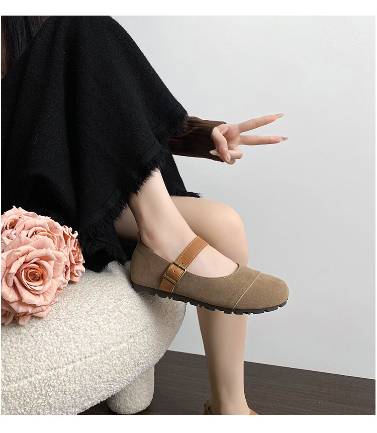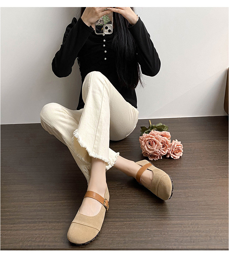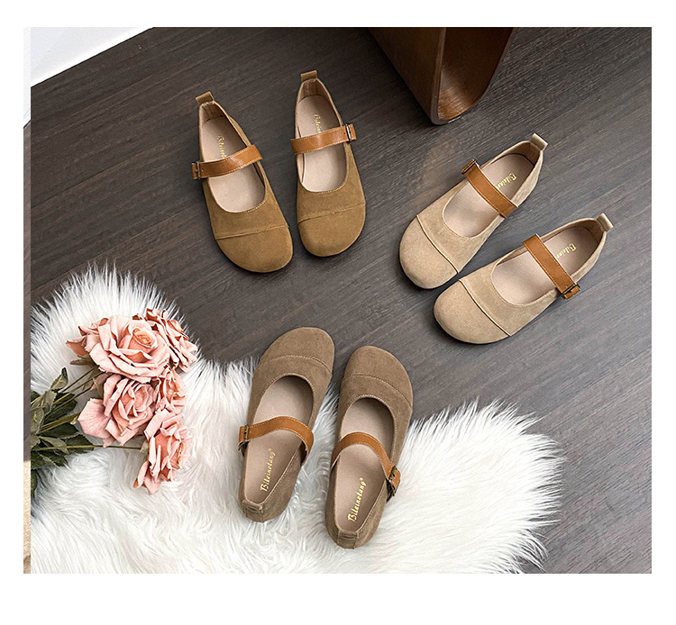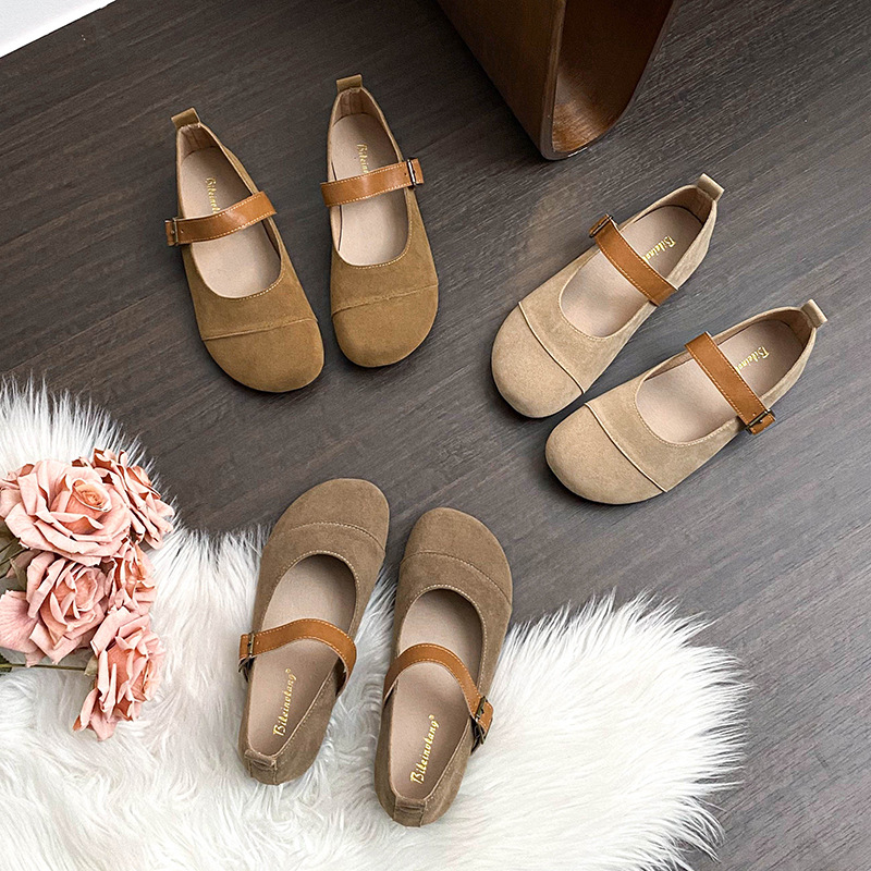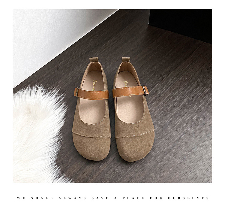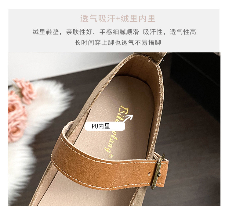 한 캐릭터 버클 메리 제인 신발 2024 새로운 봄 빈티지 작은 가죽 신발 부드러운 바닥 평면 여성의 싱글 레이어 신발 미끄럼 방지스토어 가기