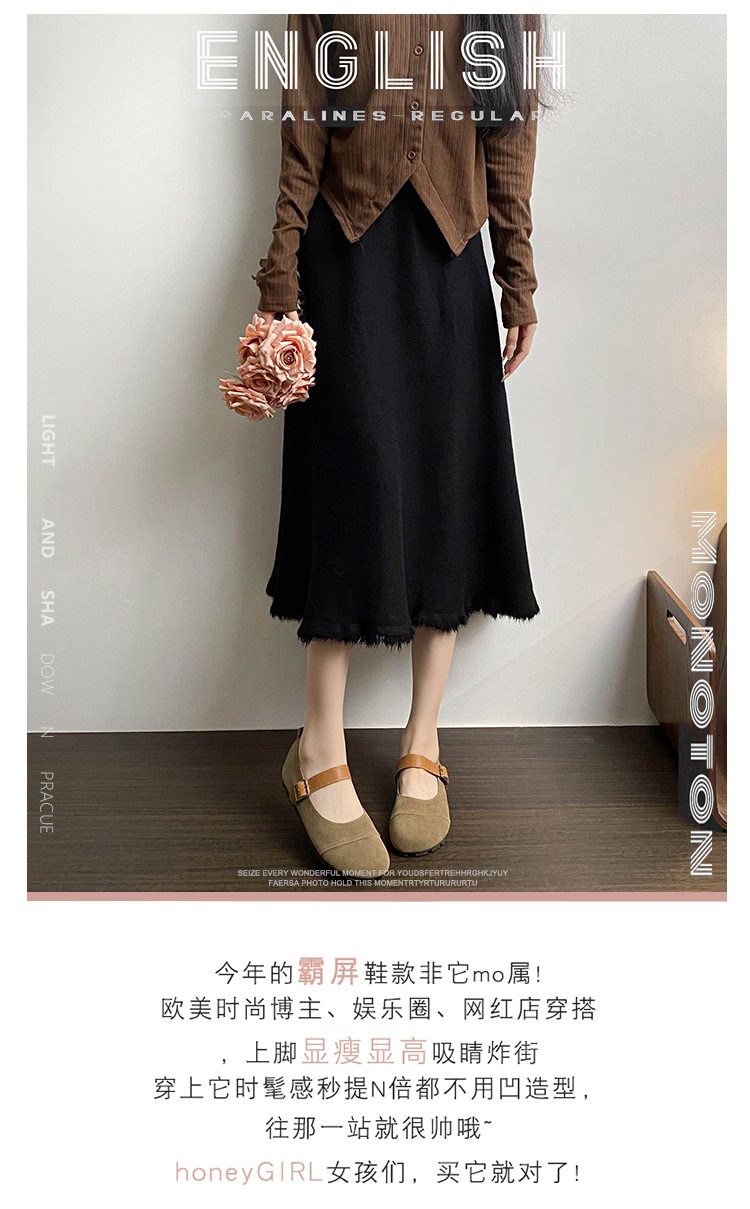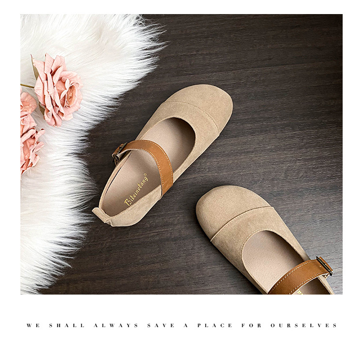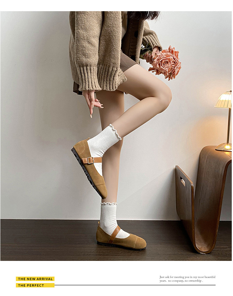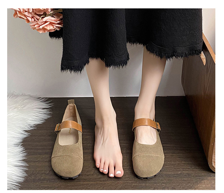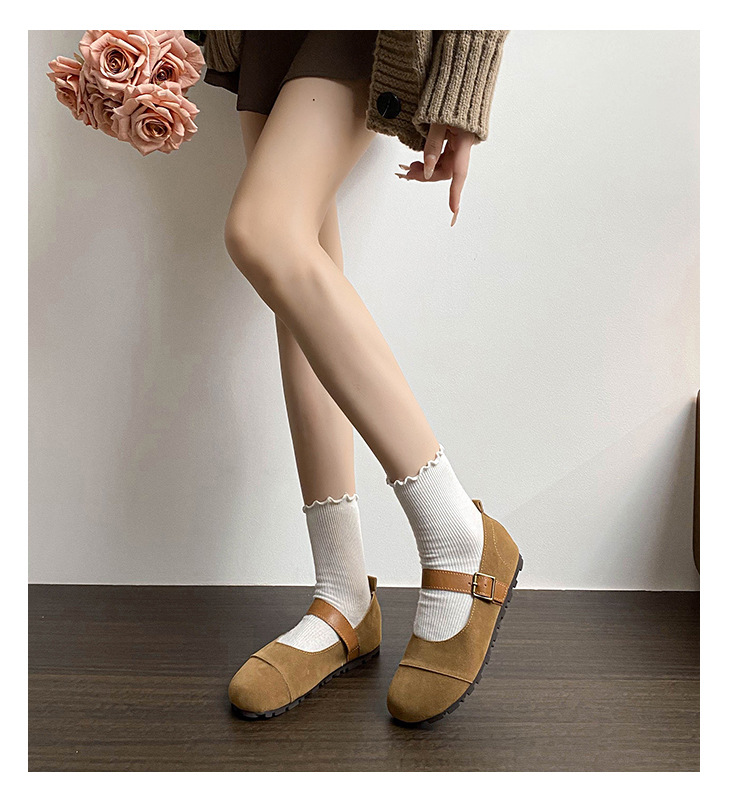 한 캐릭터 버클 메리 제인 신발 2024 새로운 봄 빈티지 작은 가죽 신발 부드러운 바닥 평면 여성의 싱글 레이어 신발 미끄럼 방지스토어 가기