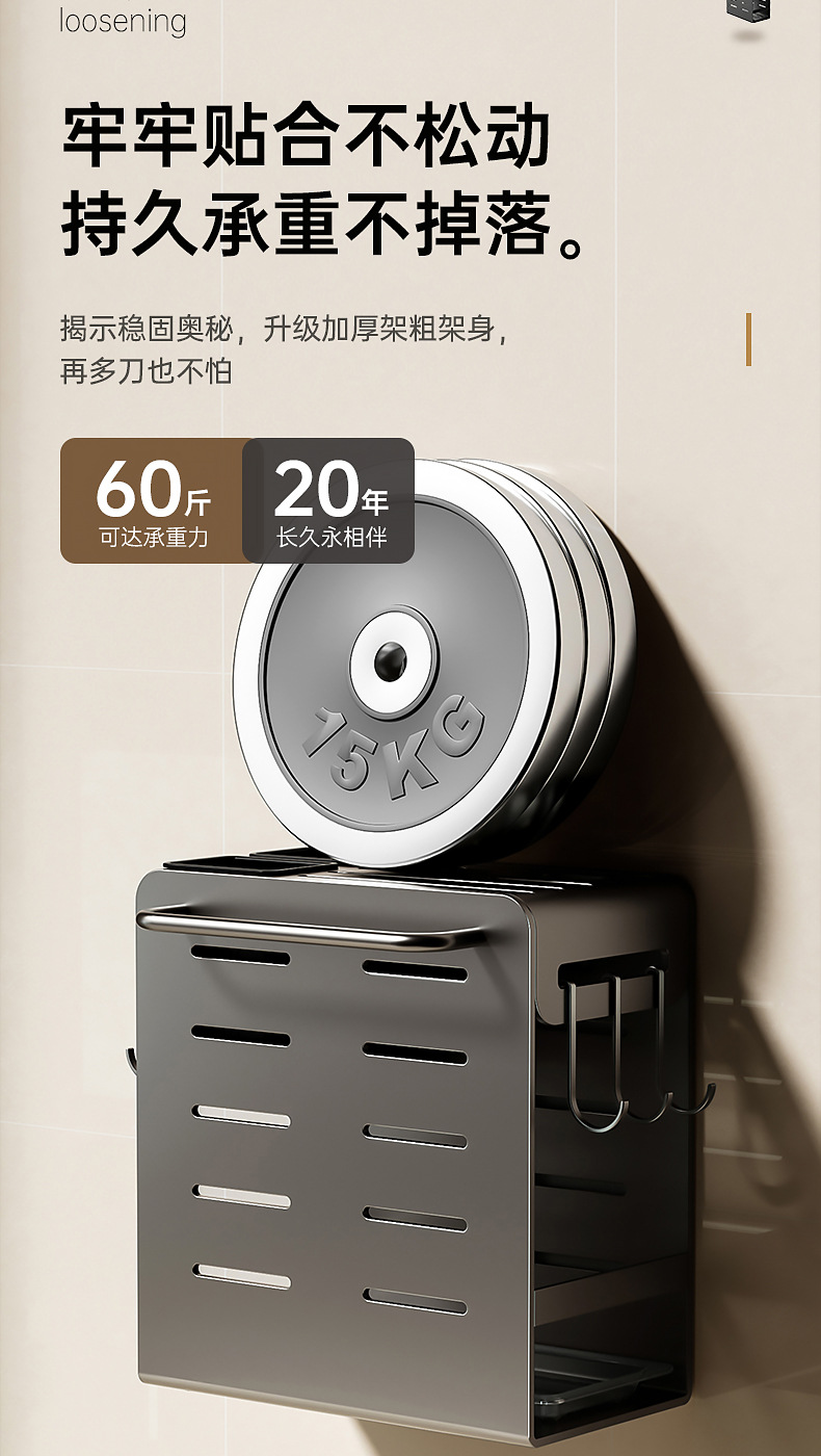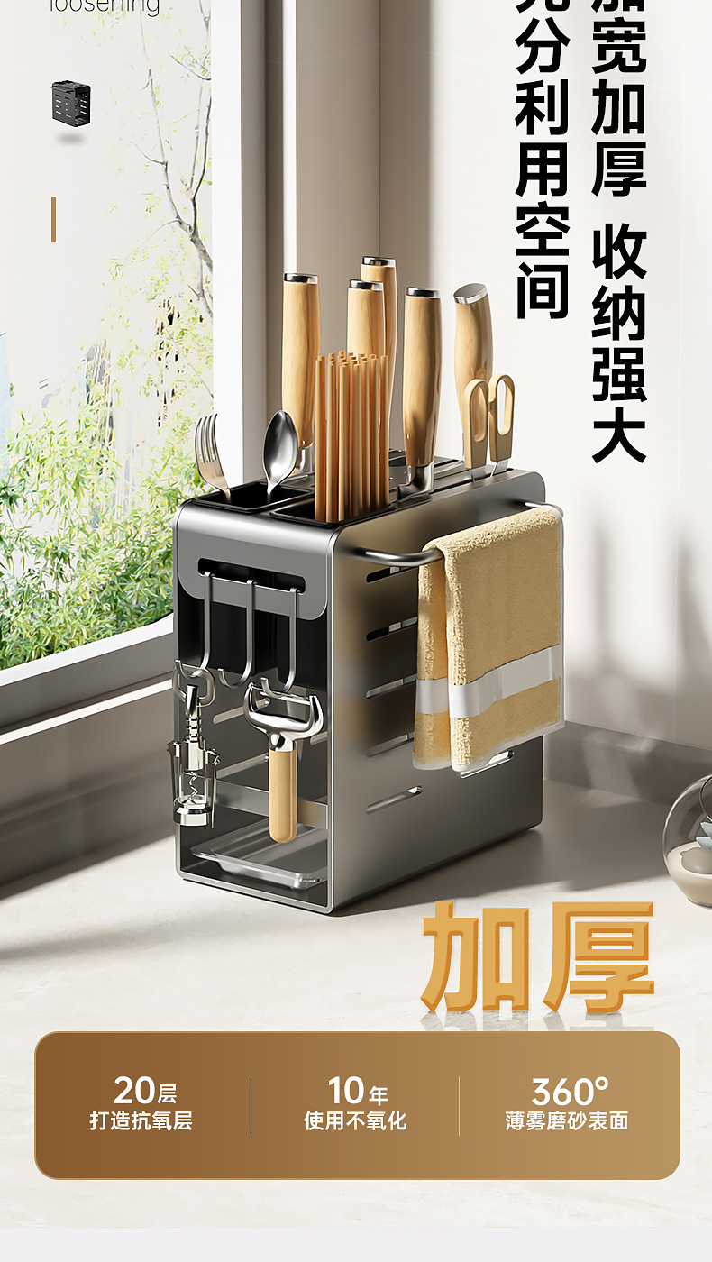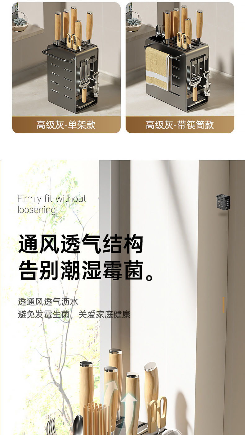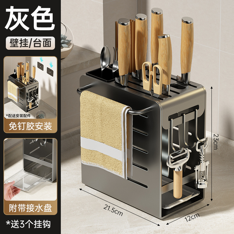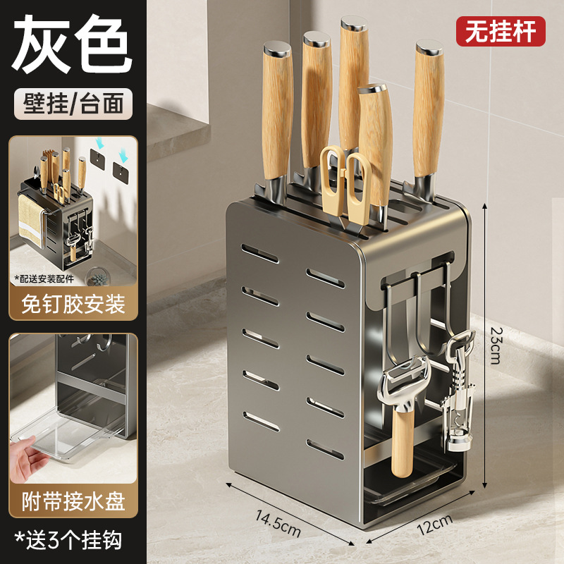 주방 카운터 탑 나이프 홀더 나이프 스토리지 랙 통합 다기능 젓가락 홀더 펀치가없는 벽걸이 주방 나이프 드레인 랙스토어 가기