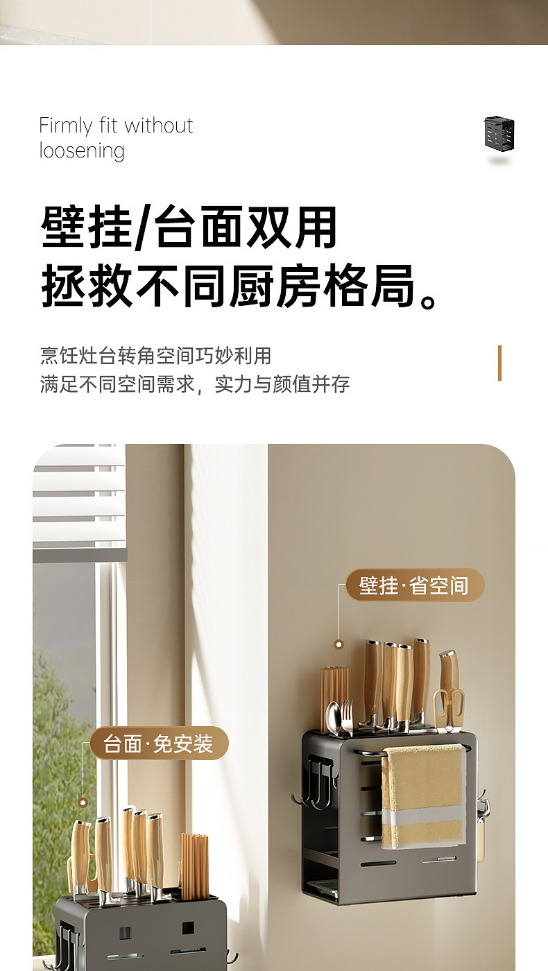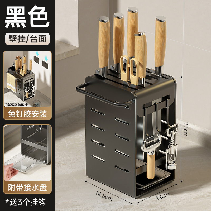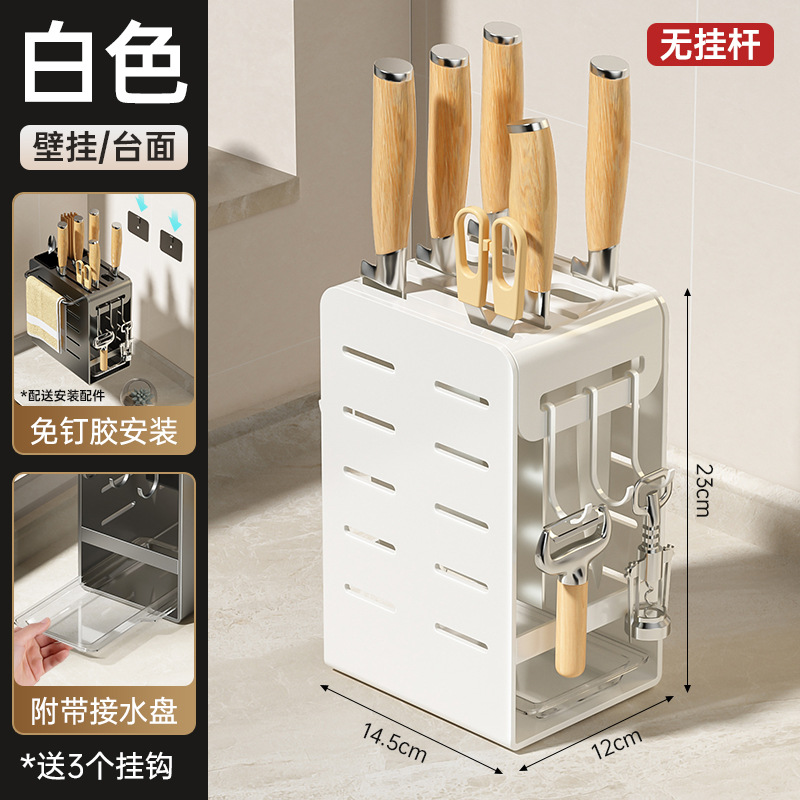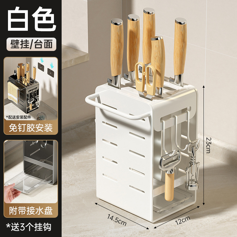 주방 카운터 탑 나이프 홀더 나이프 스토리지 랙 통합 다기능 젓가락 홀더 펀치가없는 벽걸이 주방 나이프 드레인 랙