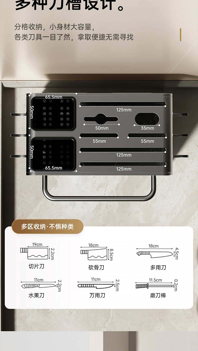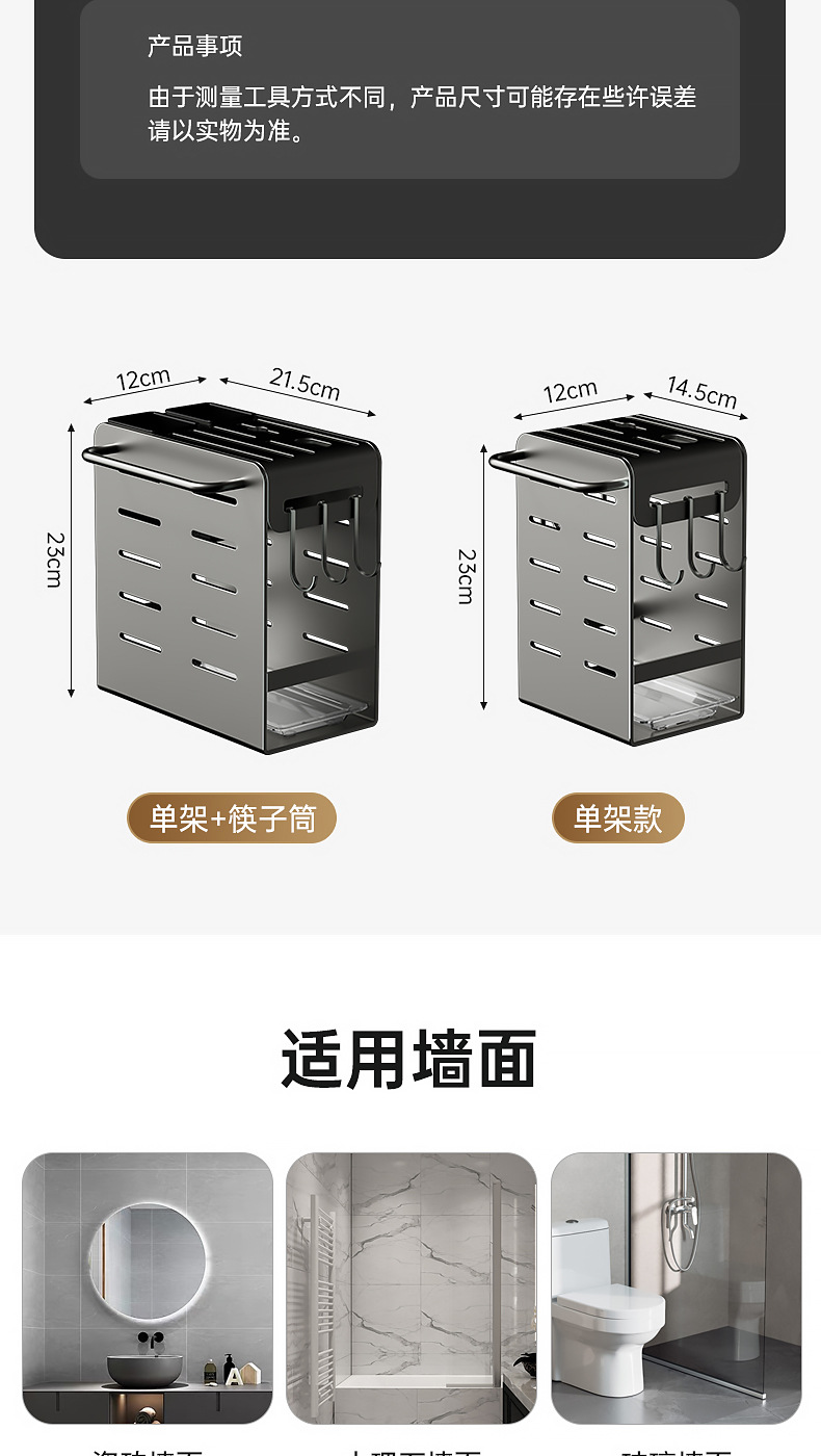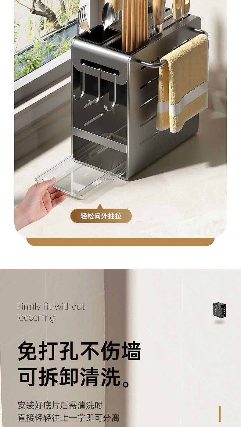 주방 카운터 탑 나이프 홀더 나이프 스토리지 랙 통합 다기능 젓가락 홀더 펀치가없는 벽걸이 주방 나이프 드레인 랙