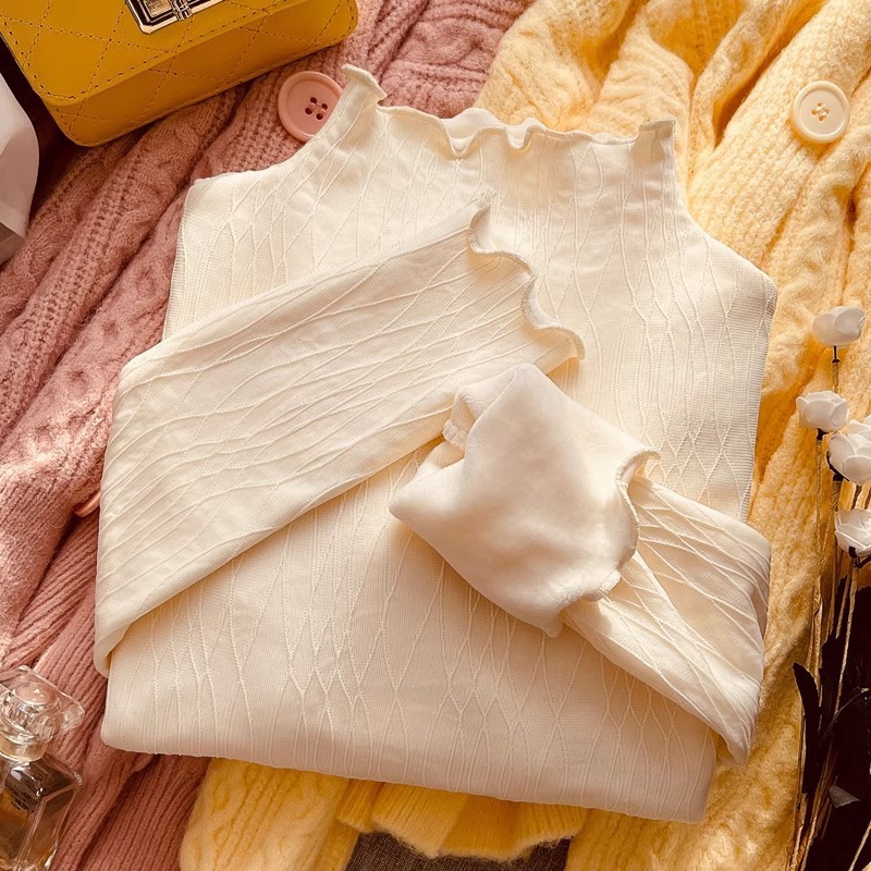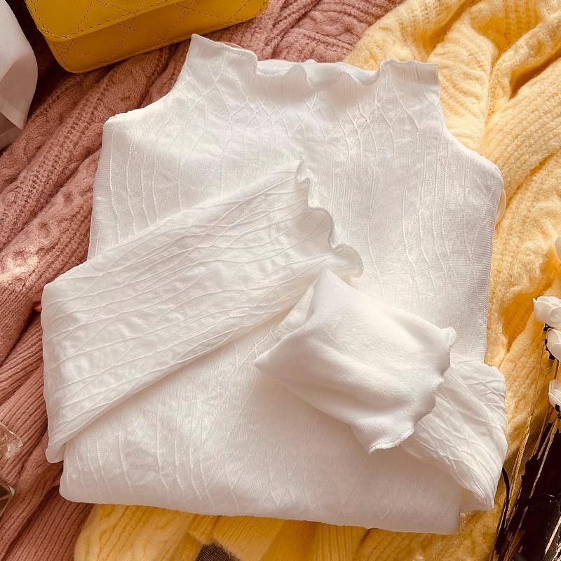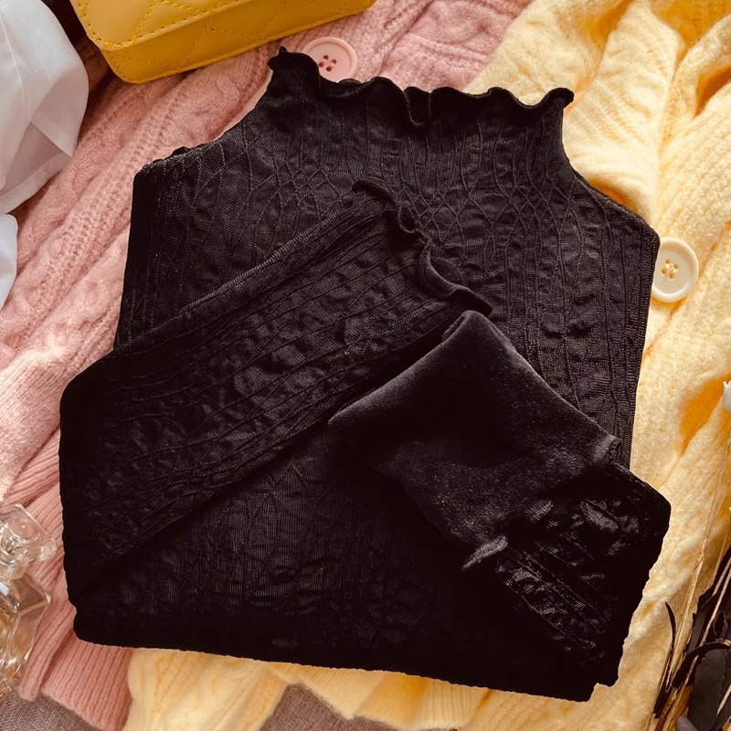 기모 두꺼운 반 높이 칼라 레이스베이스 셔츠 여성용 가을과 겨울 서양식 하이 엔드 세련된 아름다운 작은 셔츠 탑스토어 가기