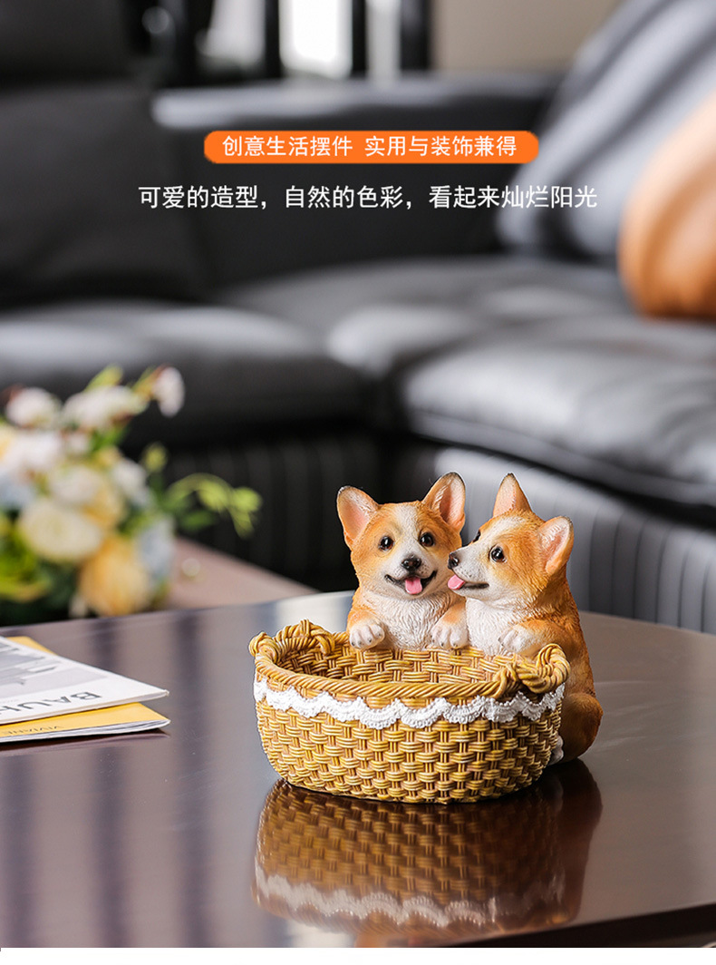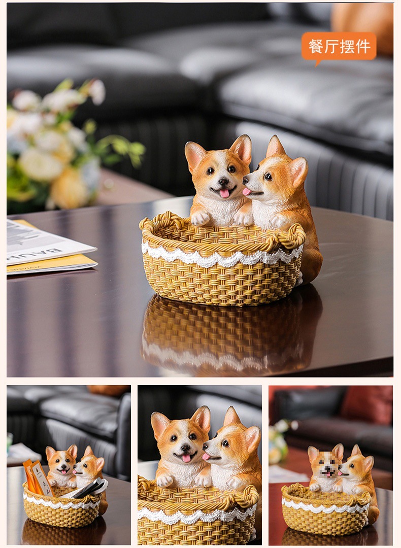 창조적 인 개 입구 입구 키 보관 장식품 코기 도어 신발 캐비닛 거실 홈 장식 공예