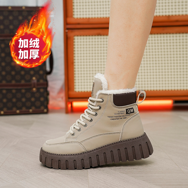 기모 따뜻한 대형 코튼 슈즈 2024 겨울 새로운 올 매치 학생 냉장 스노우 부츠 미끄럼 방지 두꺼운 밑창 마틴 부츠스토어 가기