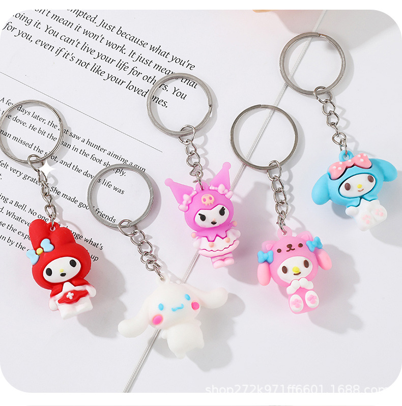만화 스몰 사이즈 산리오 키 체인 인형 크리스마스 홀 음악 블라인드 박스 액세서리 학교 가방 펜던트 선물 도매스토어 가기