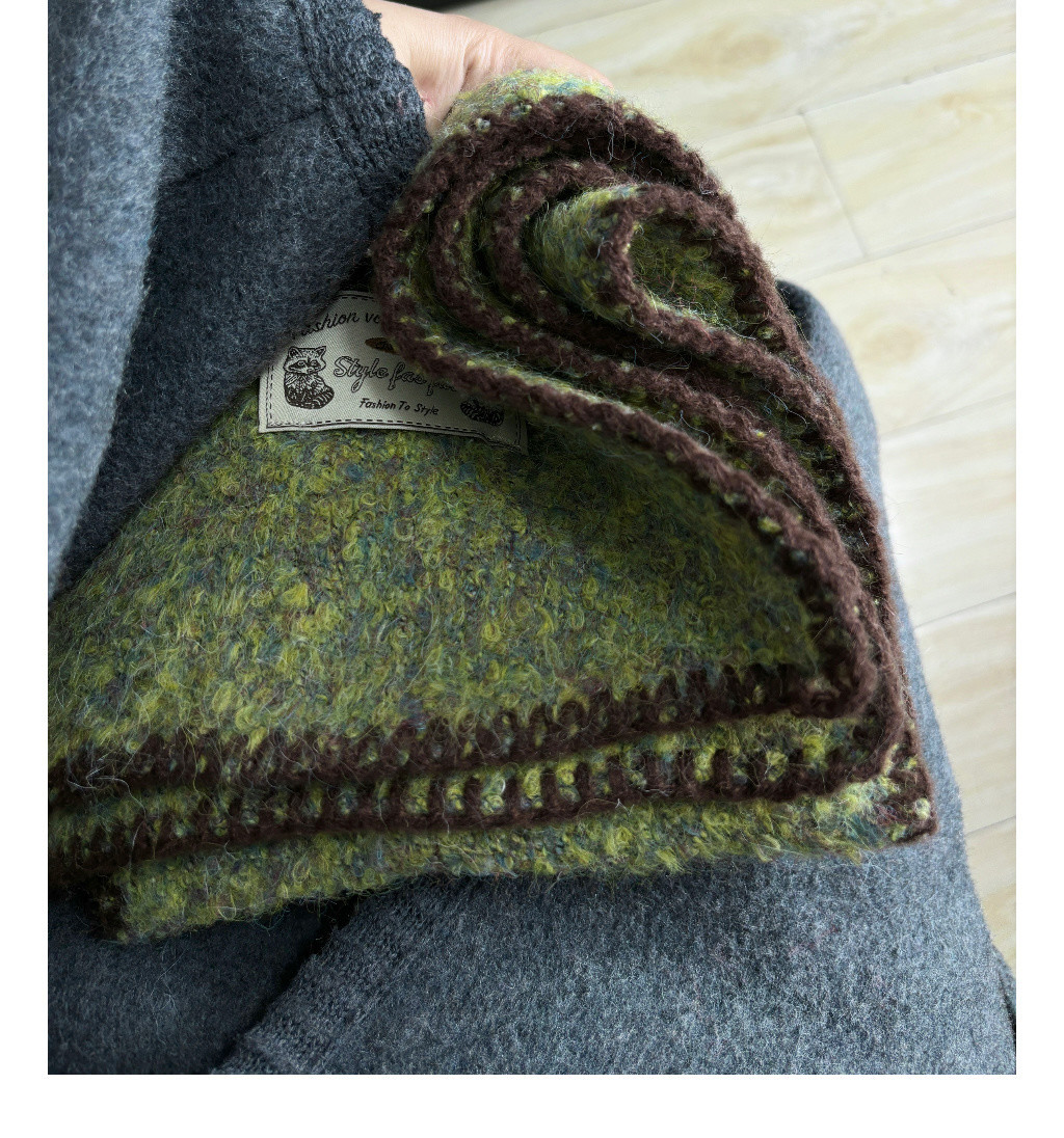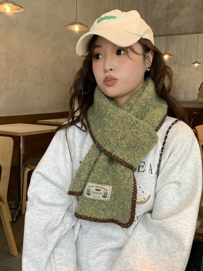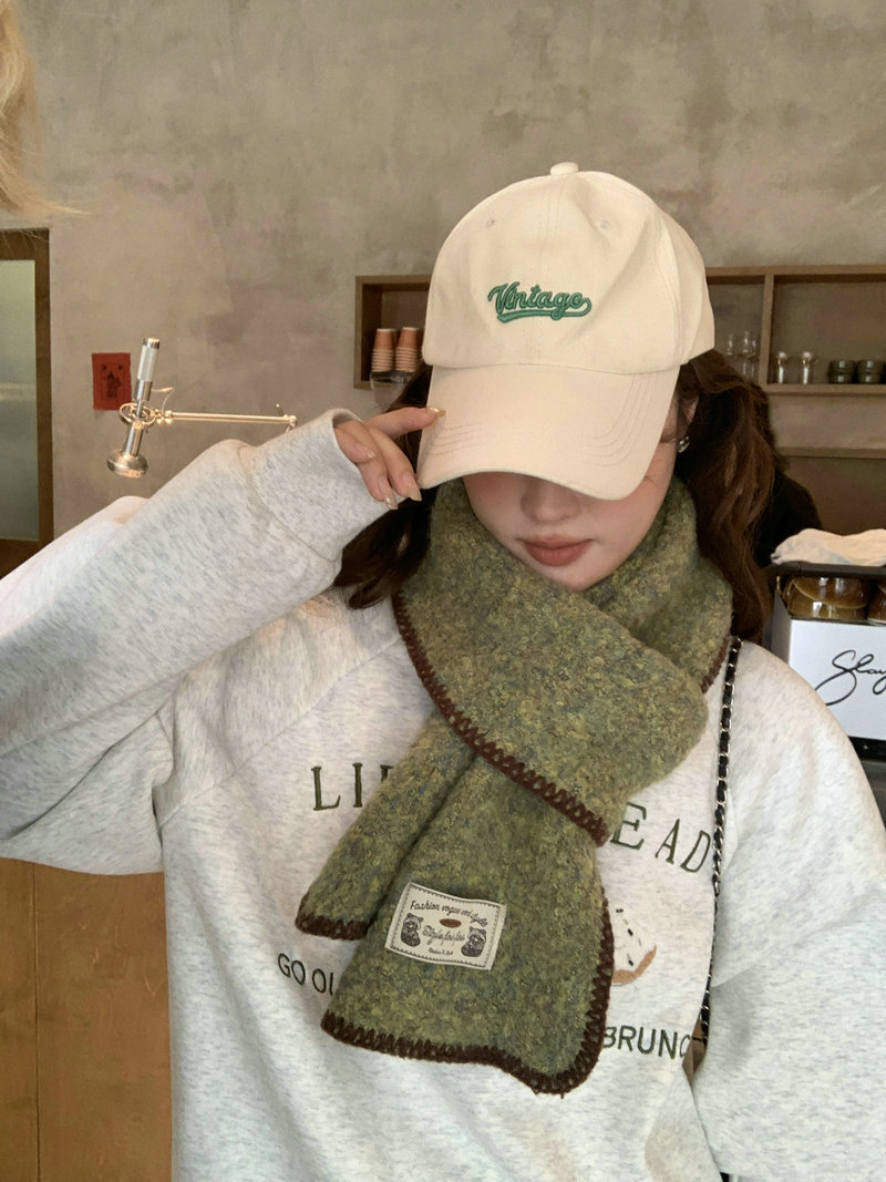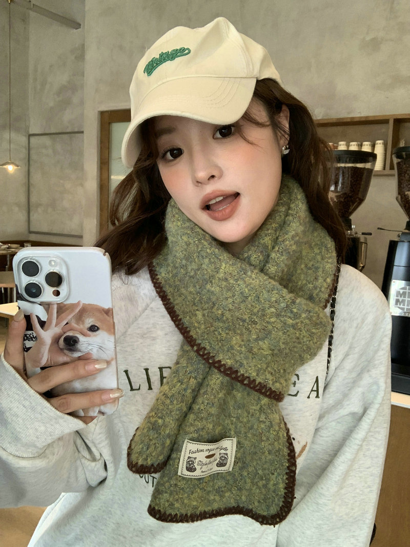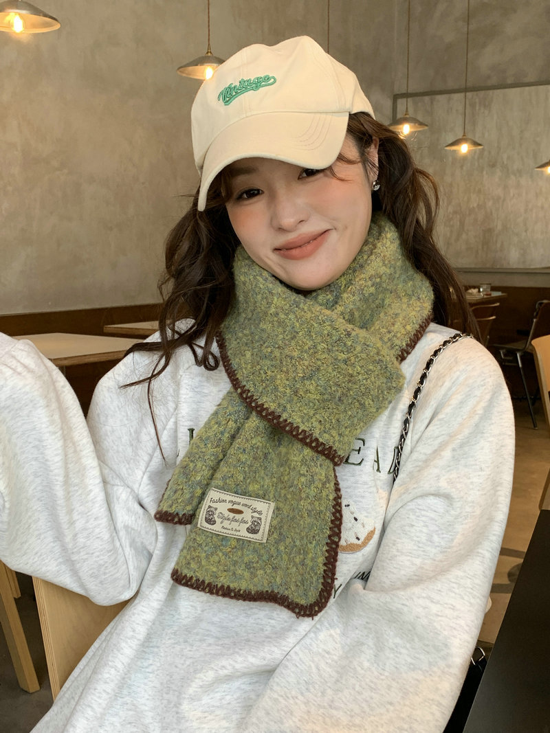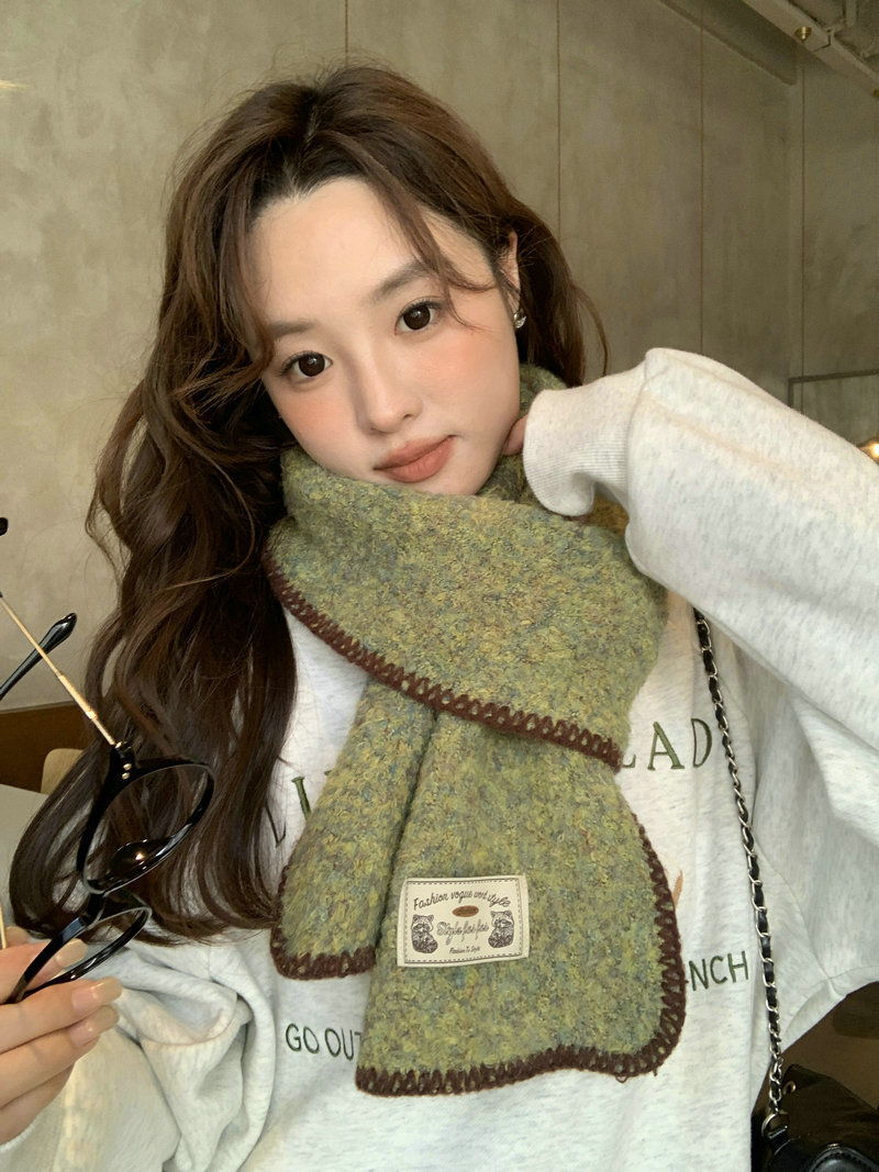 빈티지 엣지 스카프 여성의 가을과 겨울 2024 새로운 고급 한국 스타일 따뜻한 두꺼운 스카프 다크 그린 양모 봉제스토어 가기