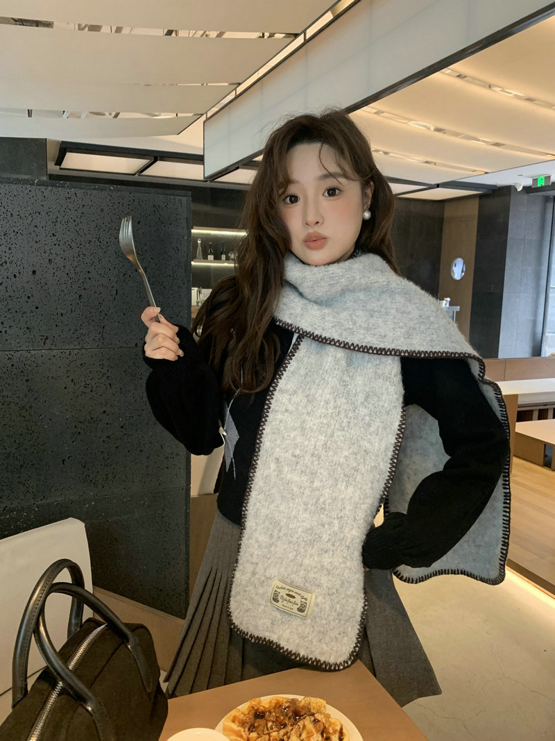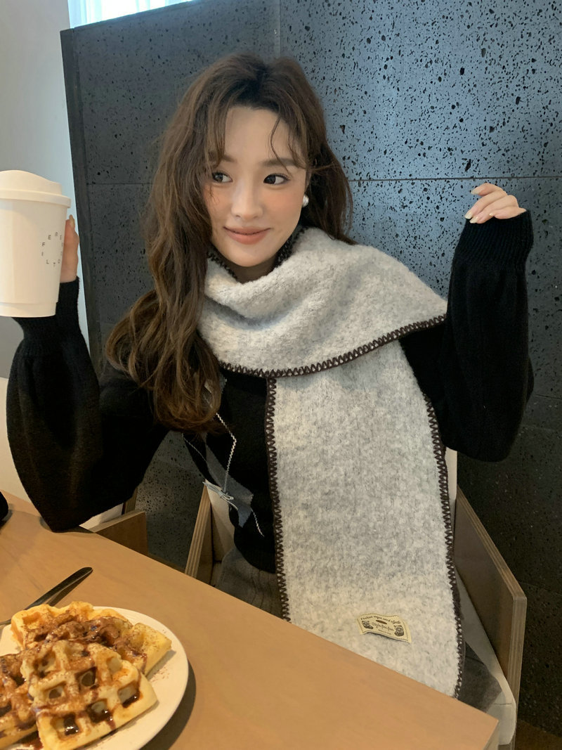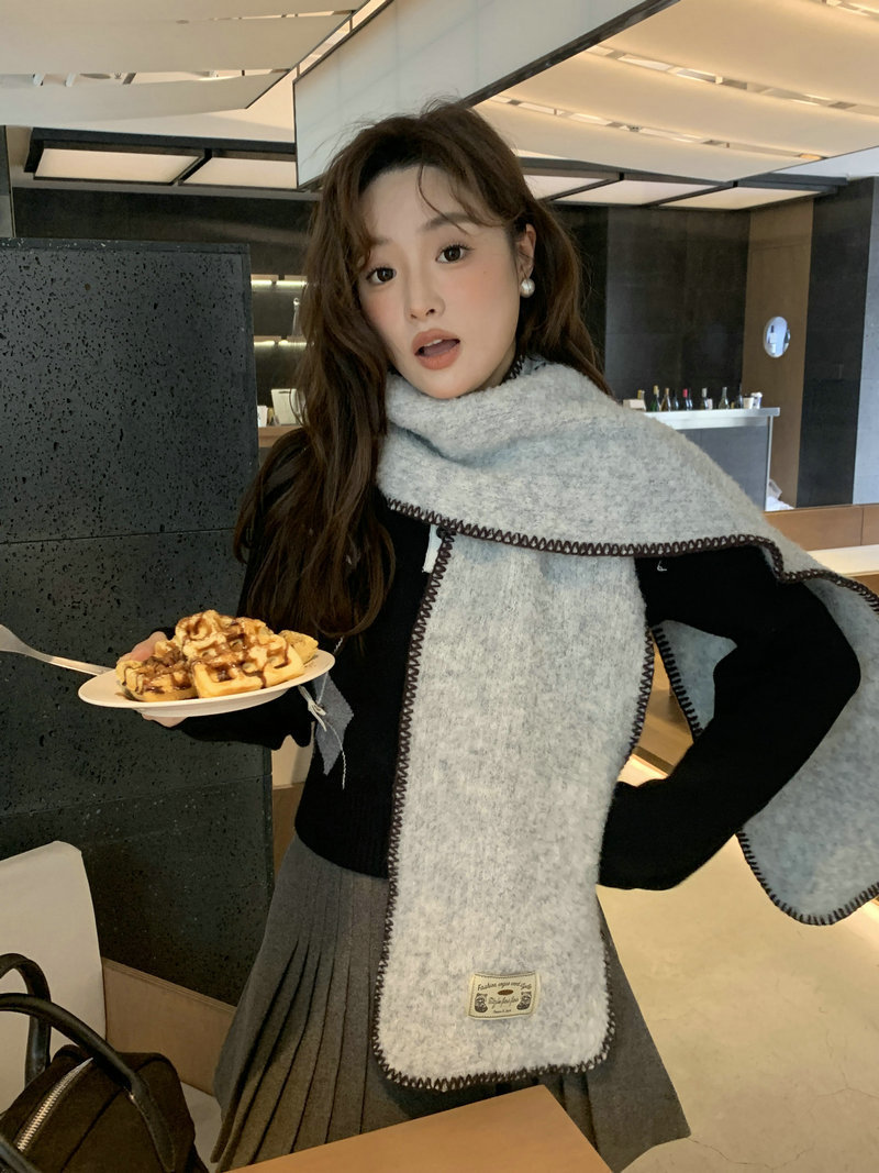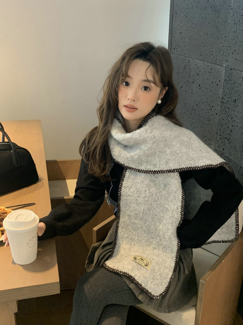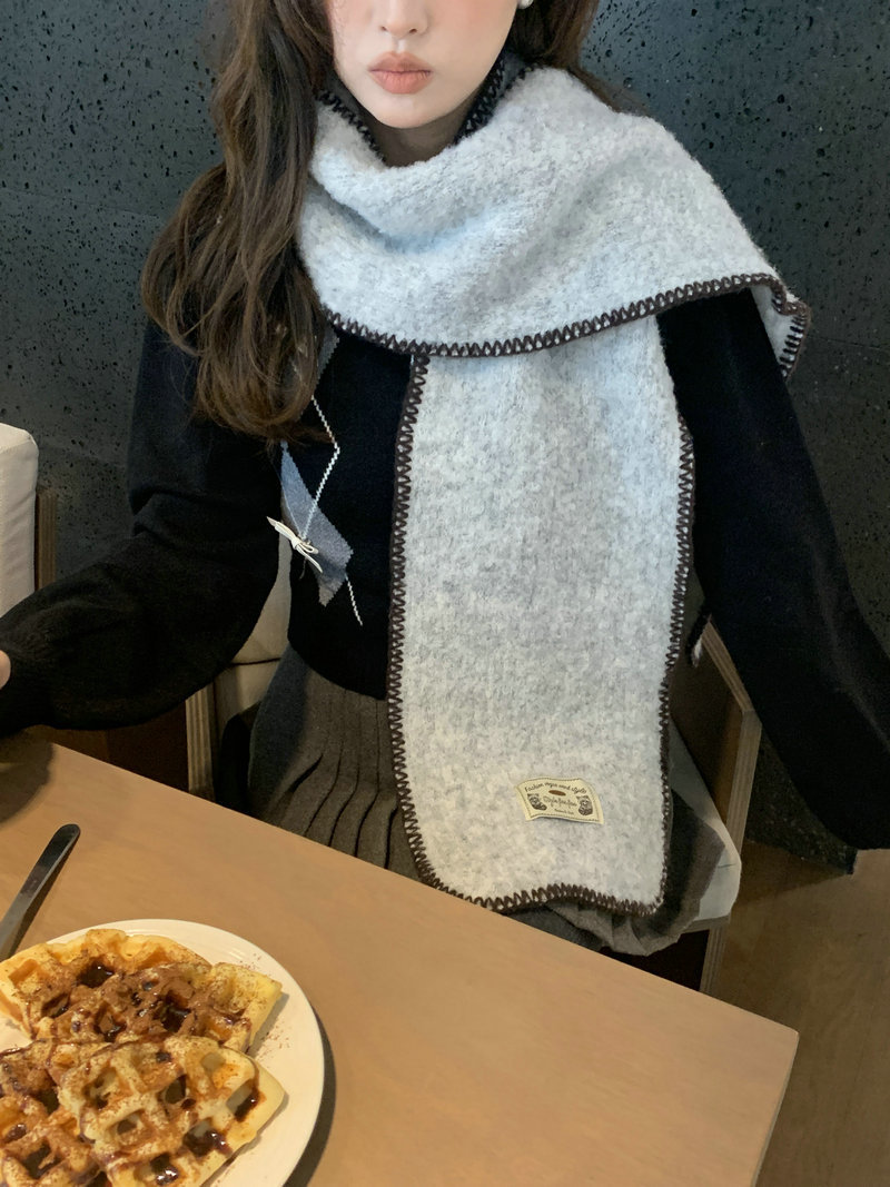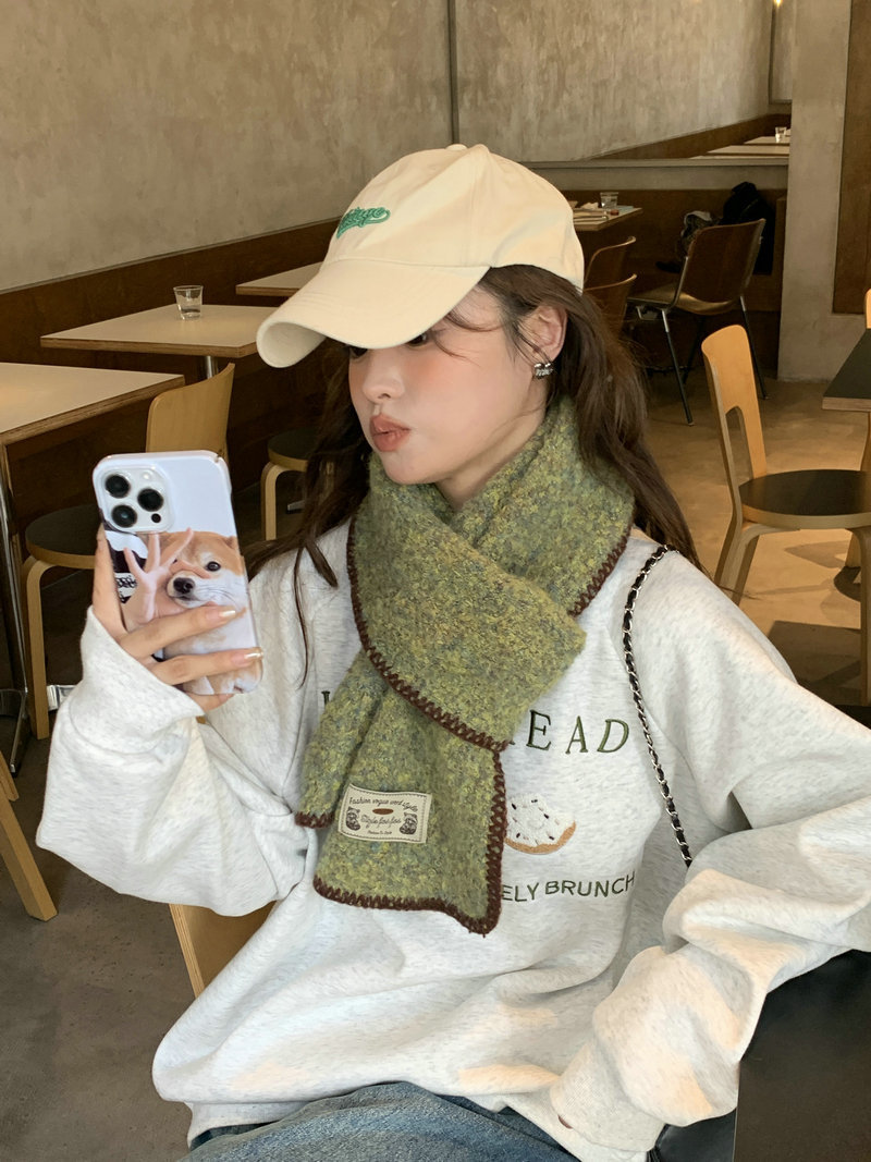 빈티지 엣지 스카프 여성의 가을과 겨울 2024 새로운 고급 한국 스타일 따뜻한 두꺼운 스카프 다크 그린 양모 봉제스토어 가기